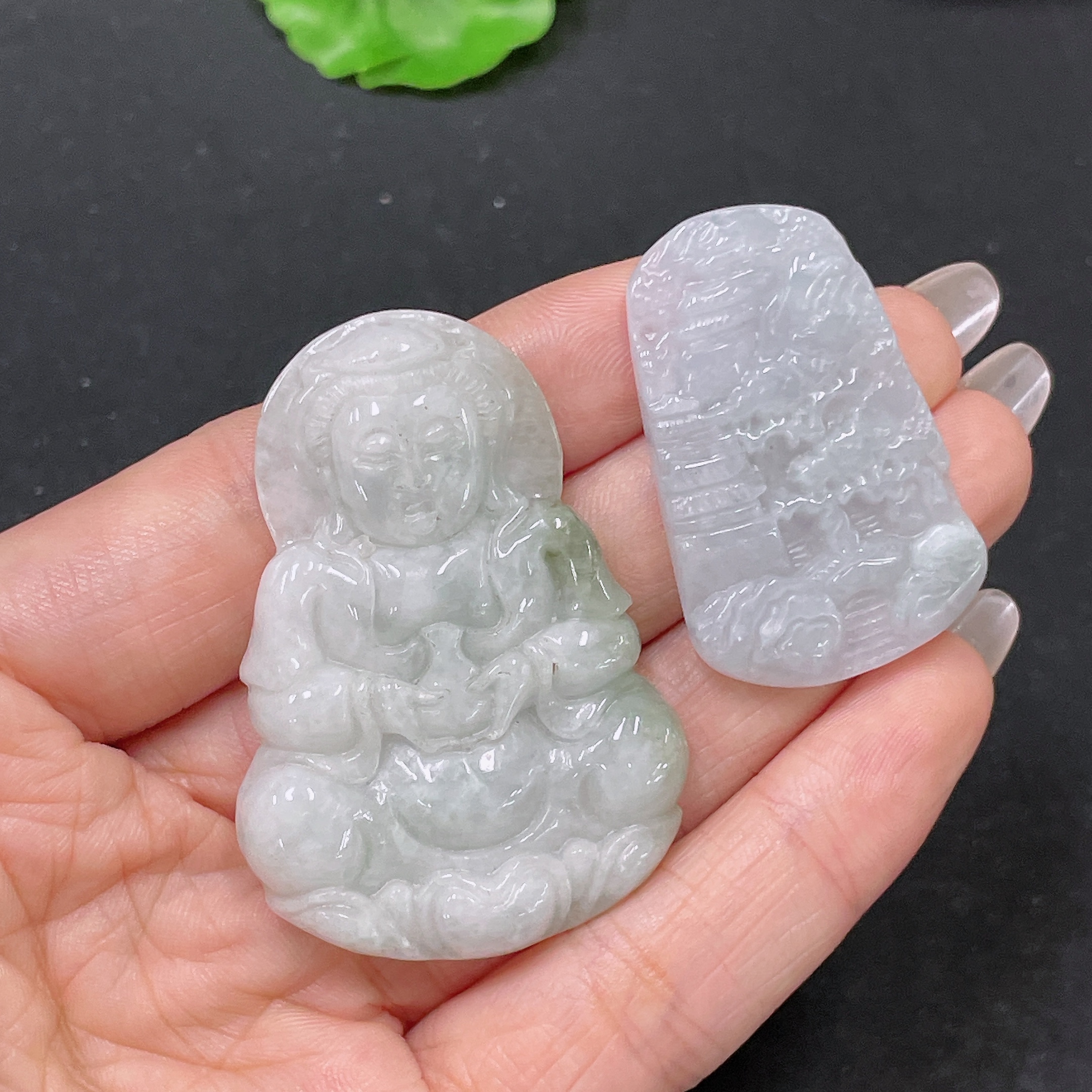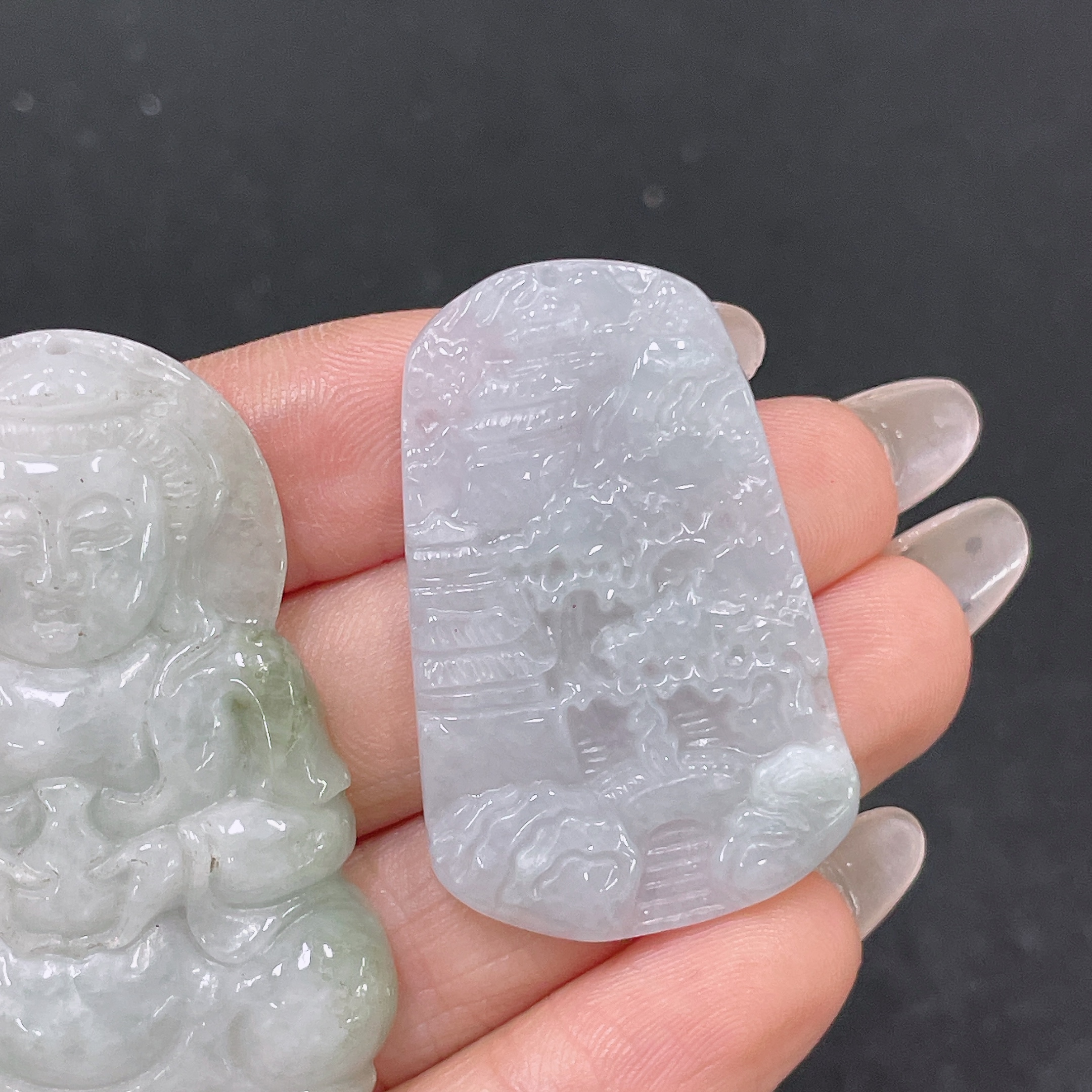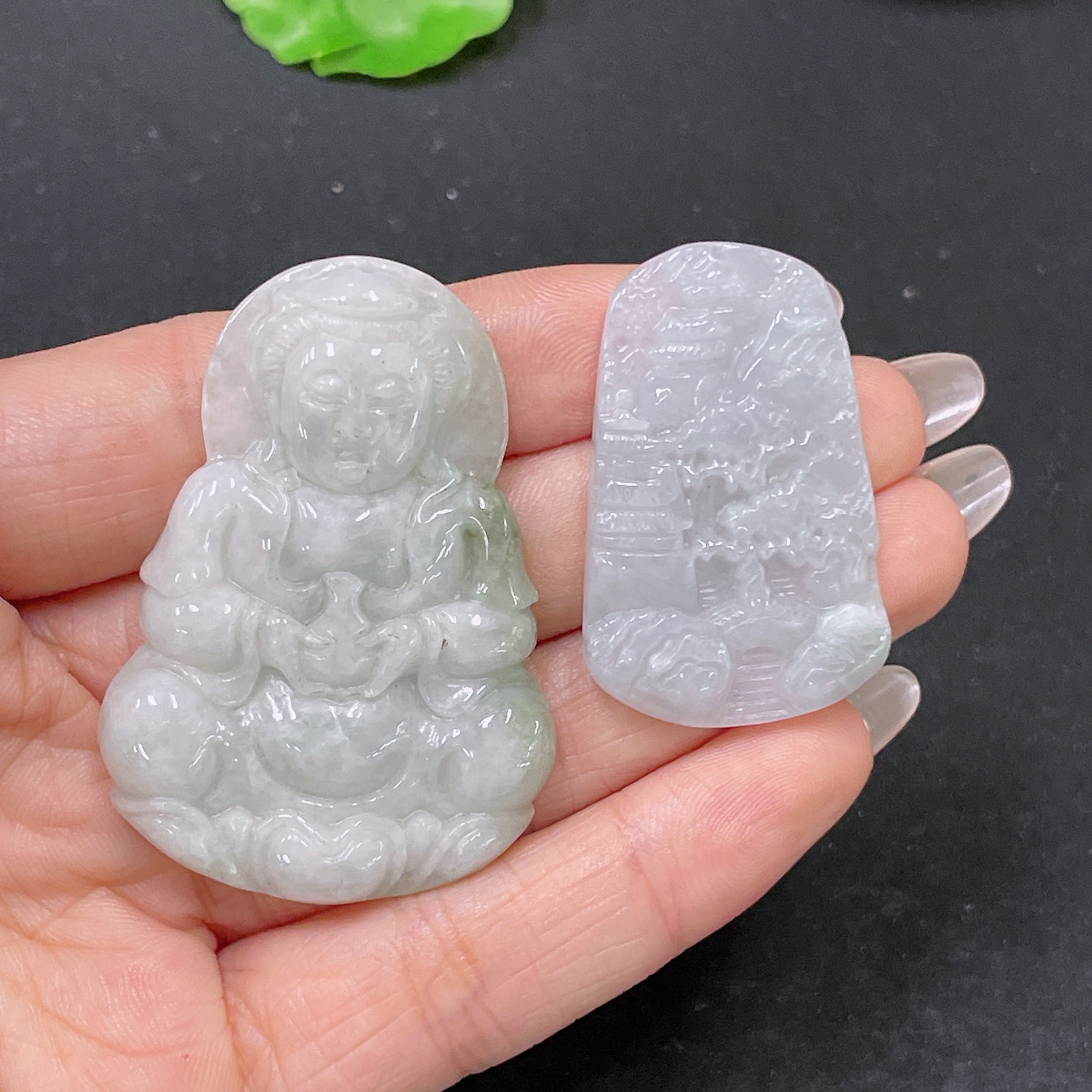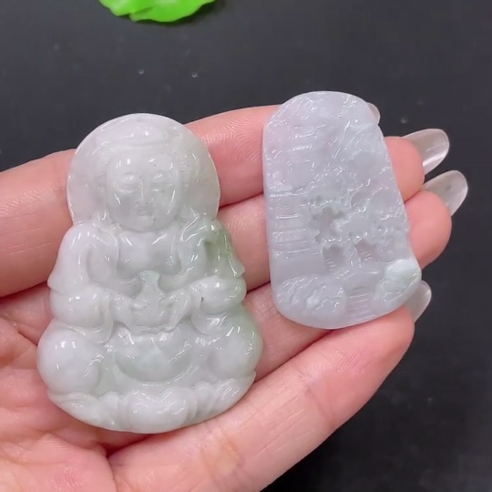 Jadeite Pendant Guanyin + Landscape Sell as a Lot