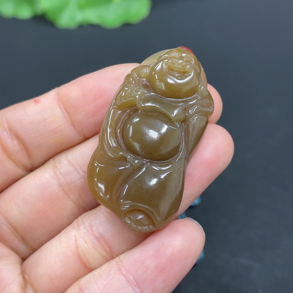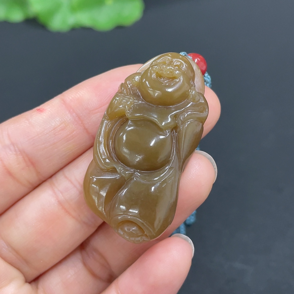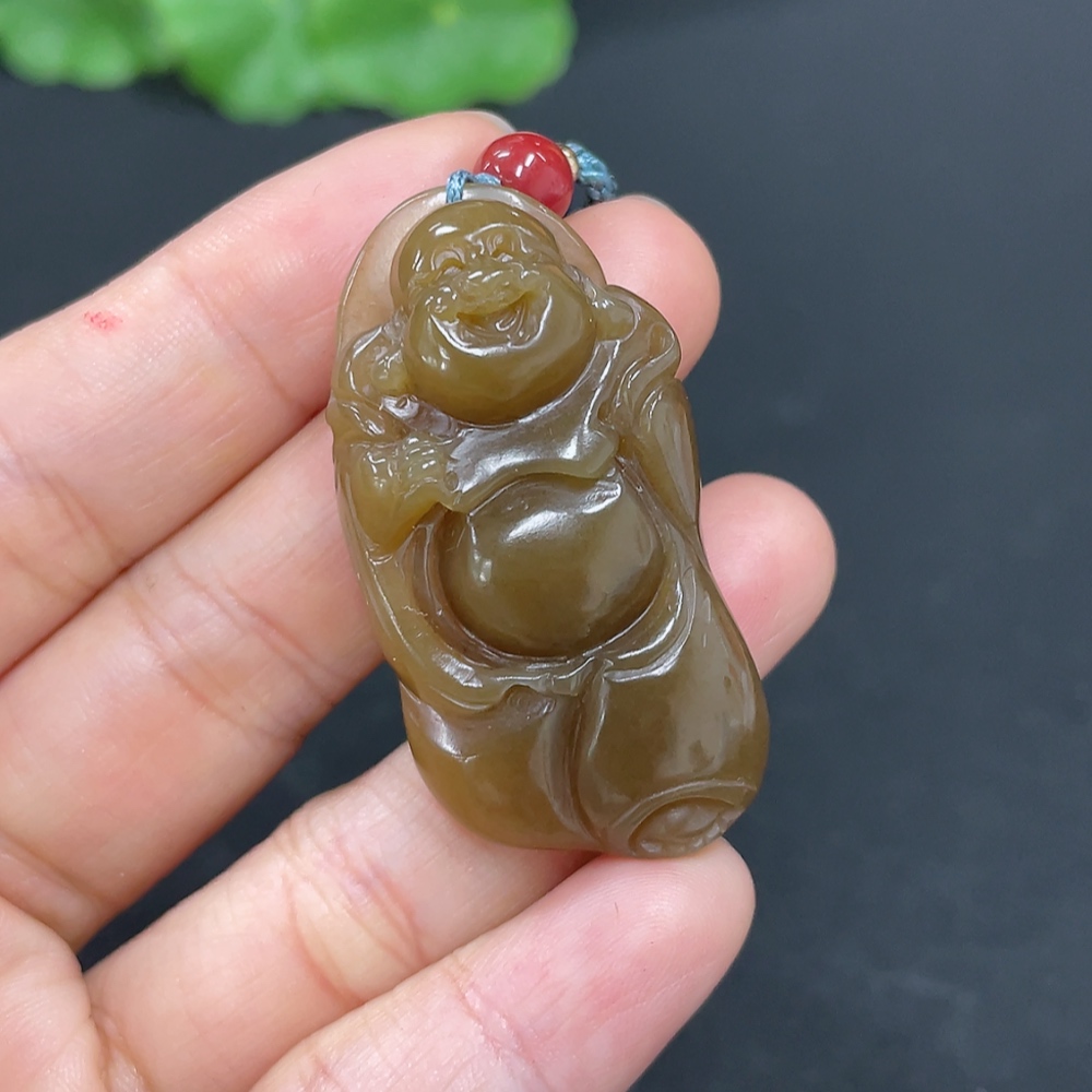 Hetian Jade Pendant - Buddha, Total Weight (including rope): 15.4g, Beads Not Hetian Jade