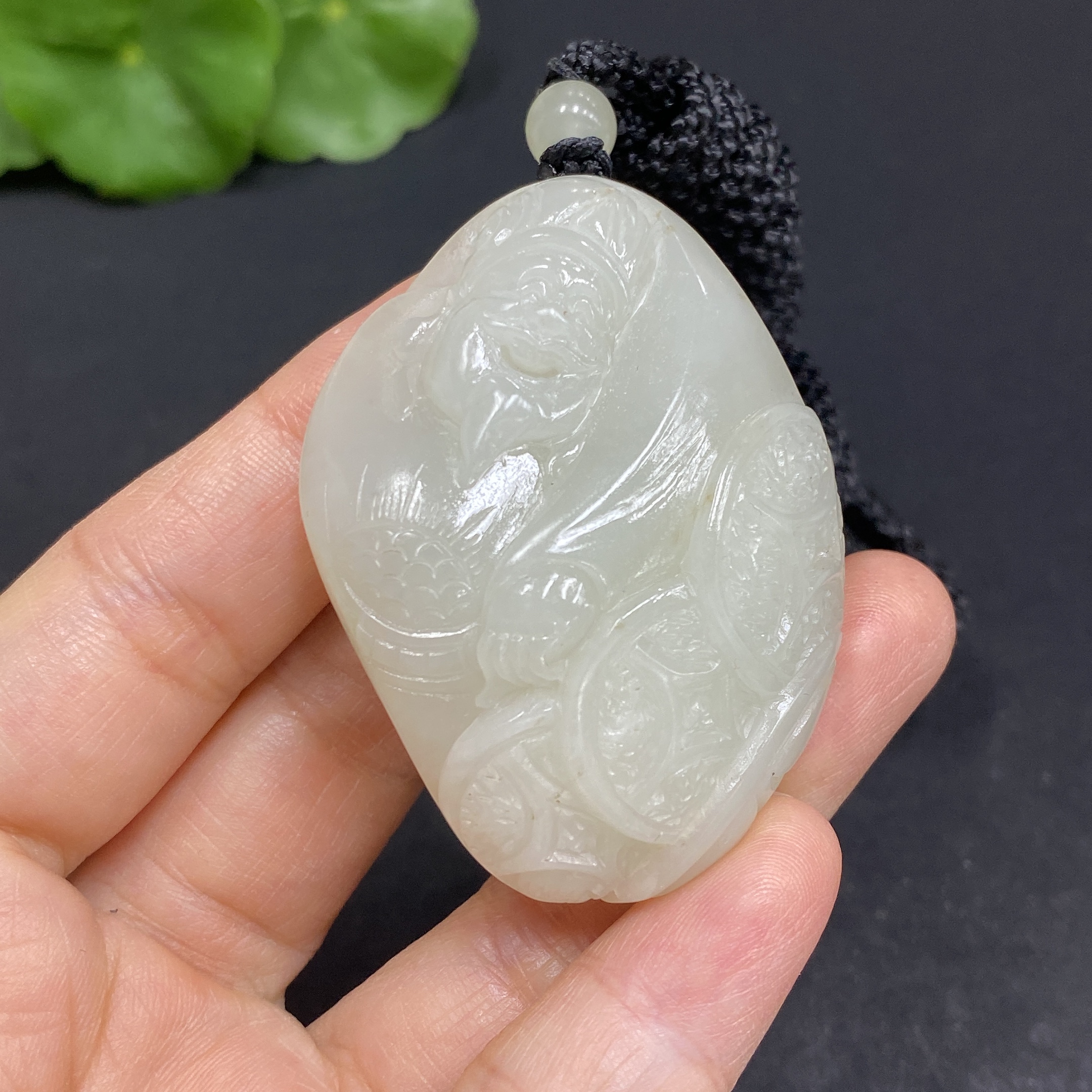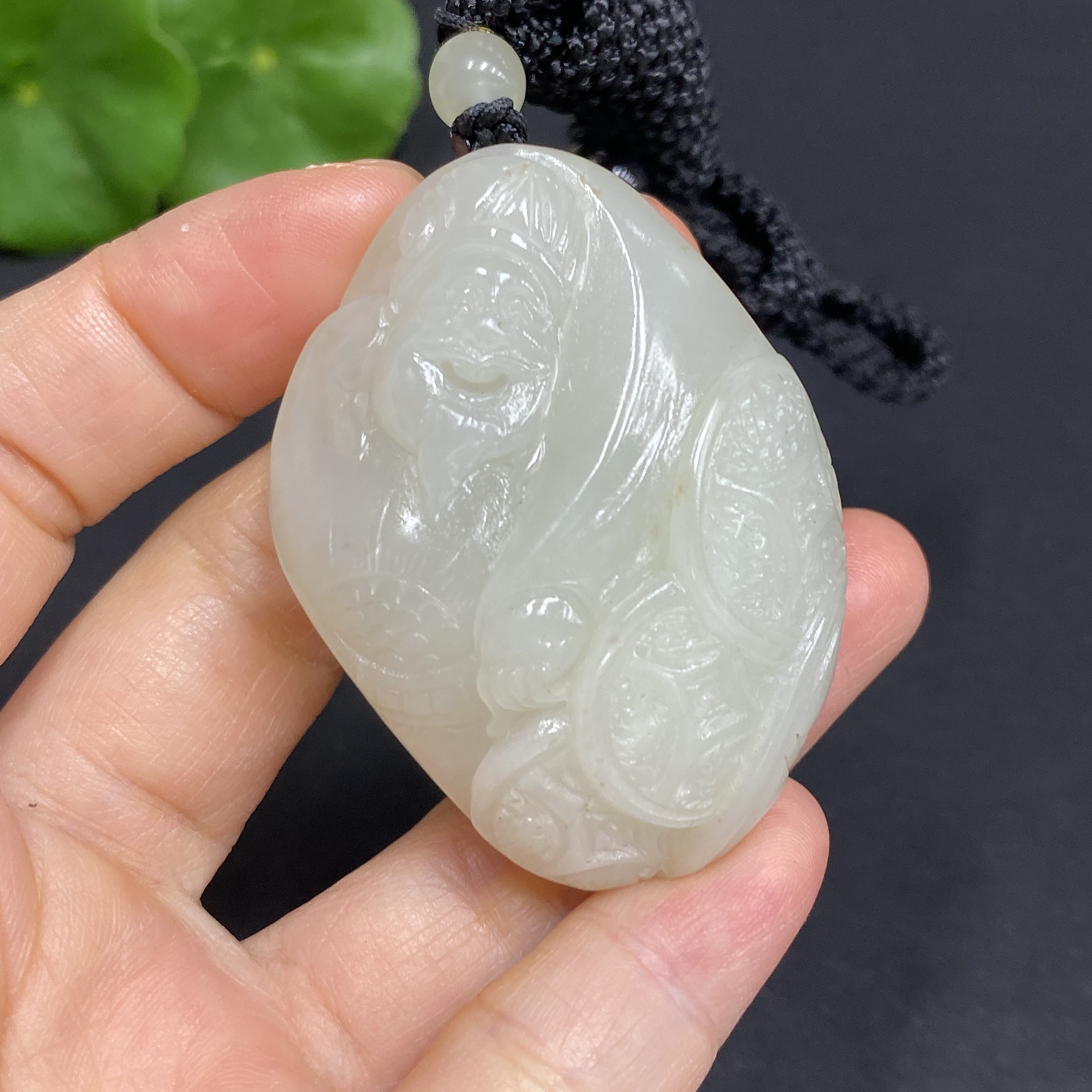 Hetian Jade Pendant God of Wealth Total Weight (with rope): 48.9g