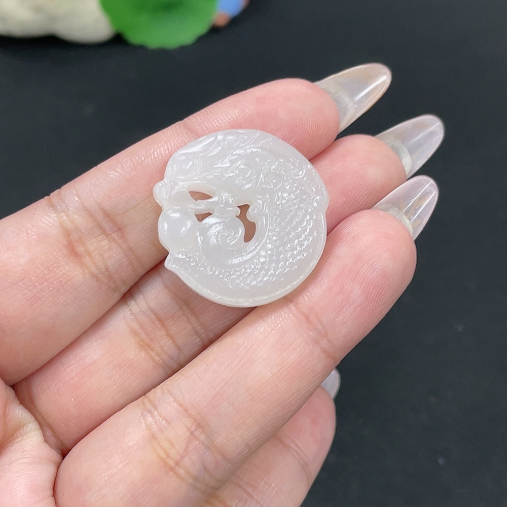 Hetian Jade Pendant Dragon Fish Total Weight About 6.4g