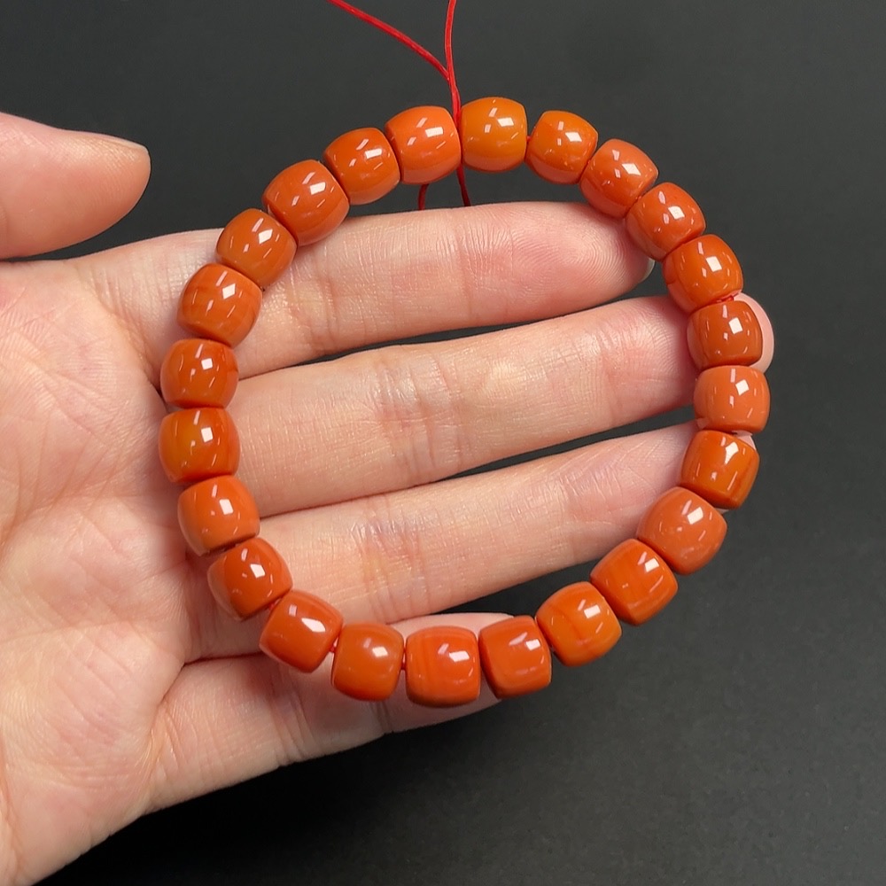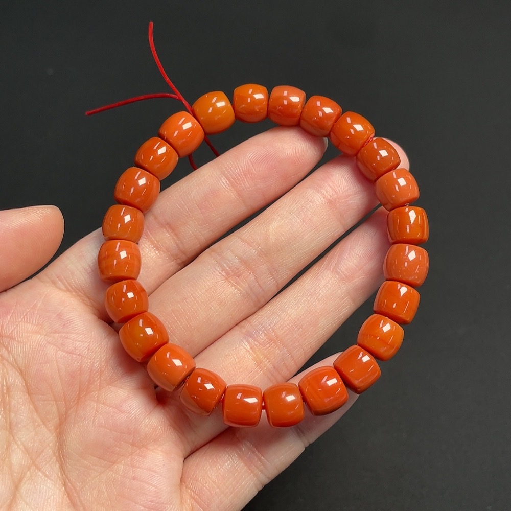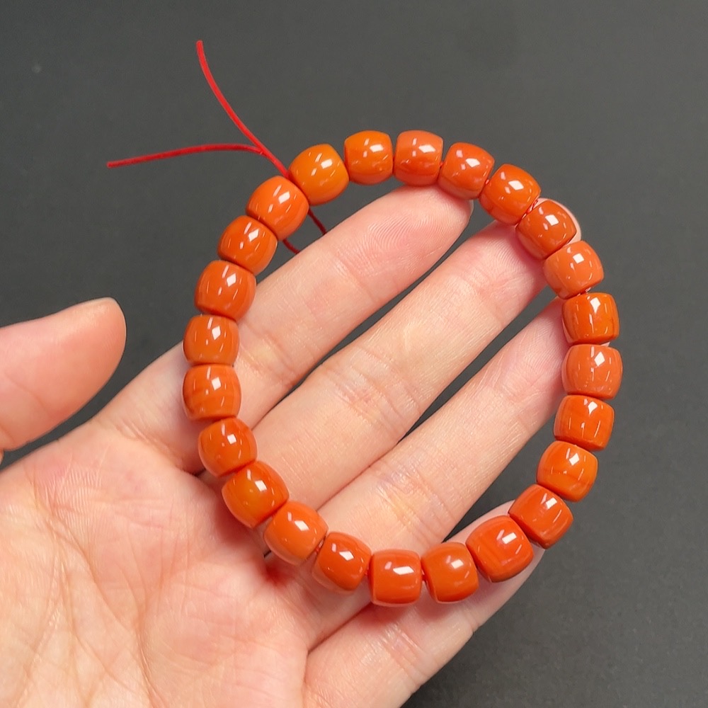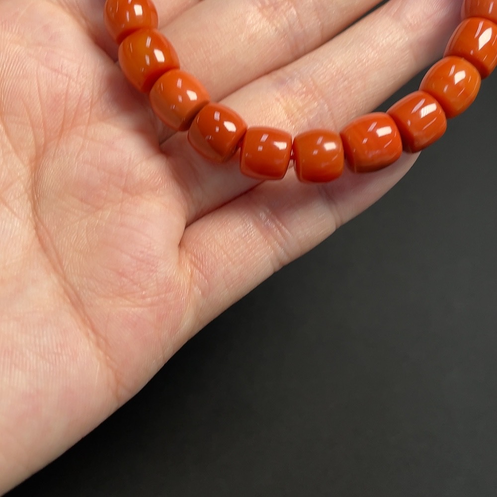 Red Agate Bracelet, approx. 8.9mm beads, total weight about 23.92g, organic inclusions visible