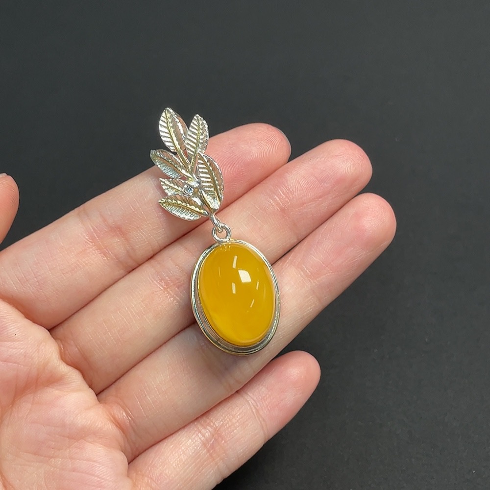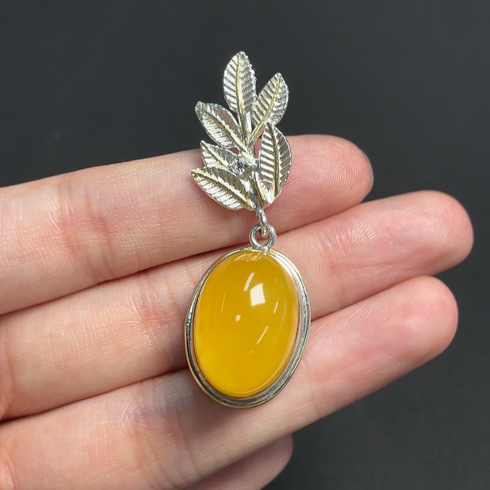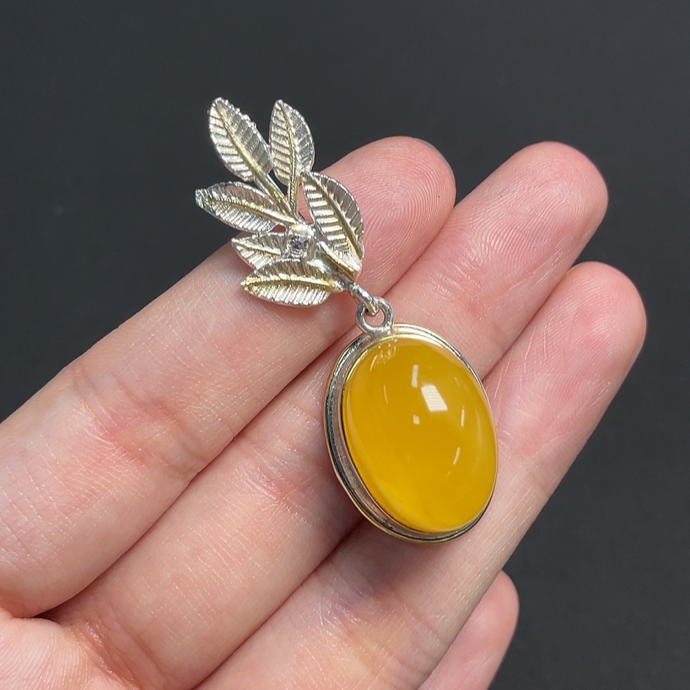 Amber Beeswax Inlaid Pendant Non-Gold Inlaid Total Weight Approx. 10.46g