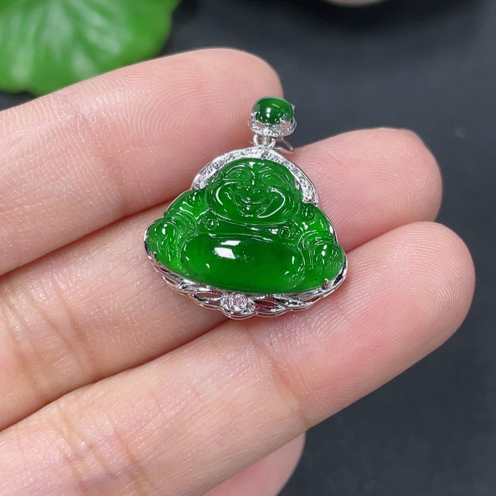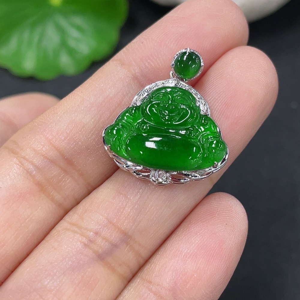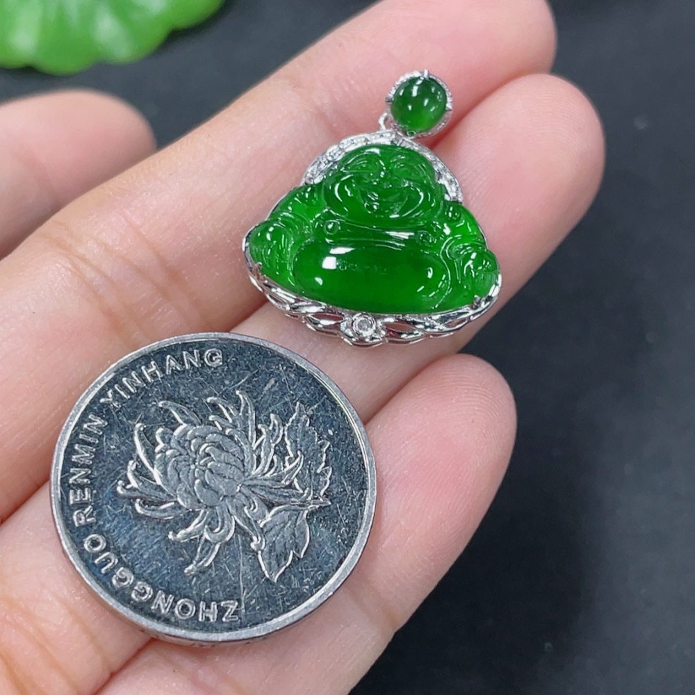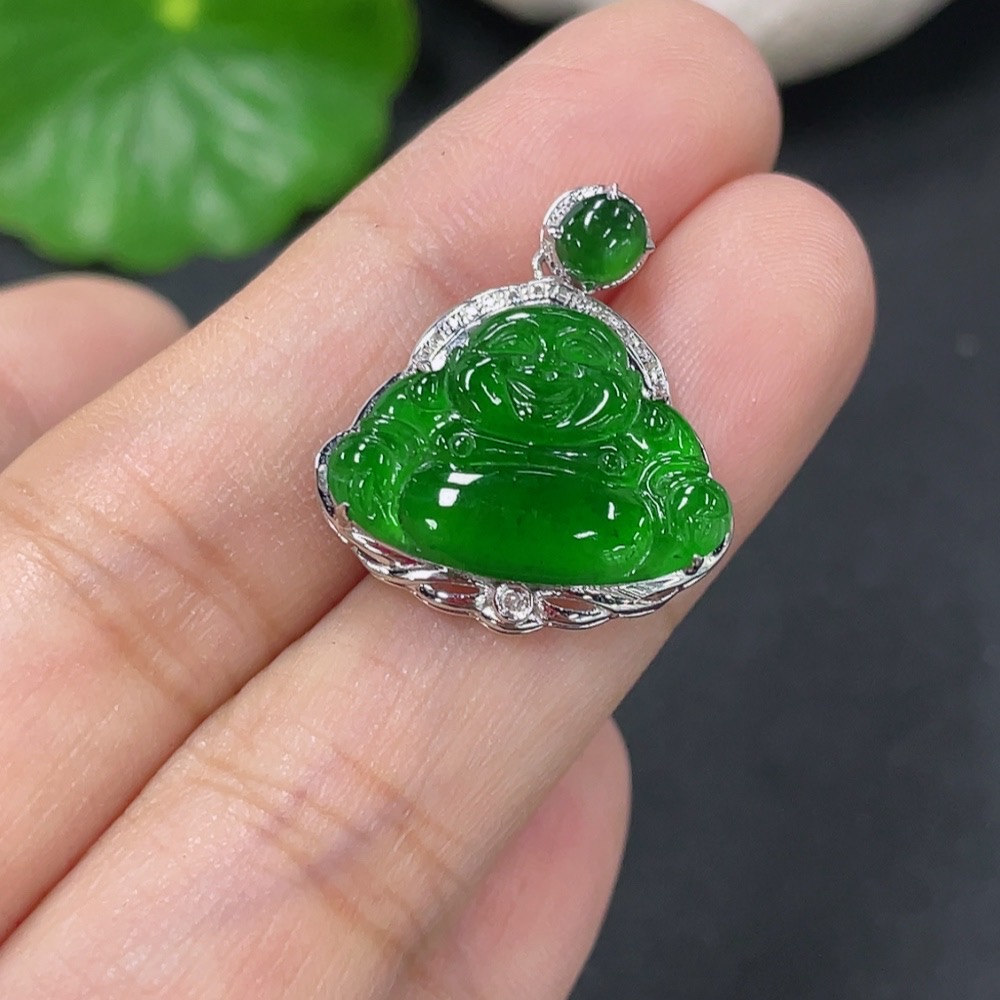 Jadeite Inlaid Buddha Pendant 18k Non-Diamond Total Weight Approx. 2.09g