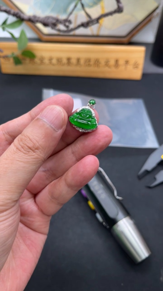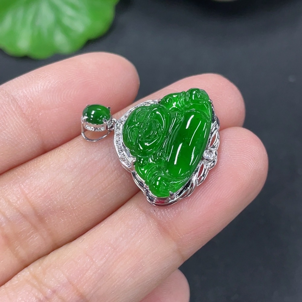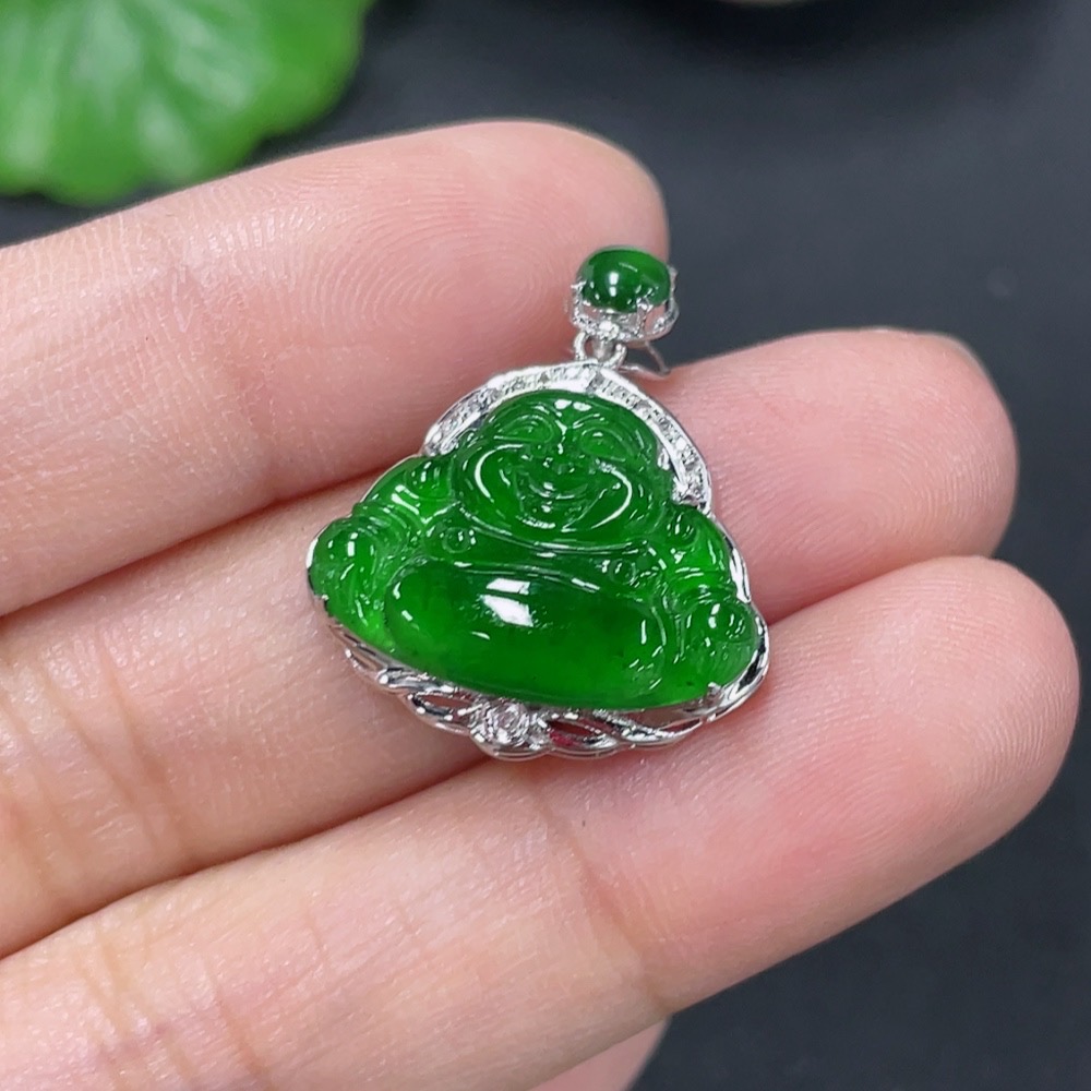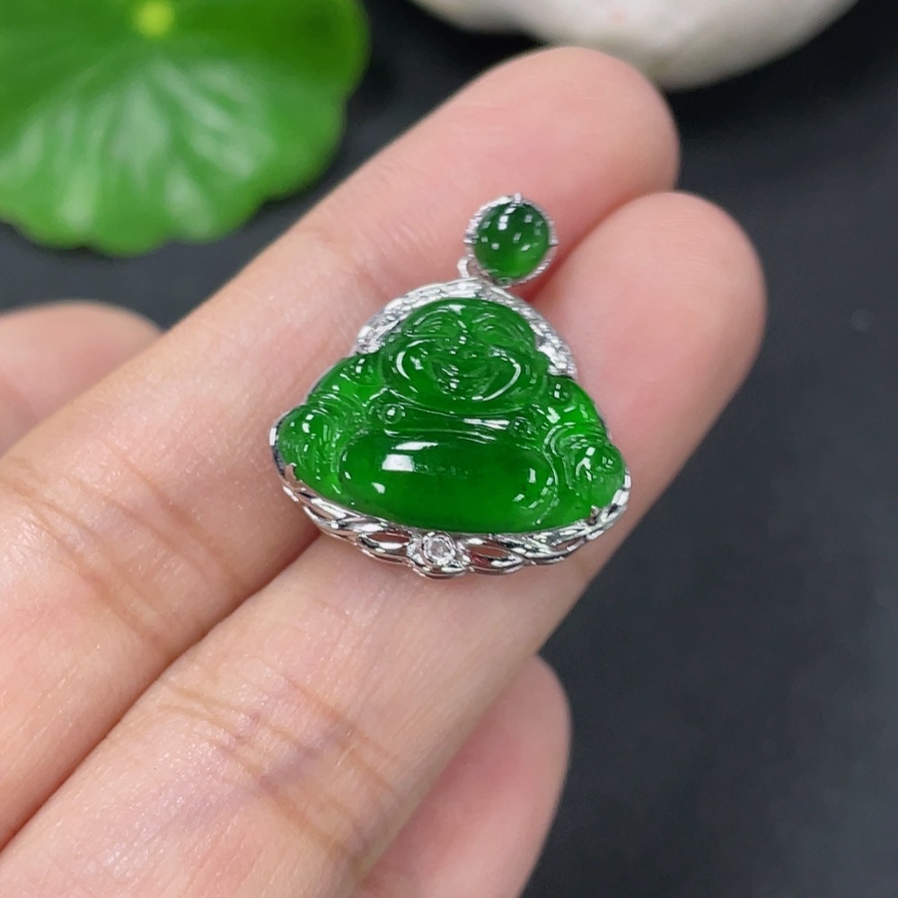 Jadeite Inlaid Buddha Pendant 18k Non-Diamond Total Weight Approx. 2.09g