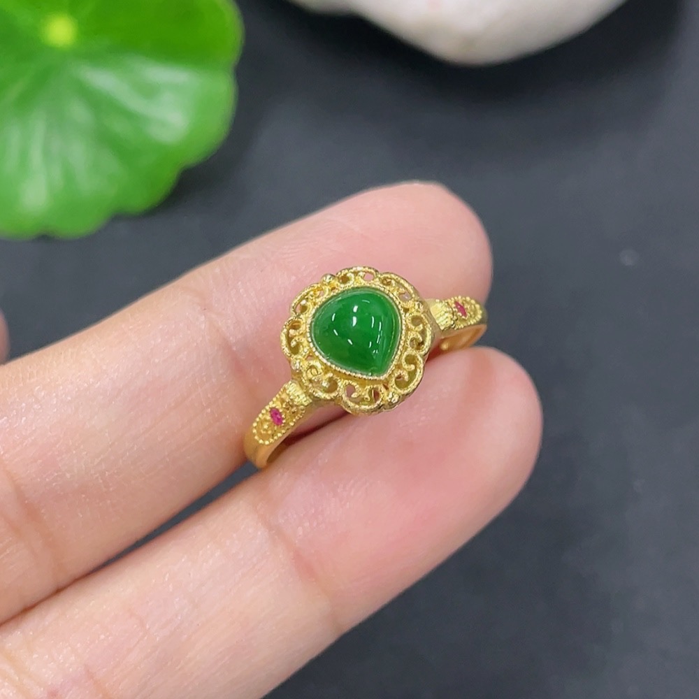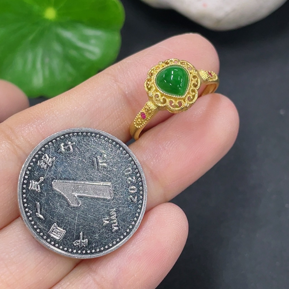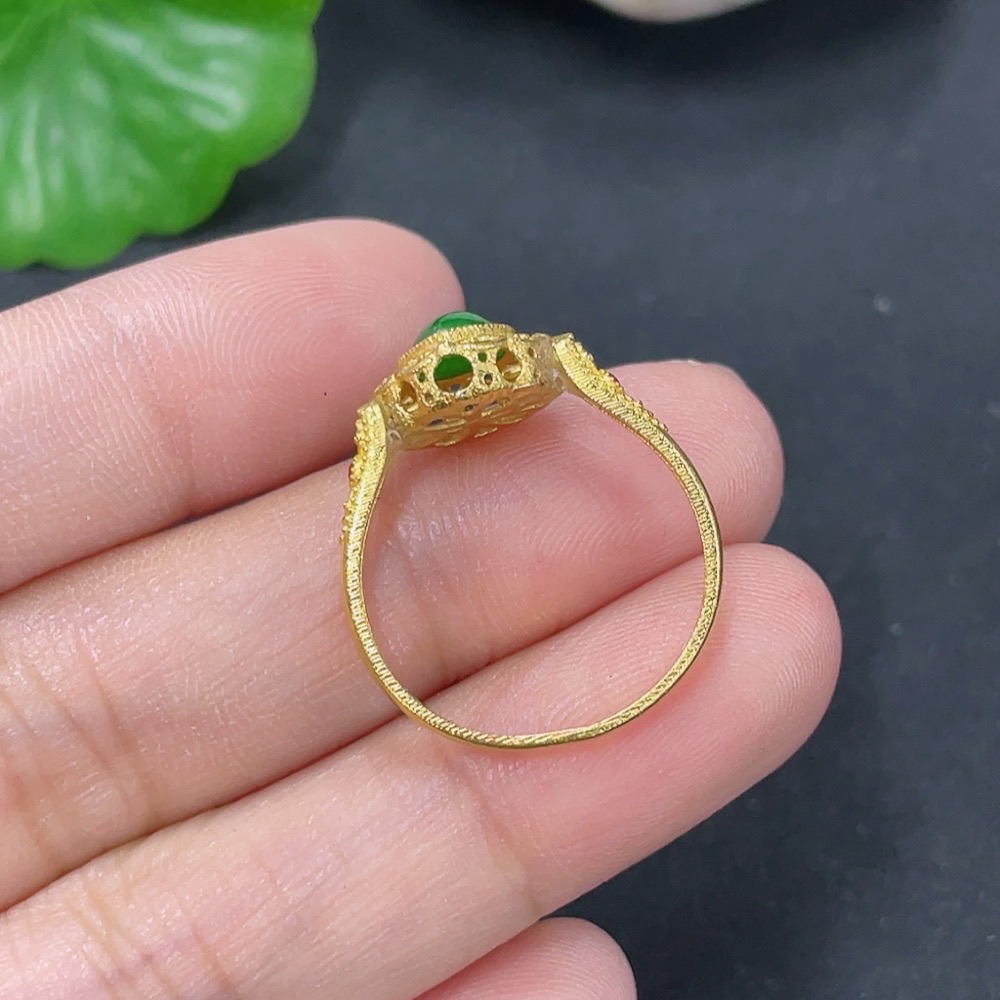 Jadeite Inlaid Ring Surface Tested 18k Gold Size 11 Total Weight Approx. 1.77g