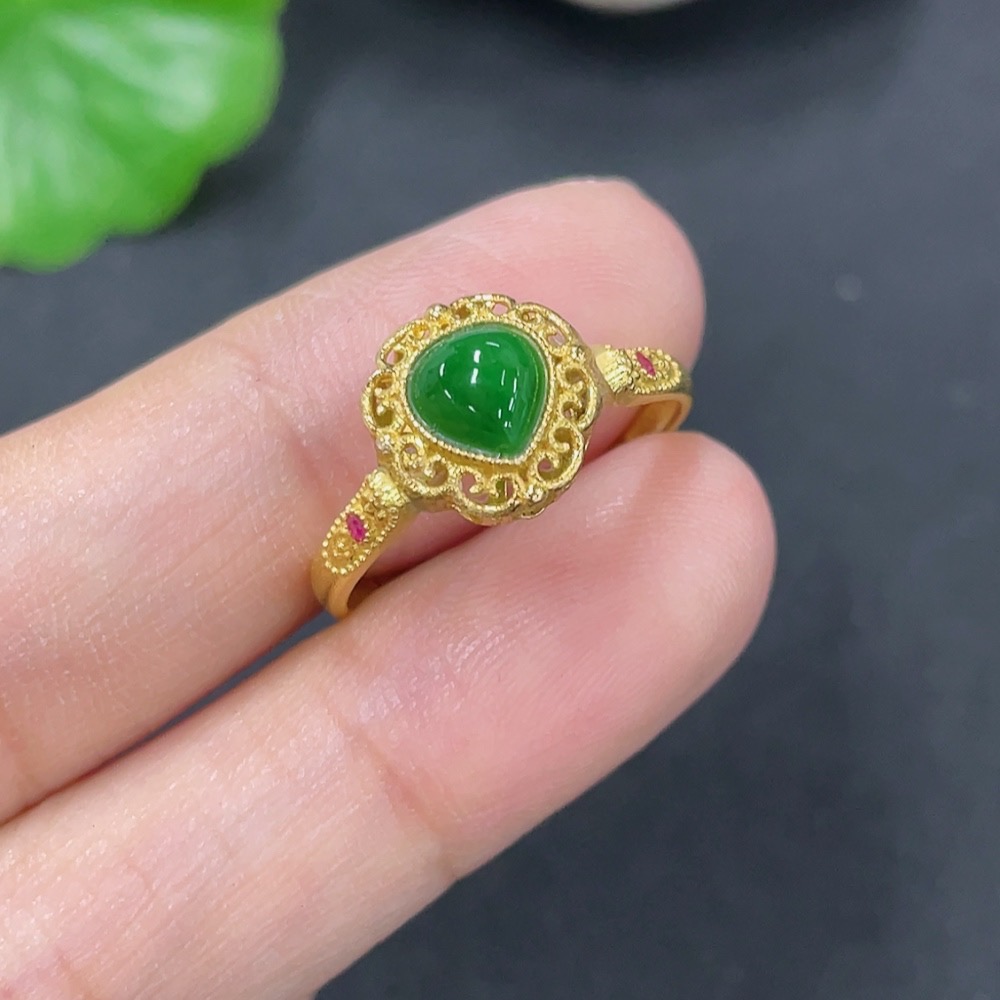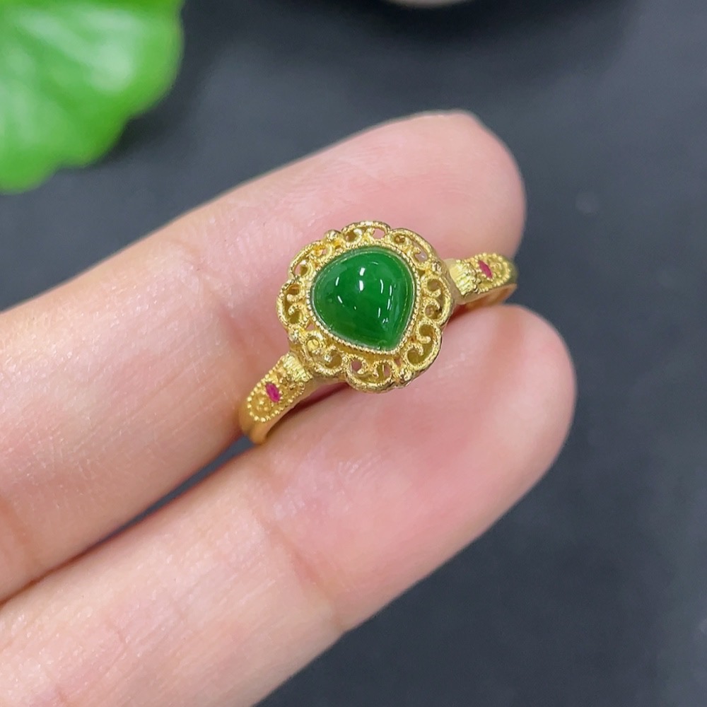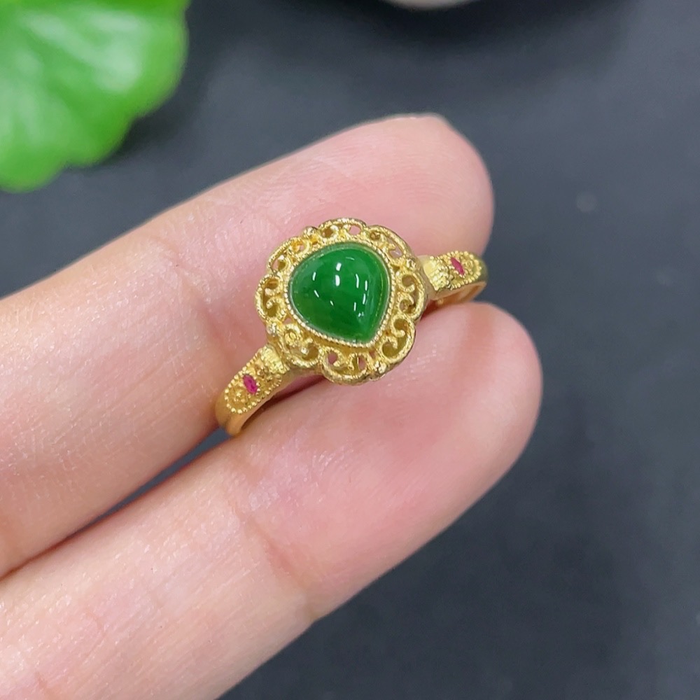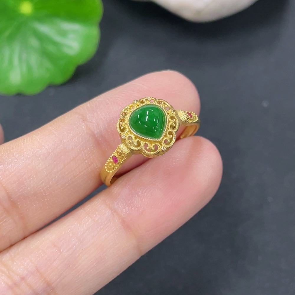 Jadeite Inlaid Ring Surface Tested 18k Gold Size 11 Total Weight Approx. 1.77g