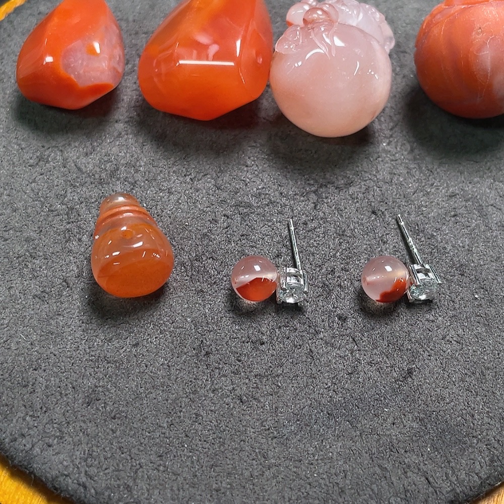 Red Agate Pendant + Earrings Non-Gold Visible Organic Matter Total Weight Approx. 43.6g Sell as a Lot