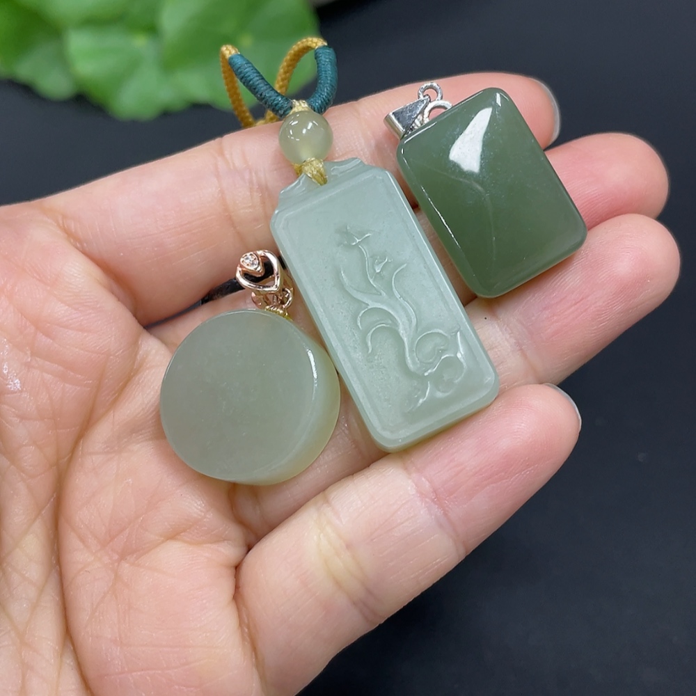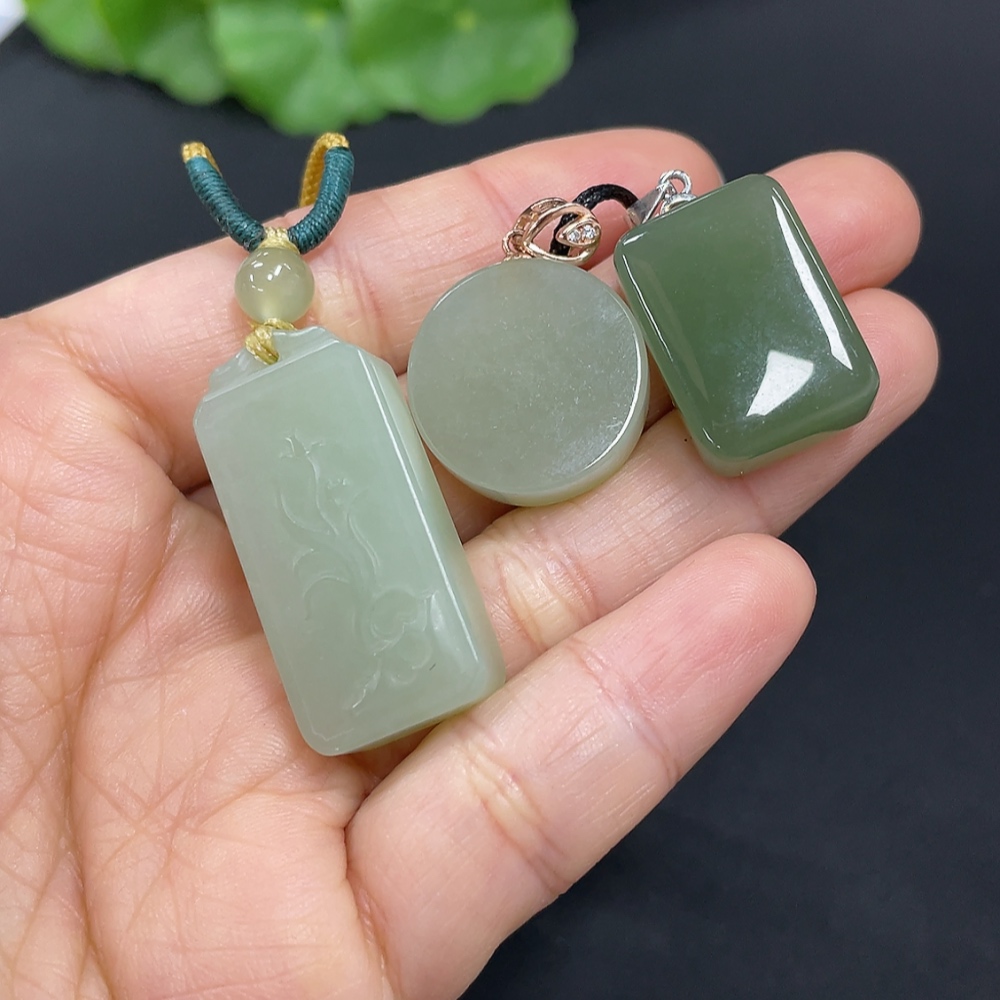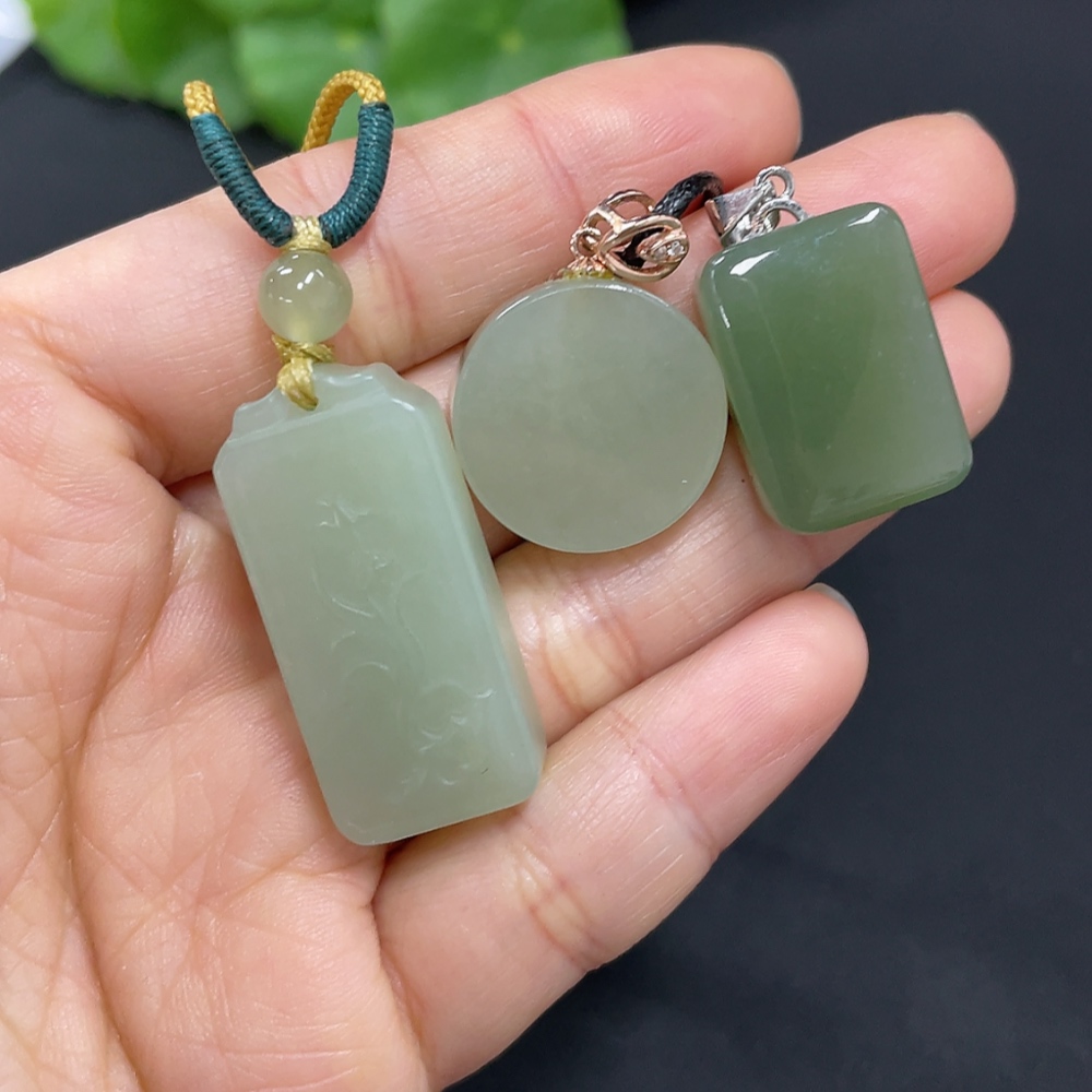 Hetian Jade Pendant, Non-Gold Inlaid, Total Weight (Including Rope) Approx. 23.9g, Matching Beads Not Hetian Jade