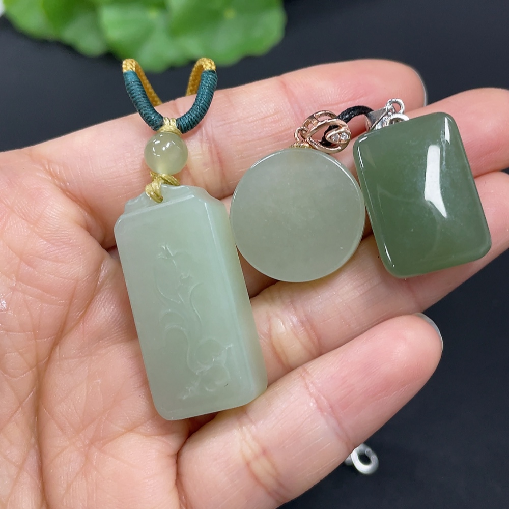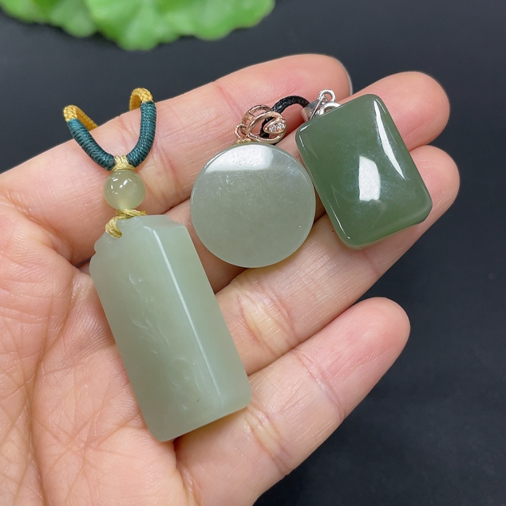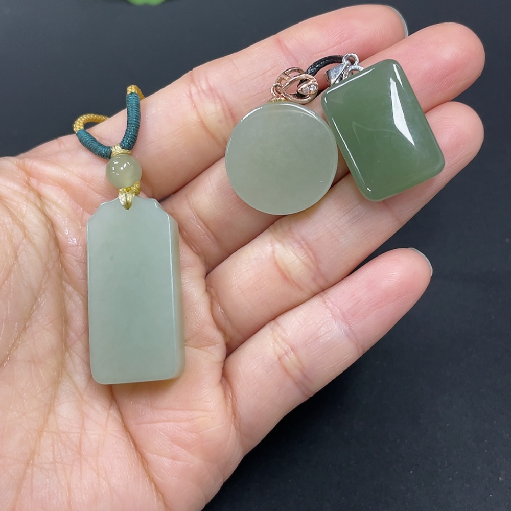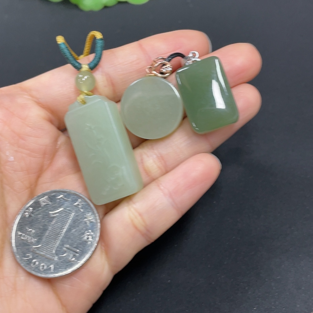 Hetian Jade Pendant, Non-Gold Inlaid, Total Weight (Including Rope) Approx. 23.9g, Matching Beads Not Hetian Jade