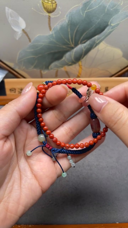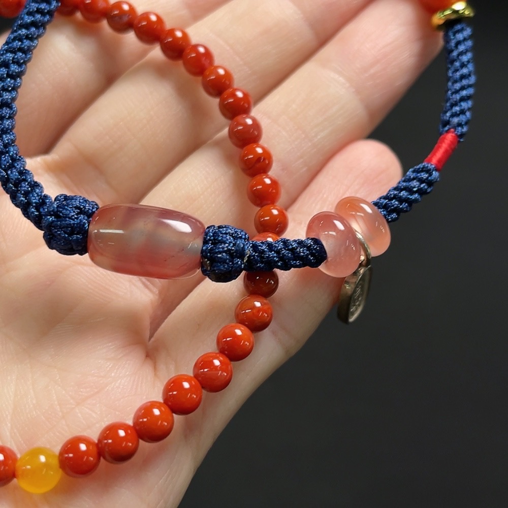South Red Agate Bracelet with Visible Organic Matter, Non-Natural Accent Stones Considered, Non-Metal, Total Weight Approx. 11.3g, Sell as a Lot