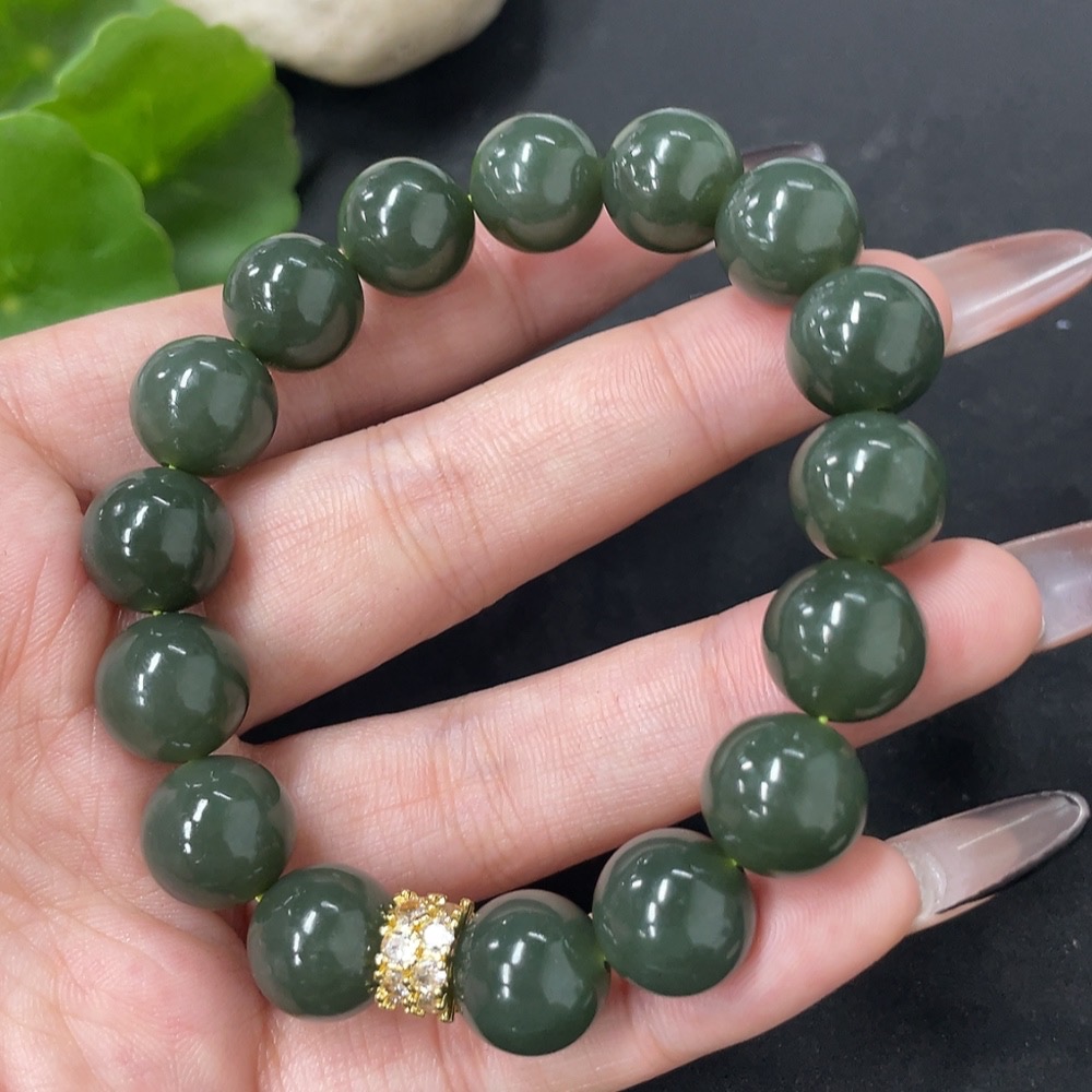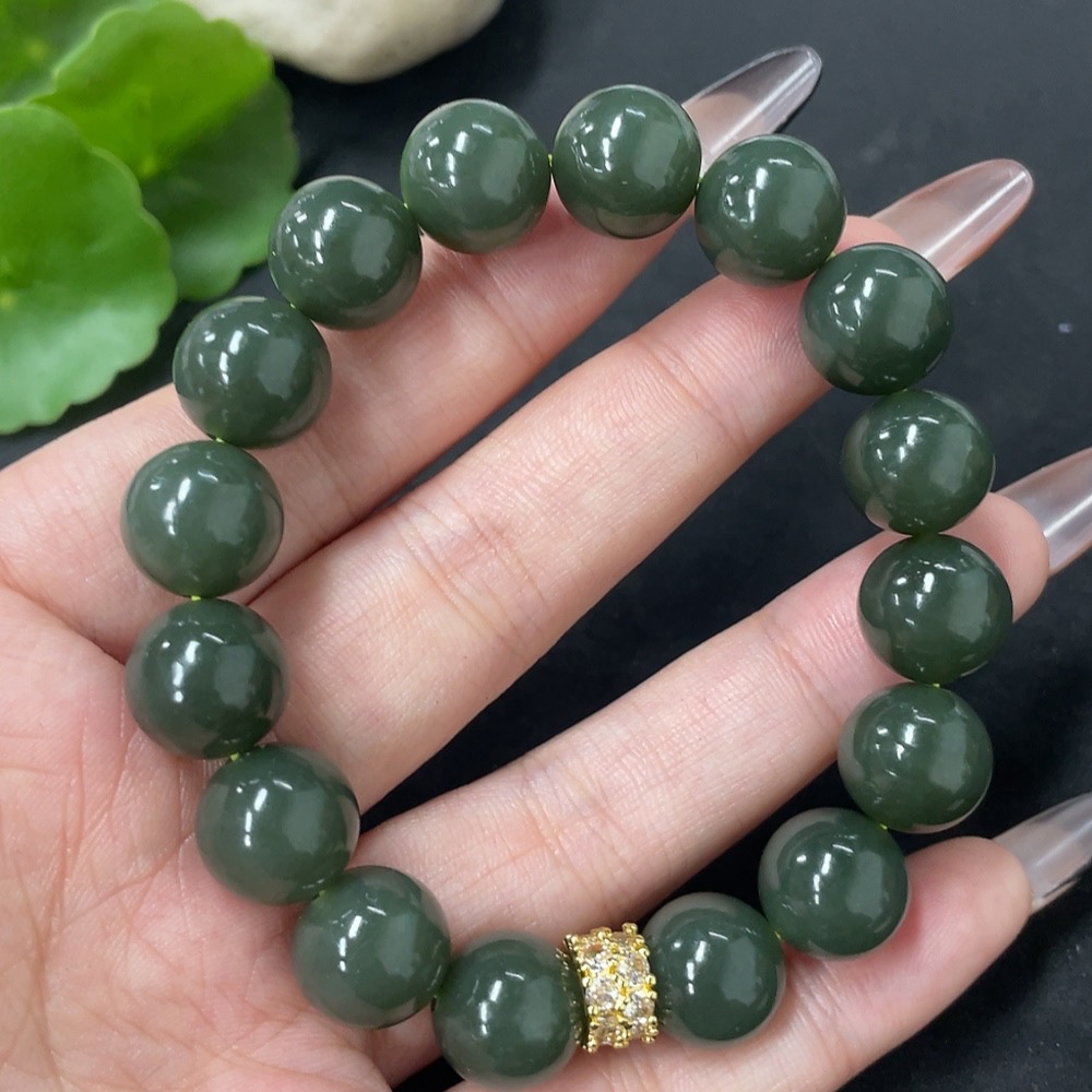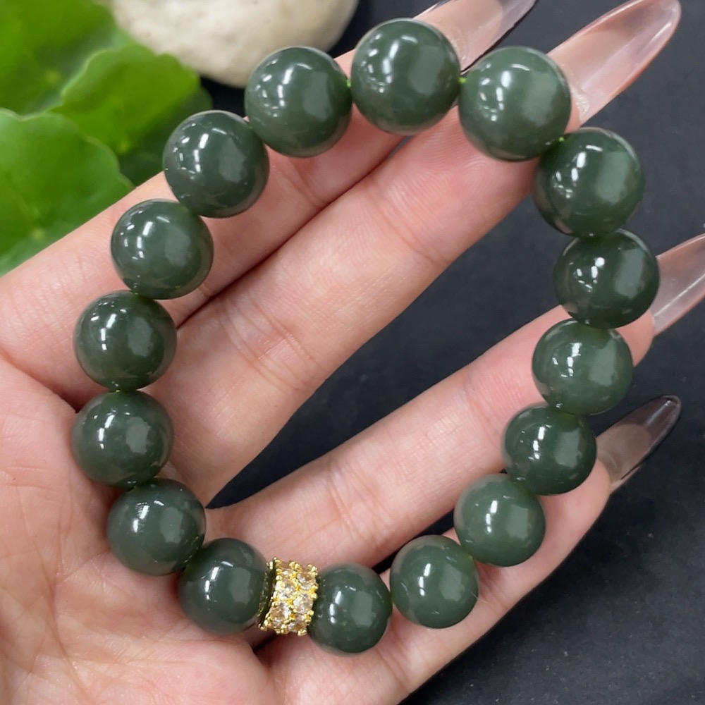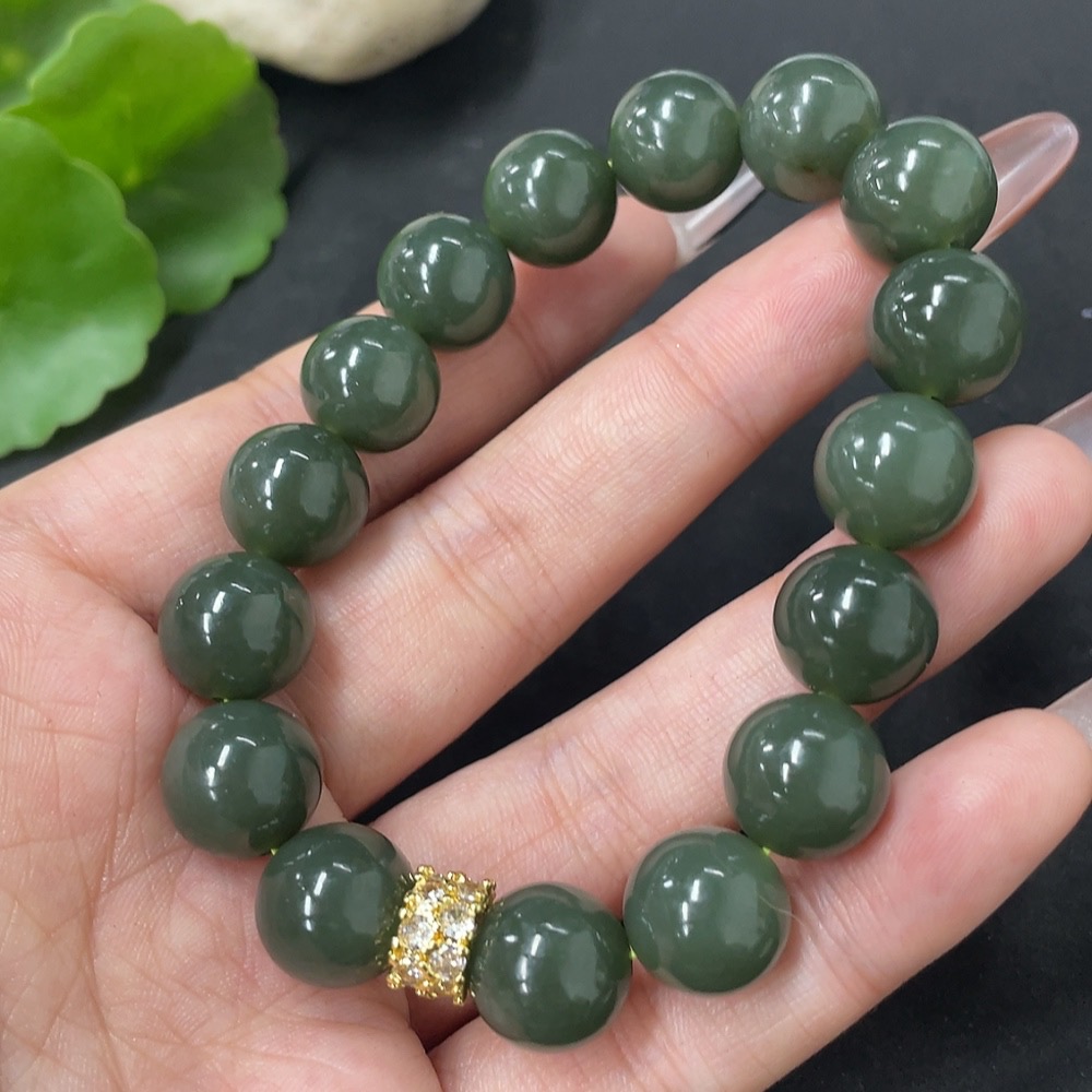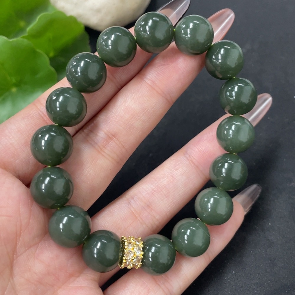 Hetian Jade Bracelet Approx.11.8mm Total Weight Approx.44.2g Non-Gold