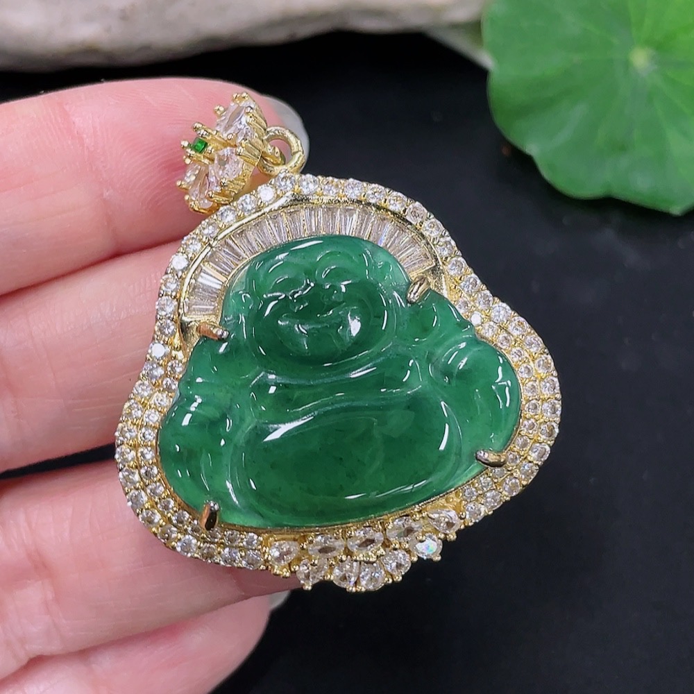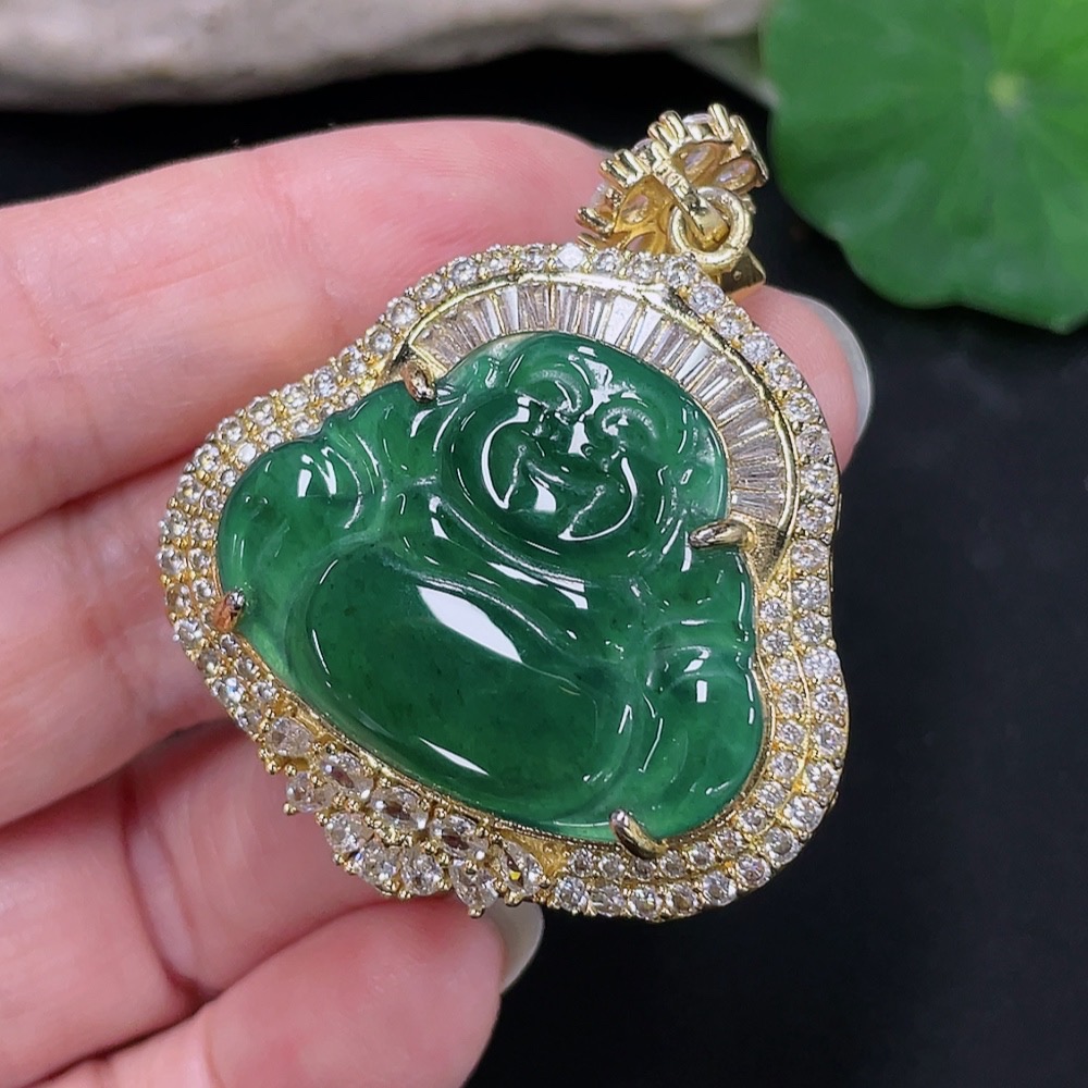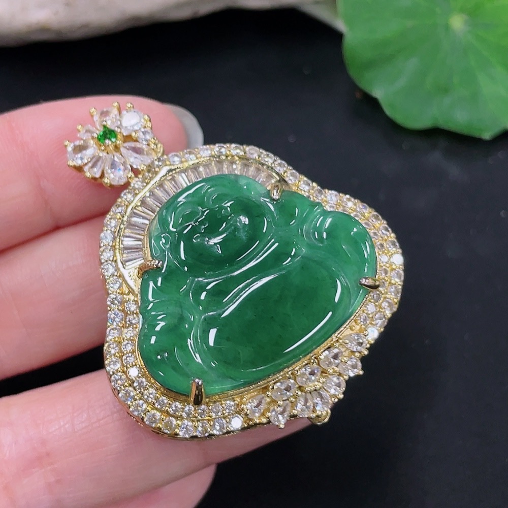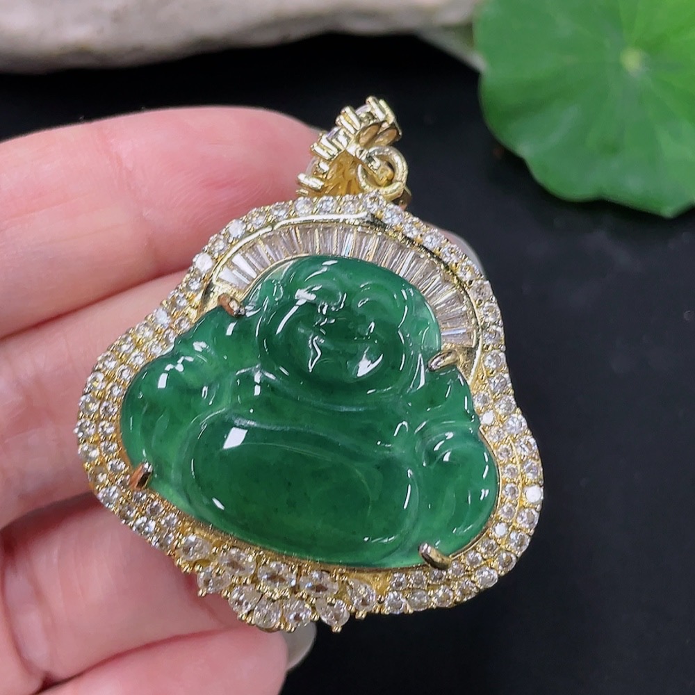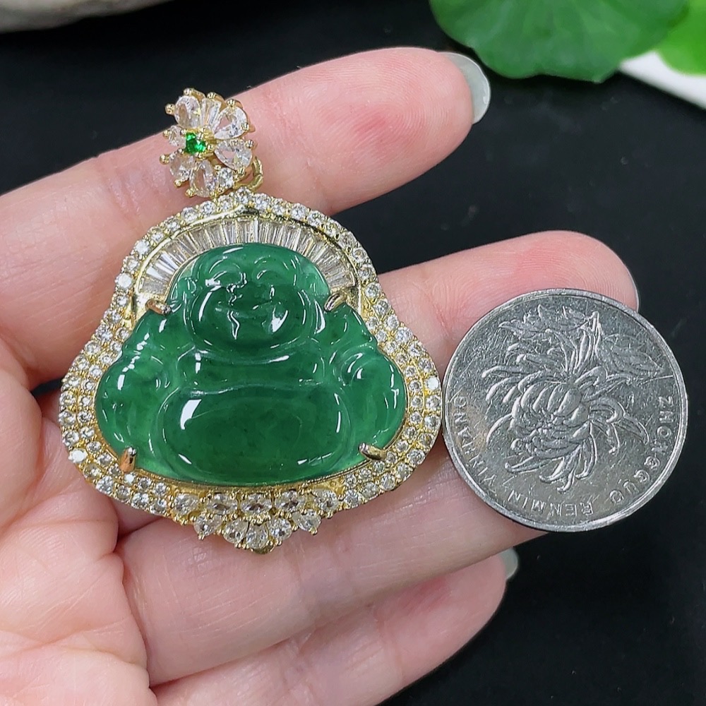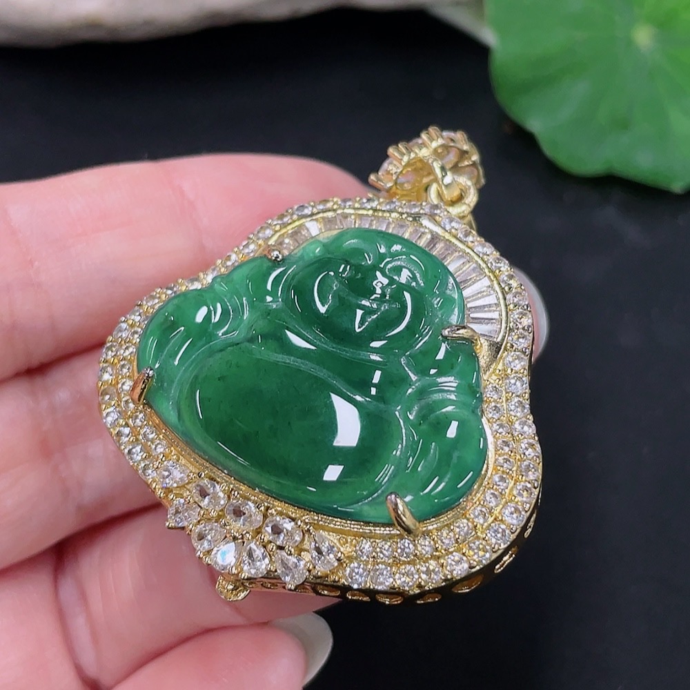 Jadeite Buddha Pendant Mounting Non-Gold Total Weight Approx. 18.11g
