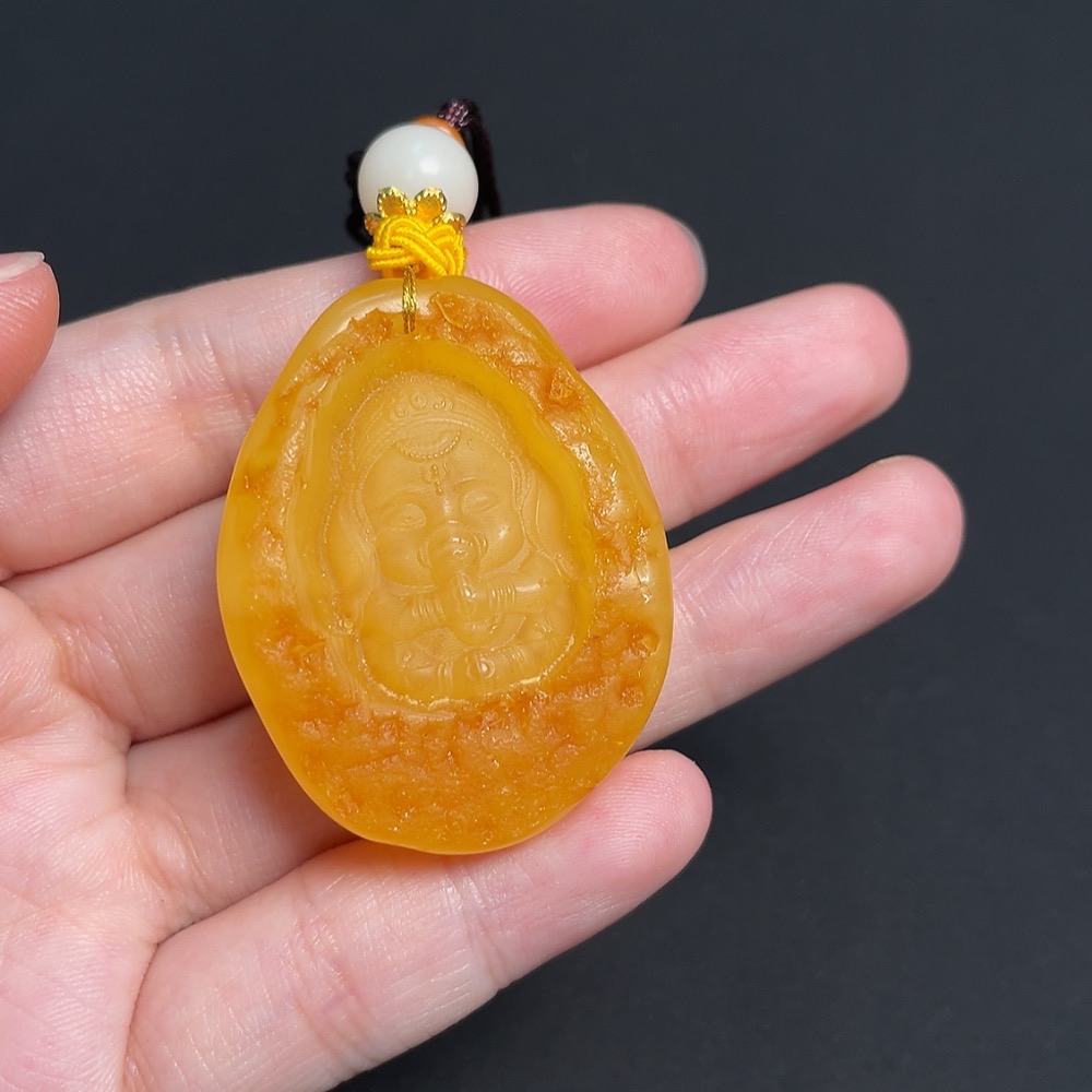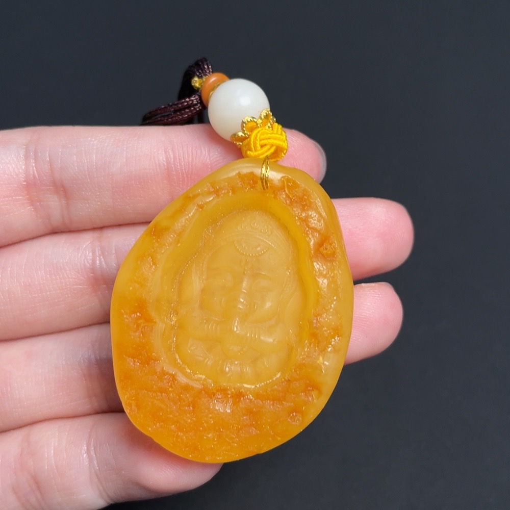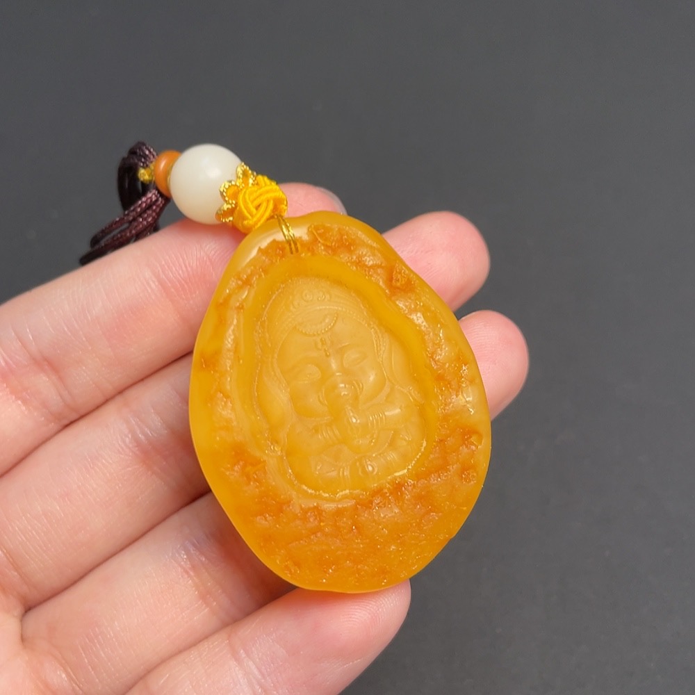 Amber Beeswax Pendant, Total Weight Including Rope Approximately 14.36g, Consider Non-Natural Matching Stones