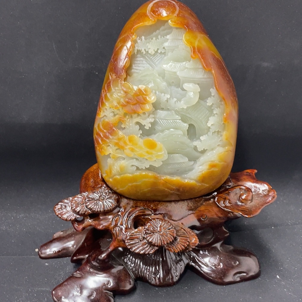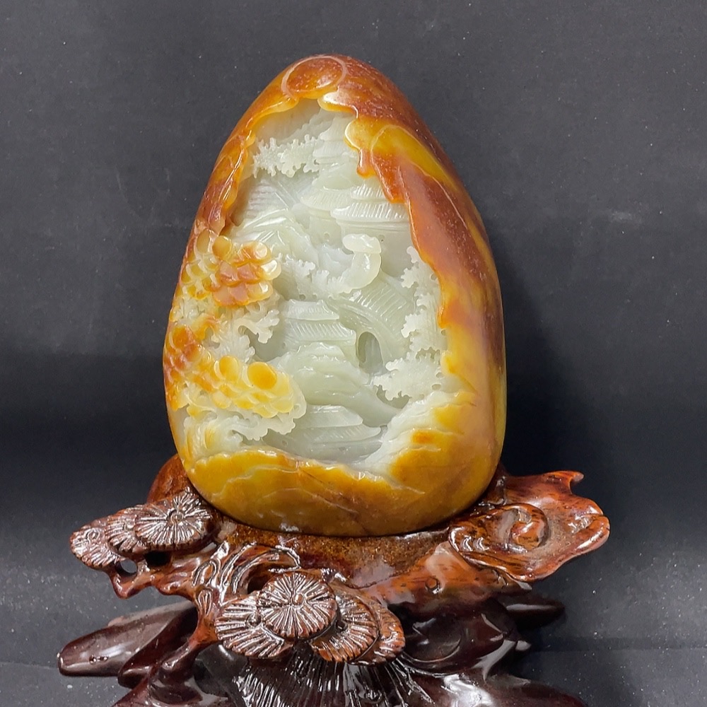 Hetian Jade Ornament Landscape with Other Mineral Components Undetermined Skin Color Origin Total Weight Approx. 1.04kg