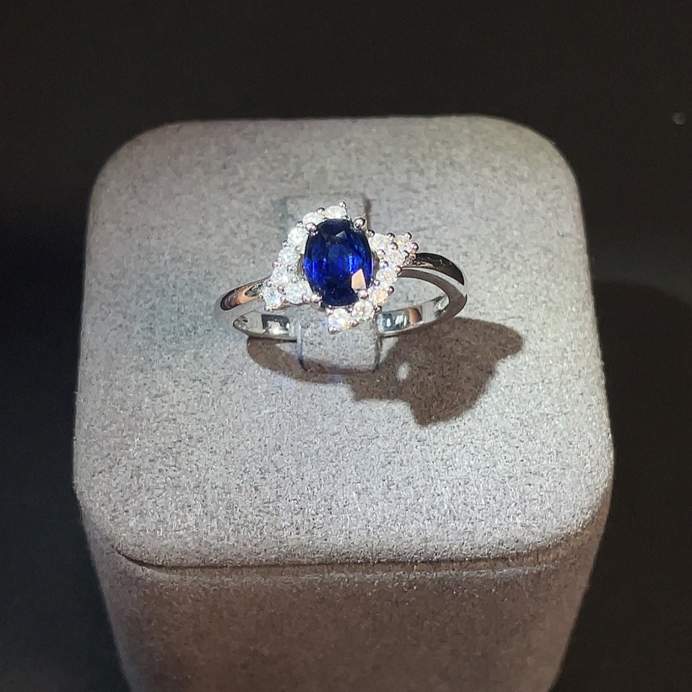 Sapphire Inlaid Ring 18k Gold Size 16 Total Weight Approx. 3.97g With Diamond Accents