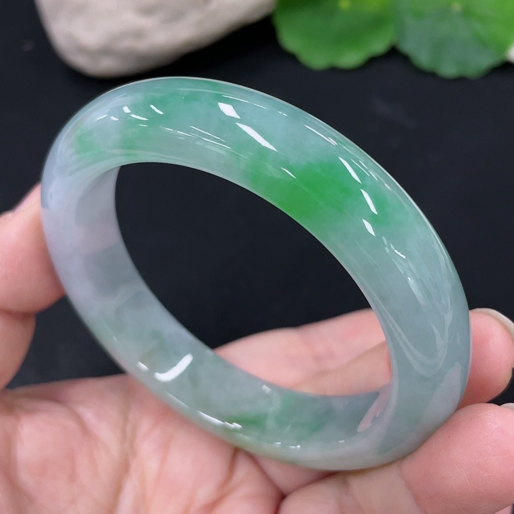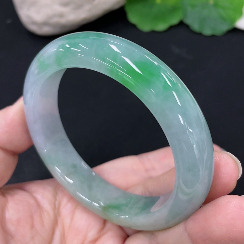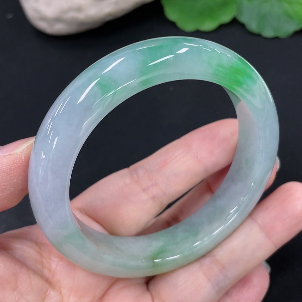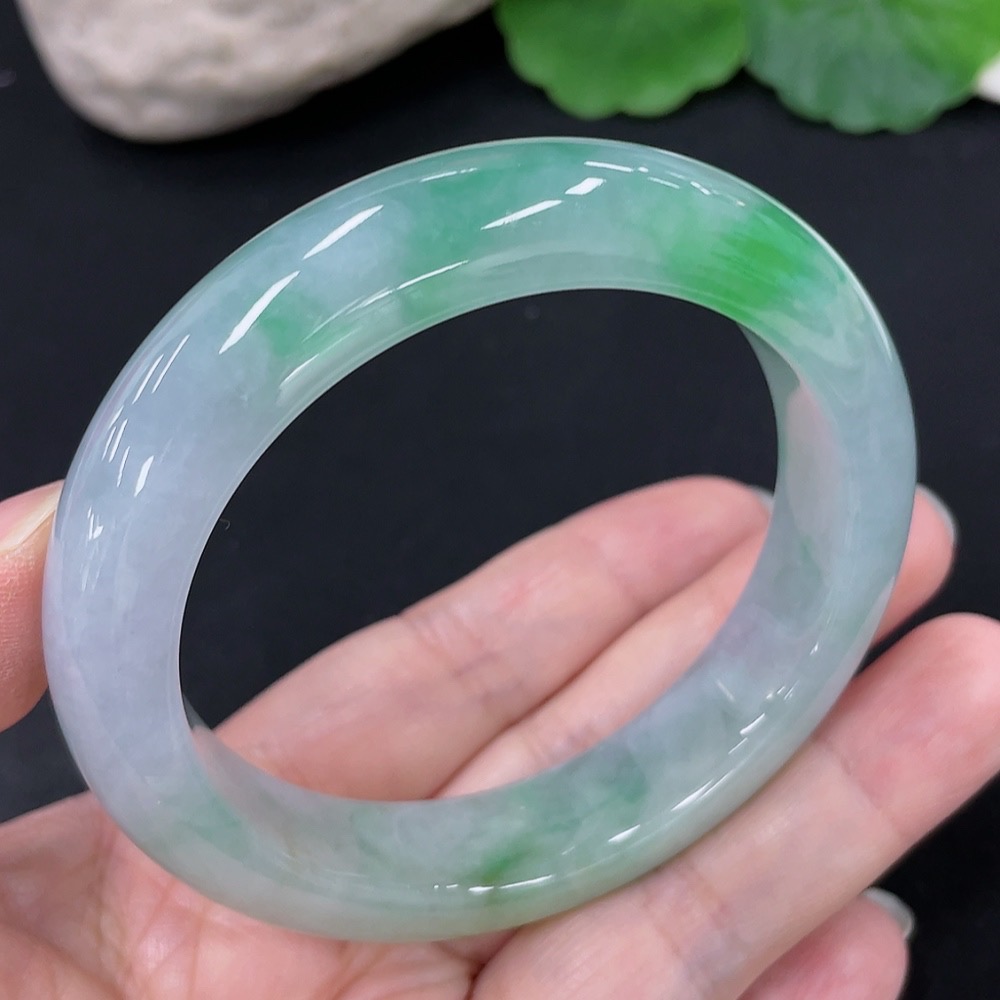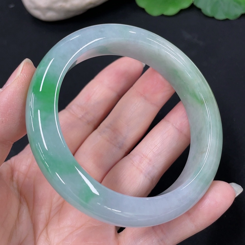 Jadeite Round Bangle, Total Weight Approx. 64.9g, Size 55.2