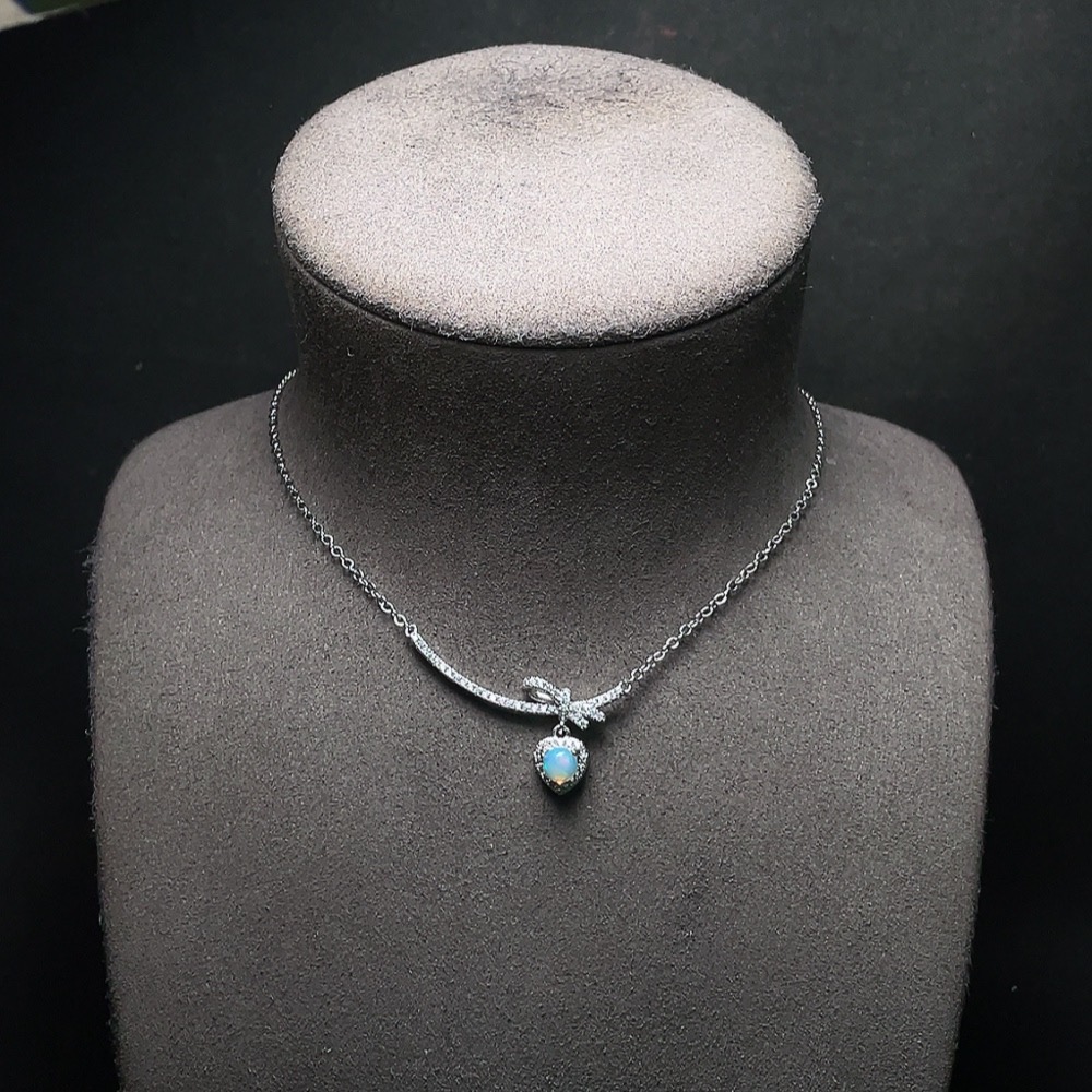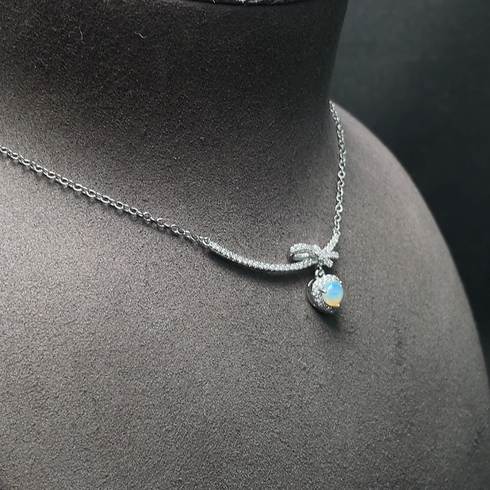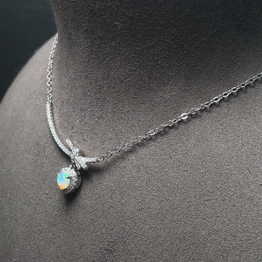 Trezaar - Opal necklace non-gold total weight approx. 4.6g stone size approx. 5.6mm