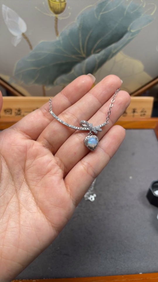 Opal necklace non-gold total weight approx. 4.6g stone size approx. 5.6mm