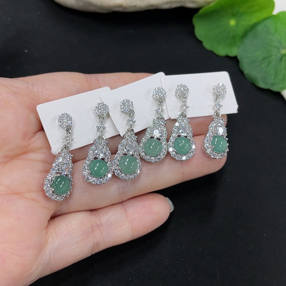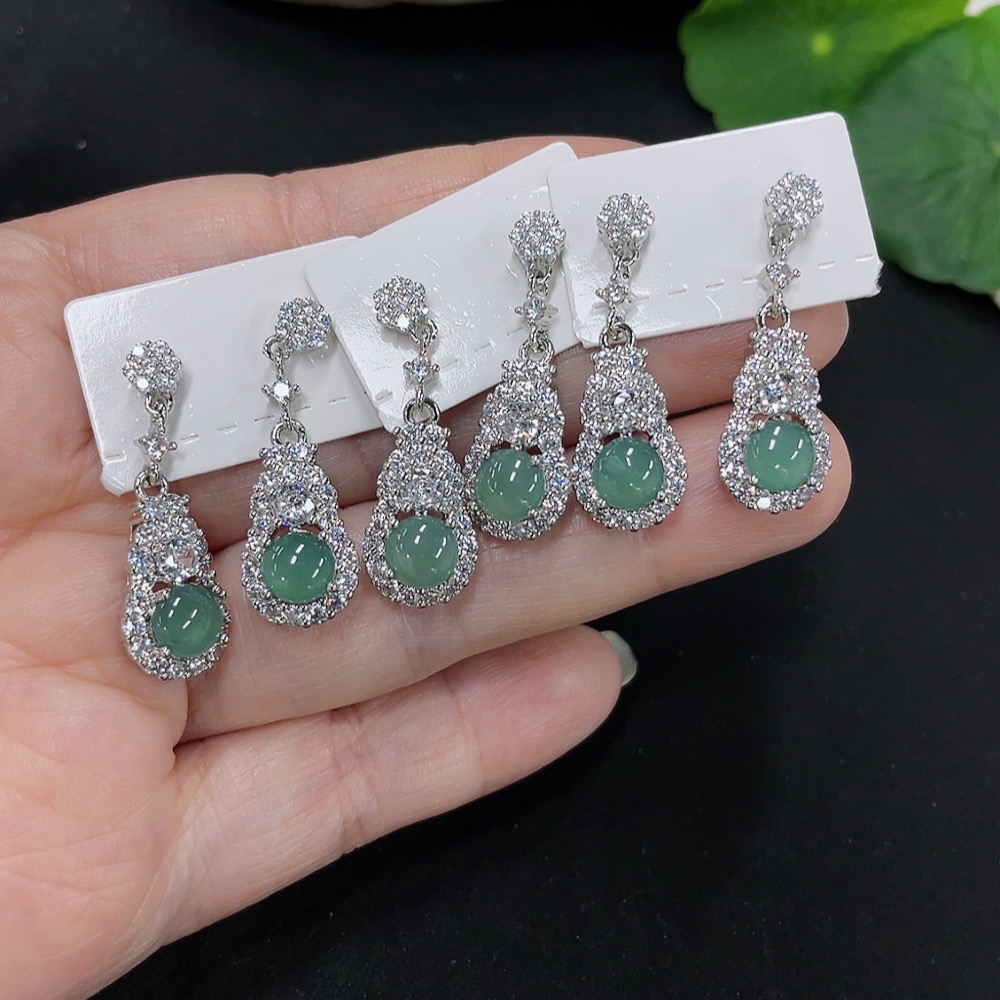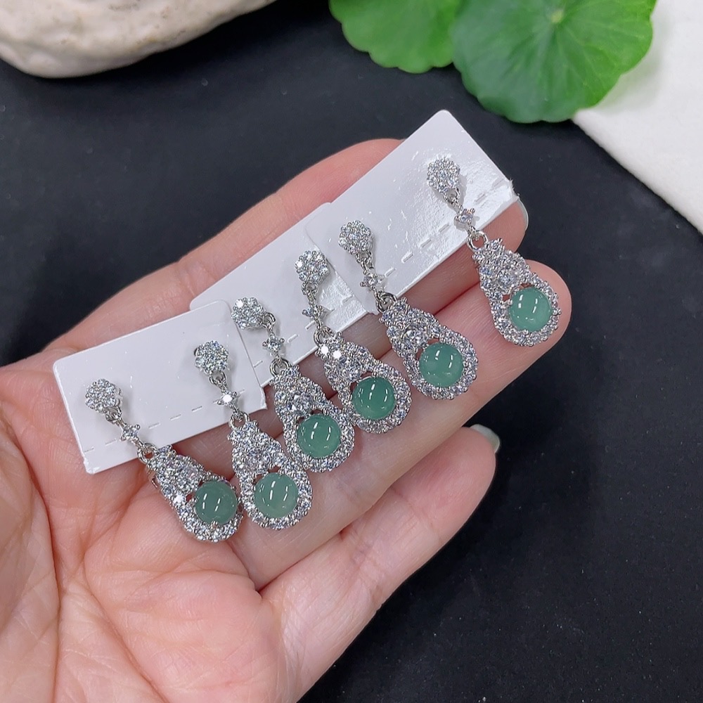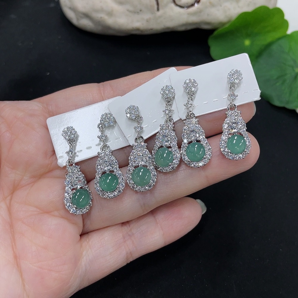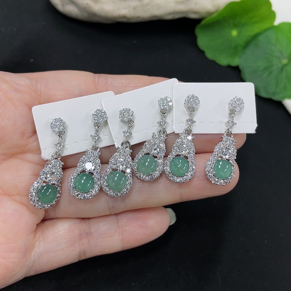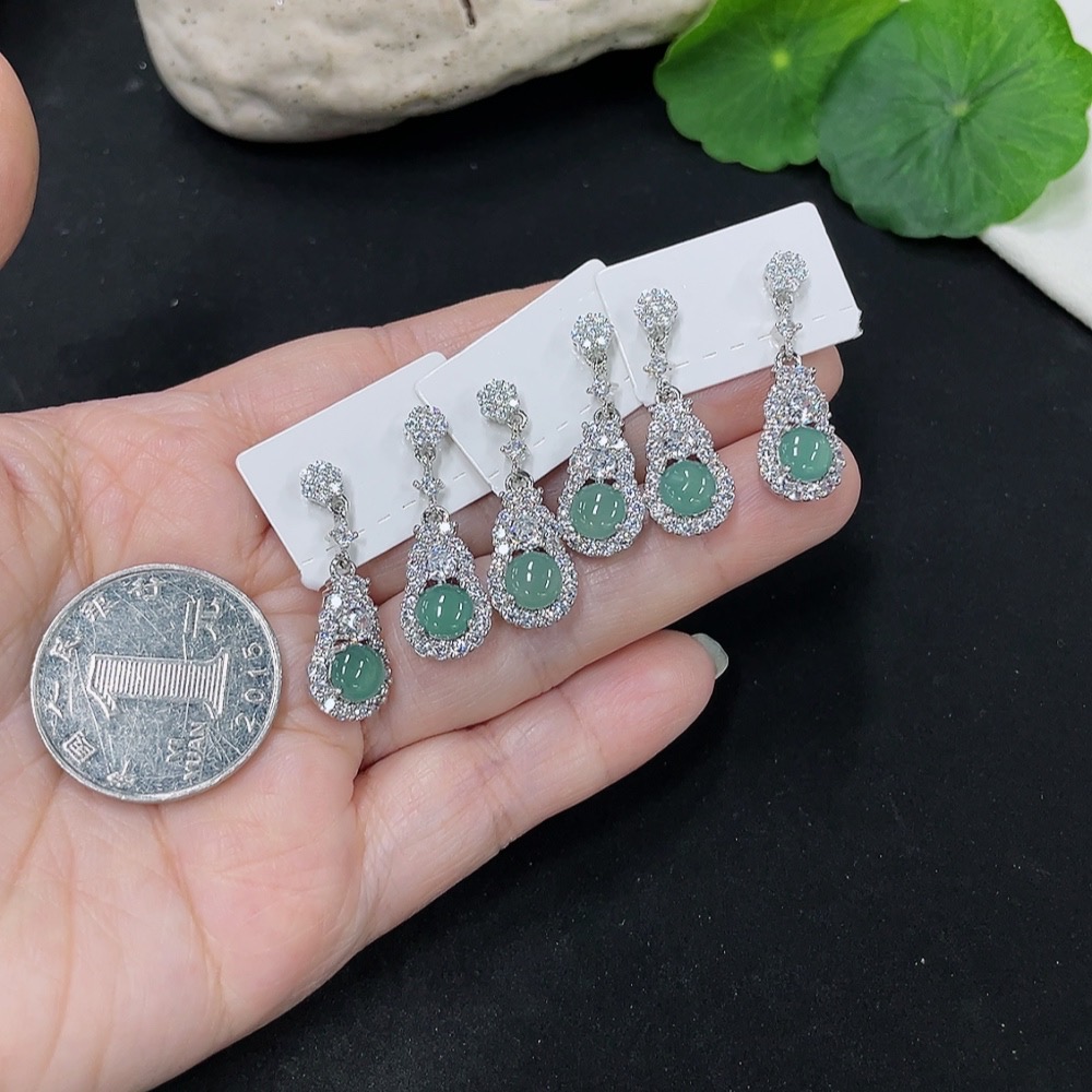 Jadeite Cabochon Stud Earrings Non-Gold Setting