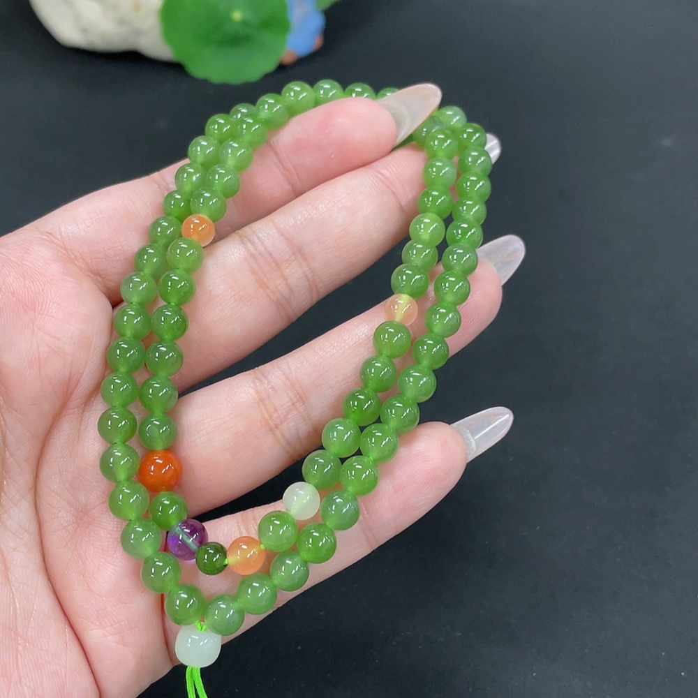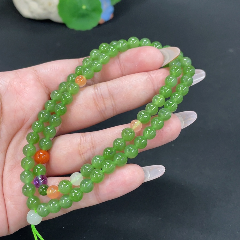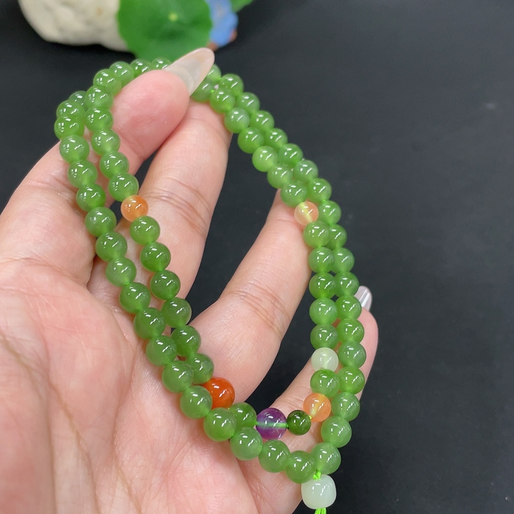 Hetian Jade Jasper Bead Necklace, approx. 6.2mm, total weight approx. 29.2g, non-Hetian Jade matching beads