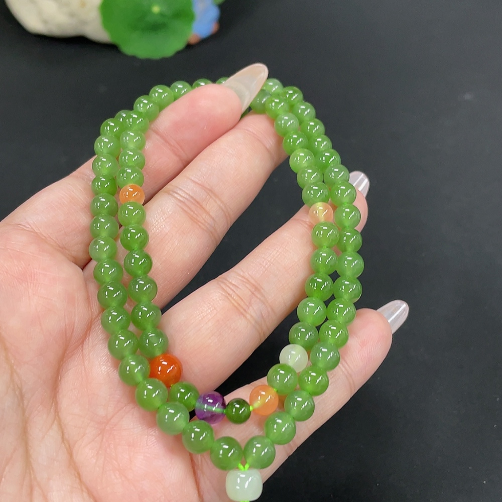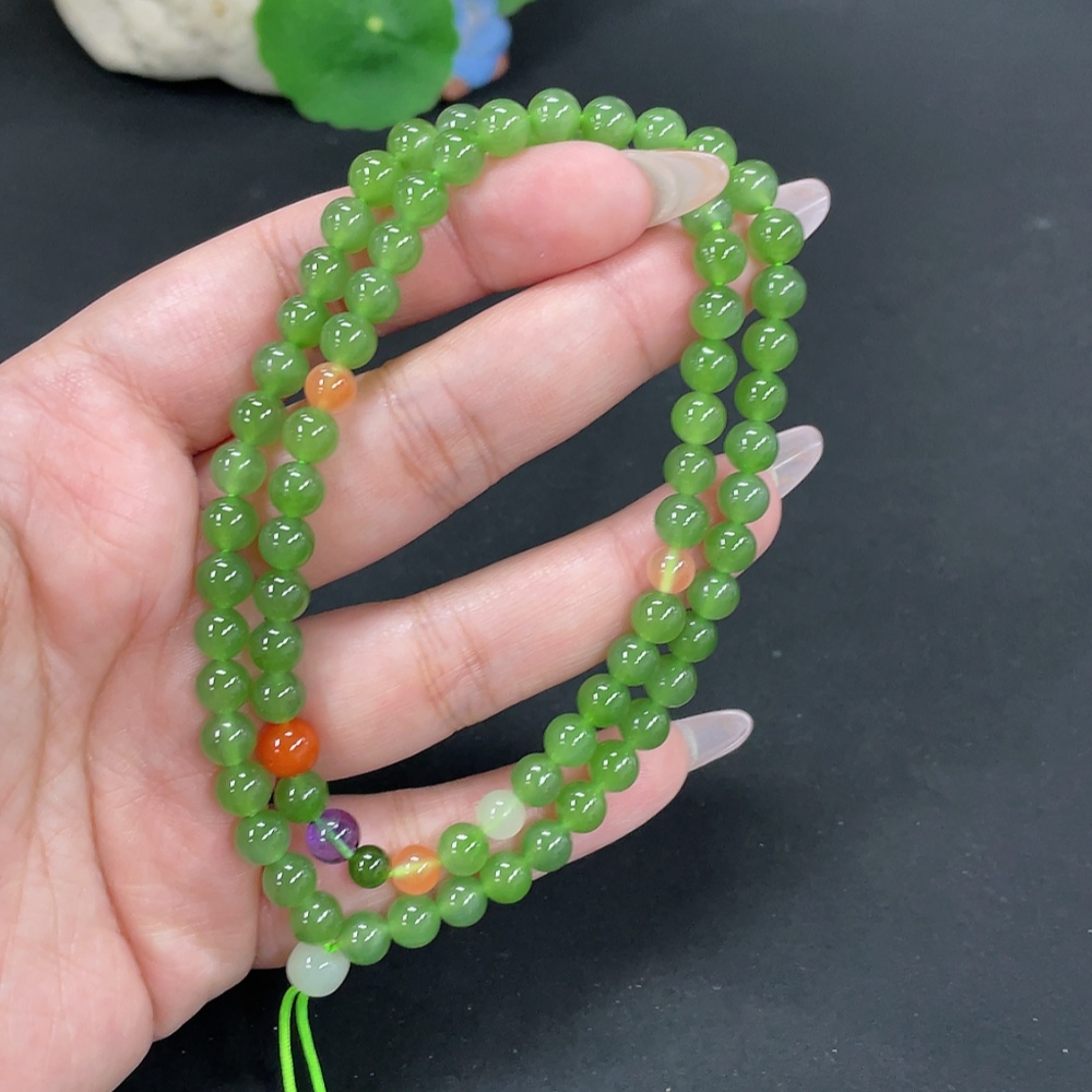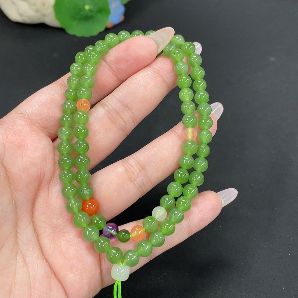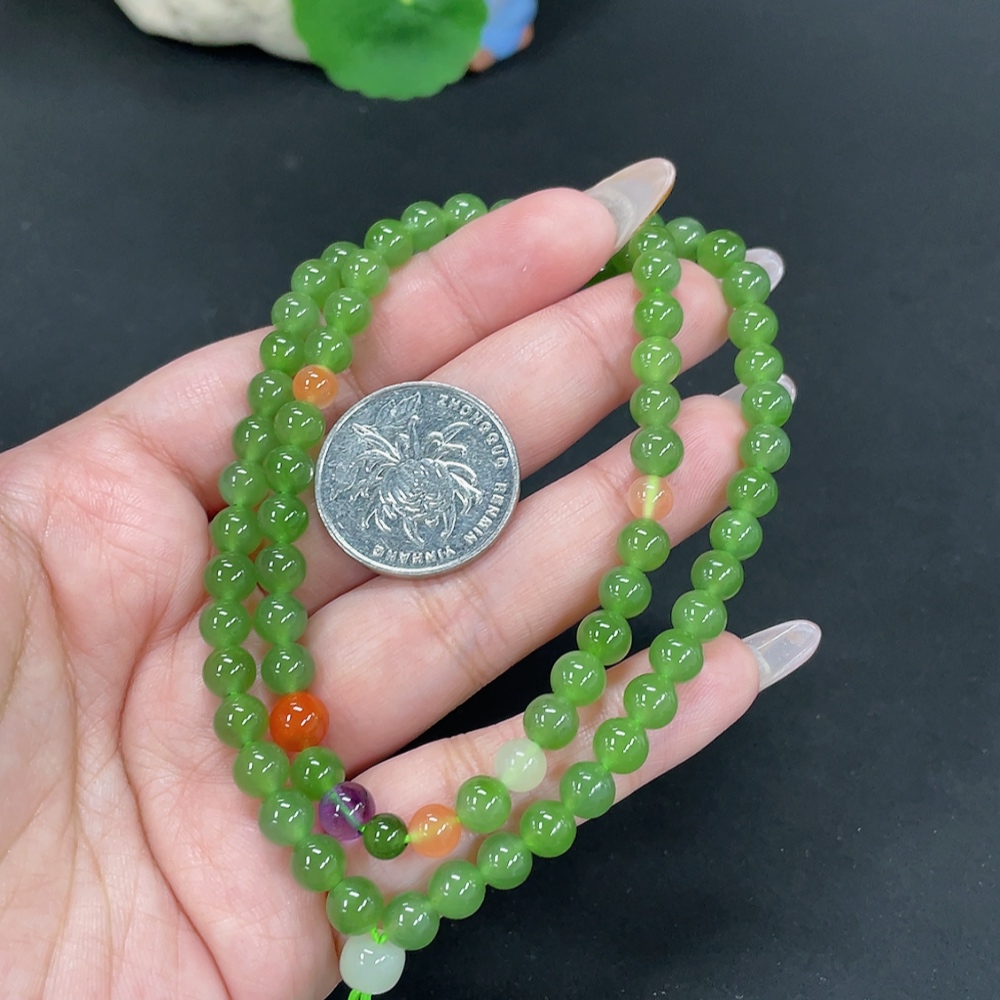 Hetian Jade Jasper Bead Necklace, approx. 6.2mm, total weight approx. 29.2g, non-Hetian Jade matching beads