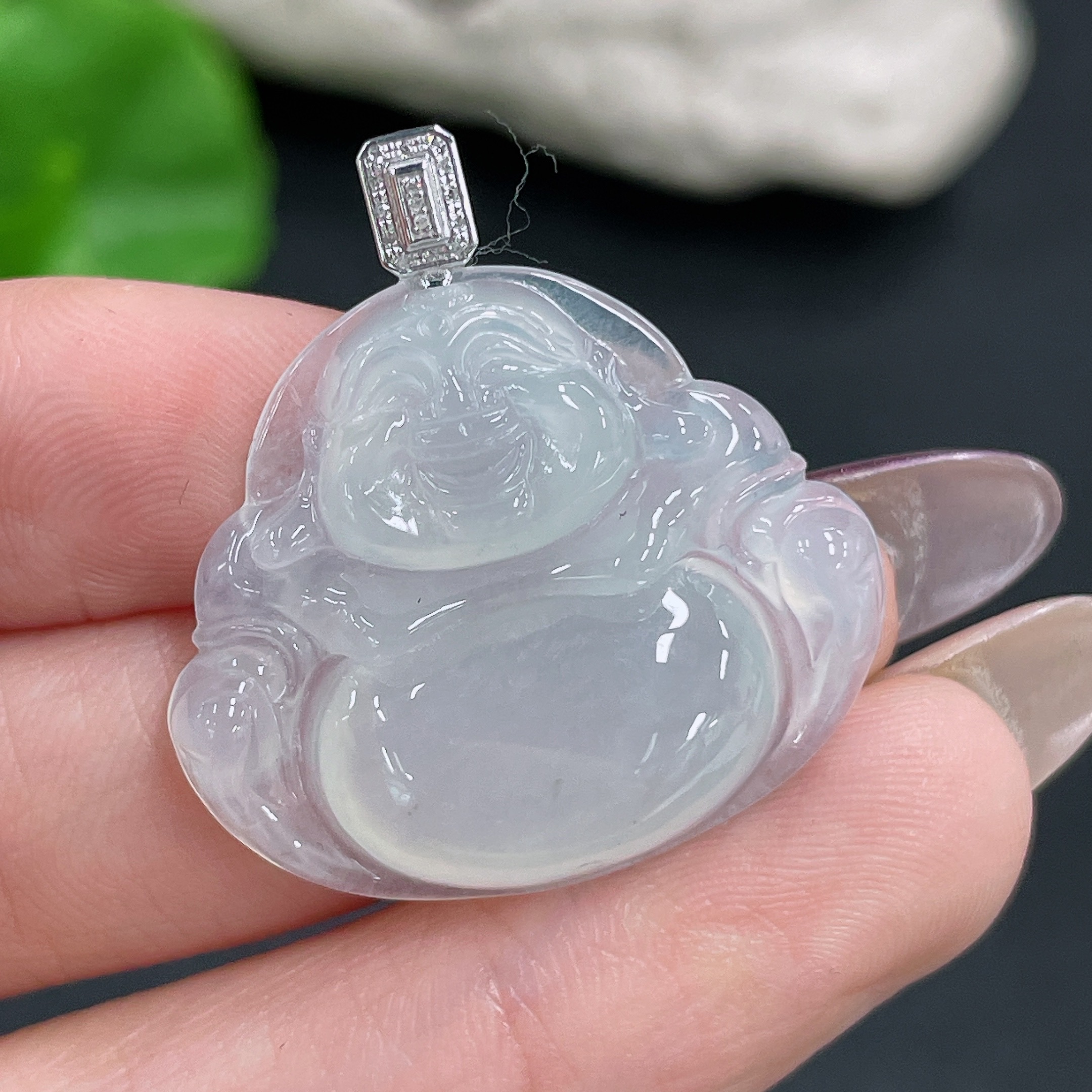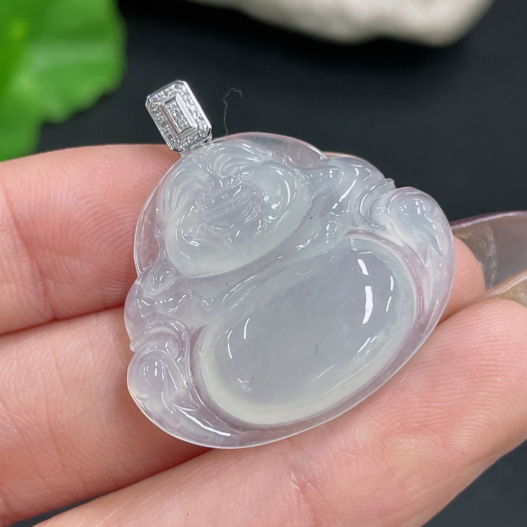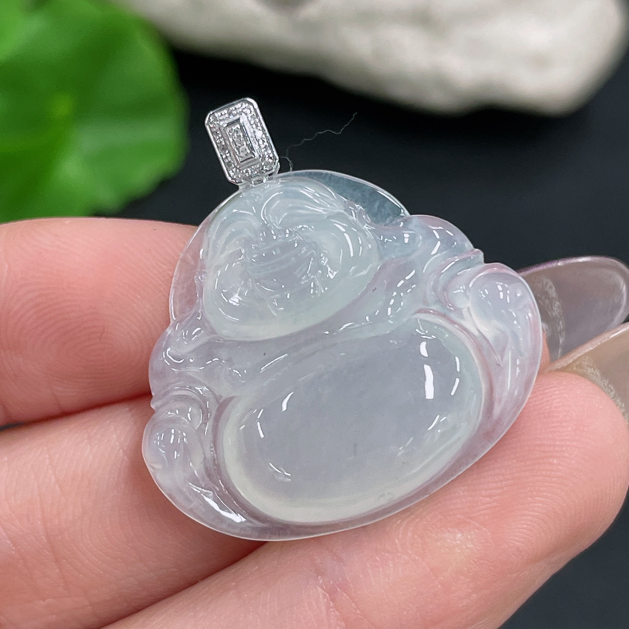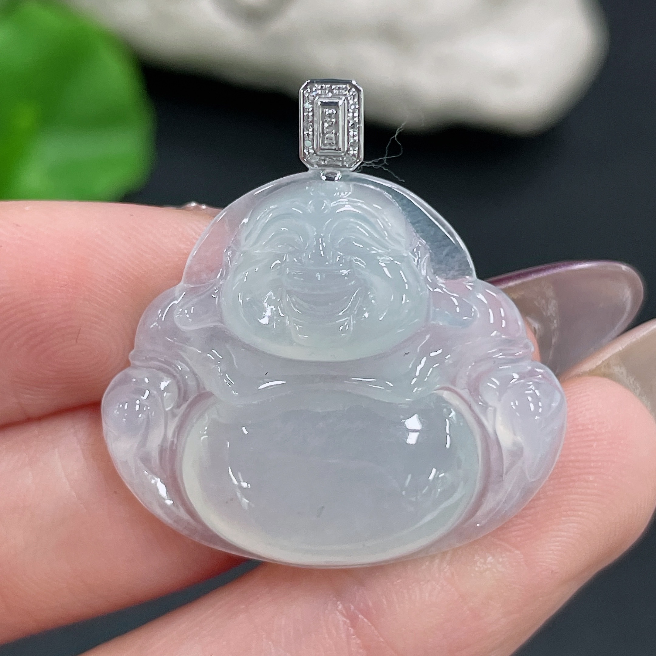 Jadeite Buddha Pendant with 18K Gold and Diamond Accents, Total Weight Approx. 5.86g