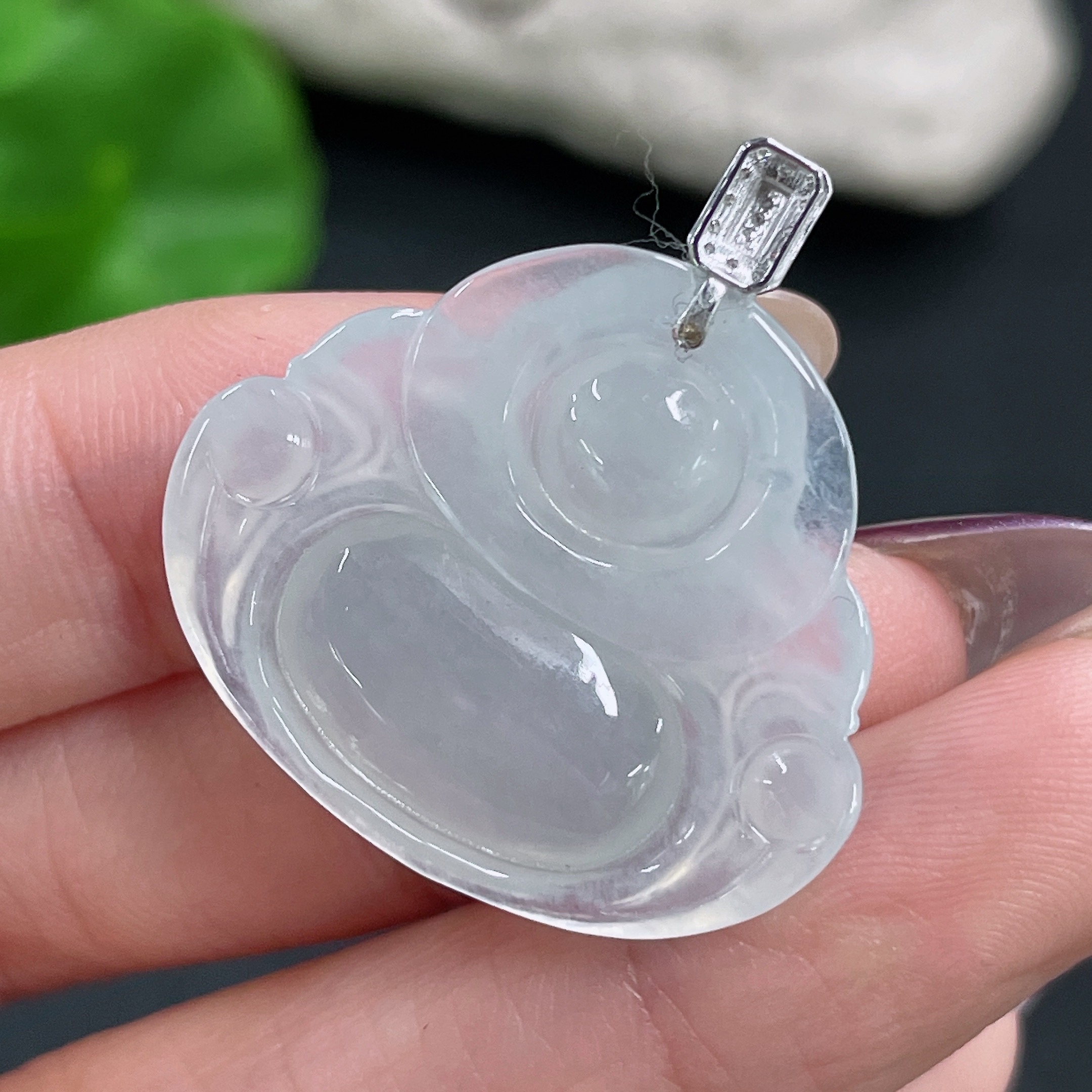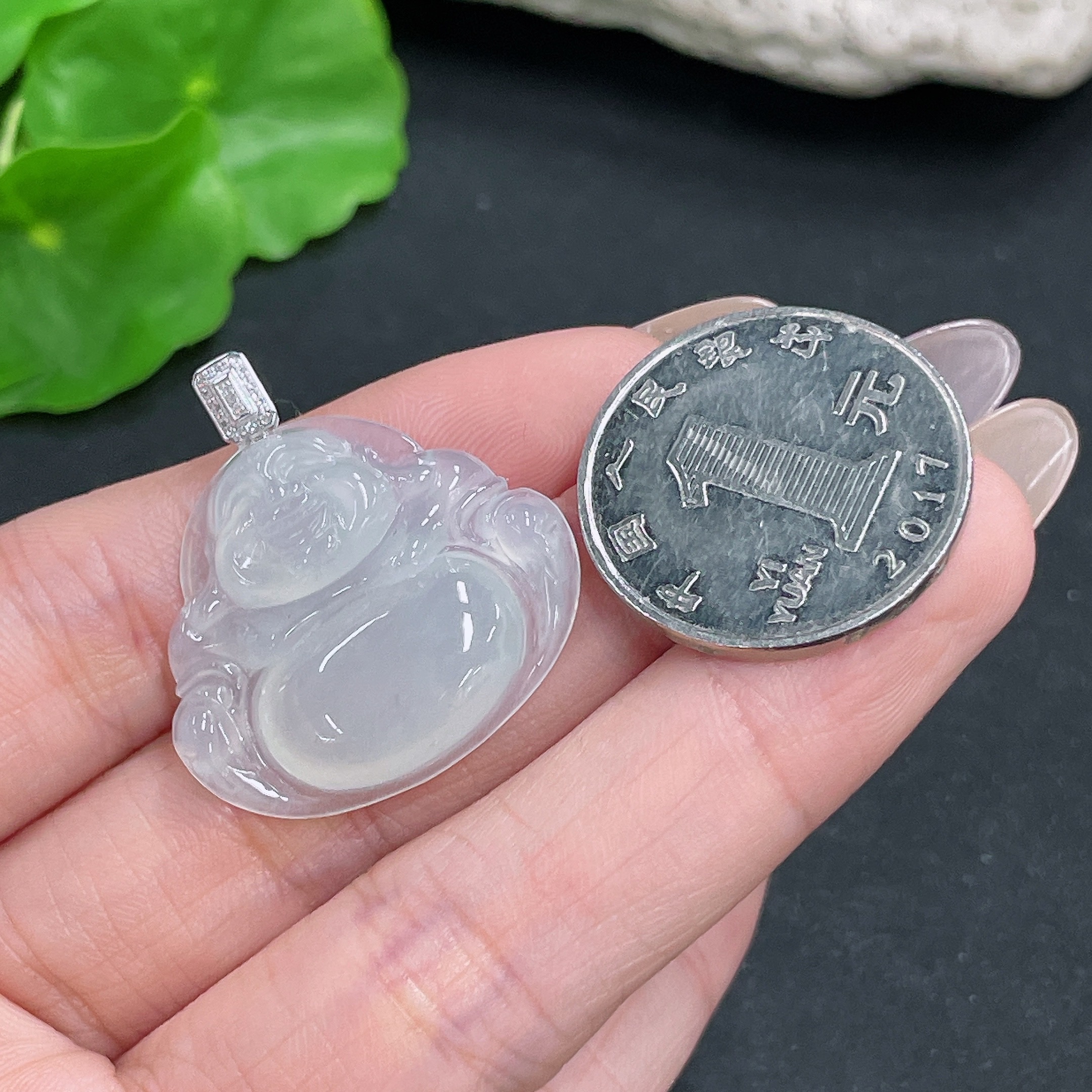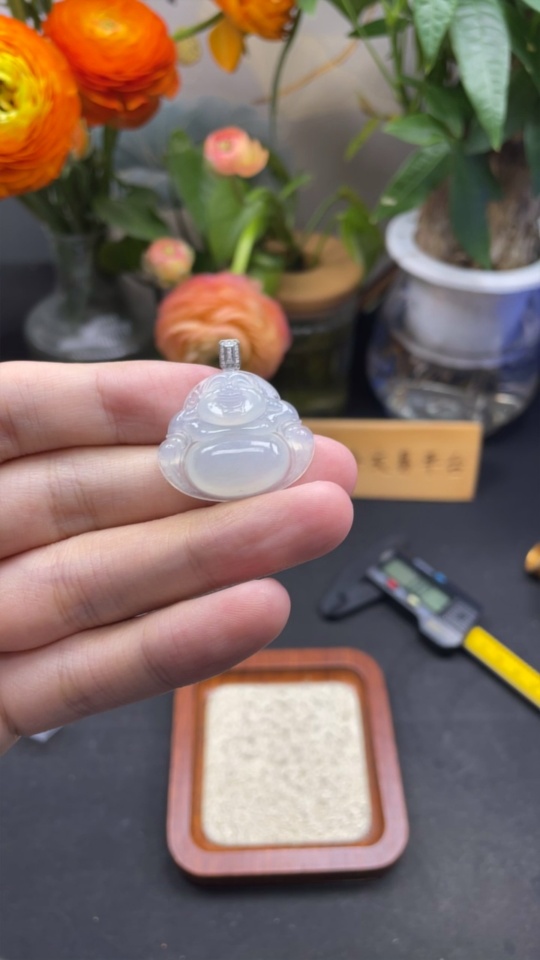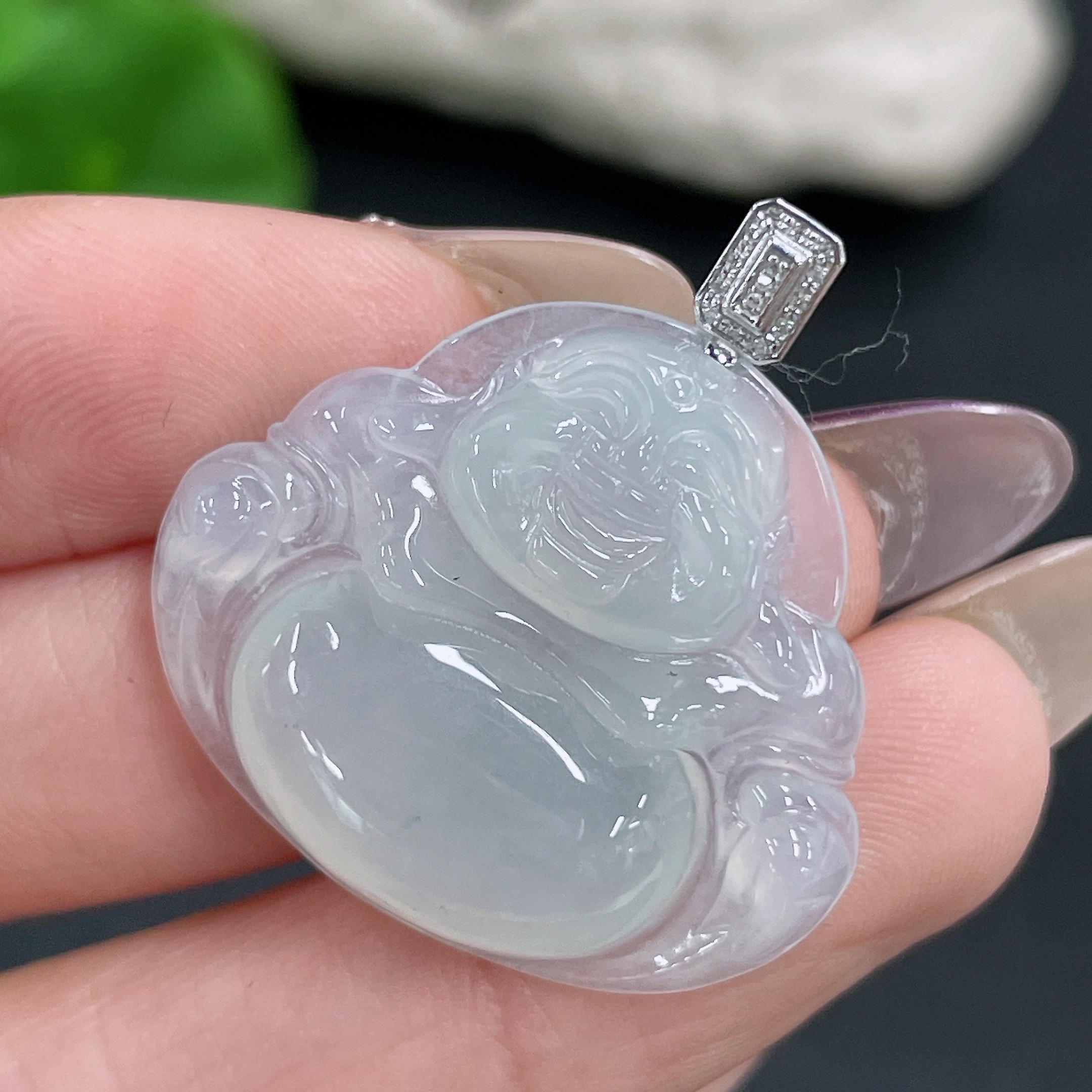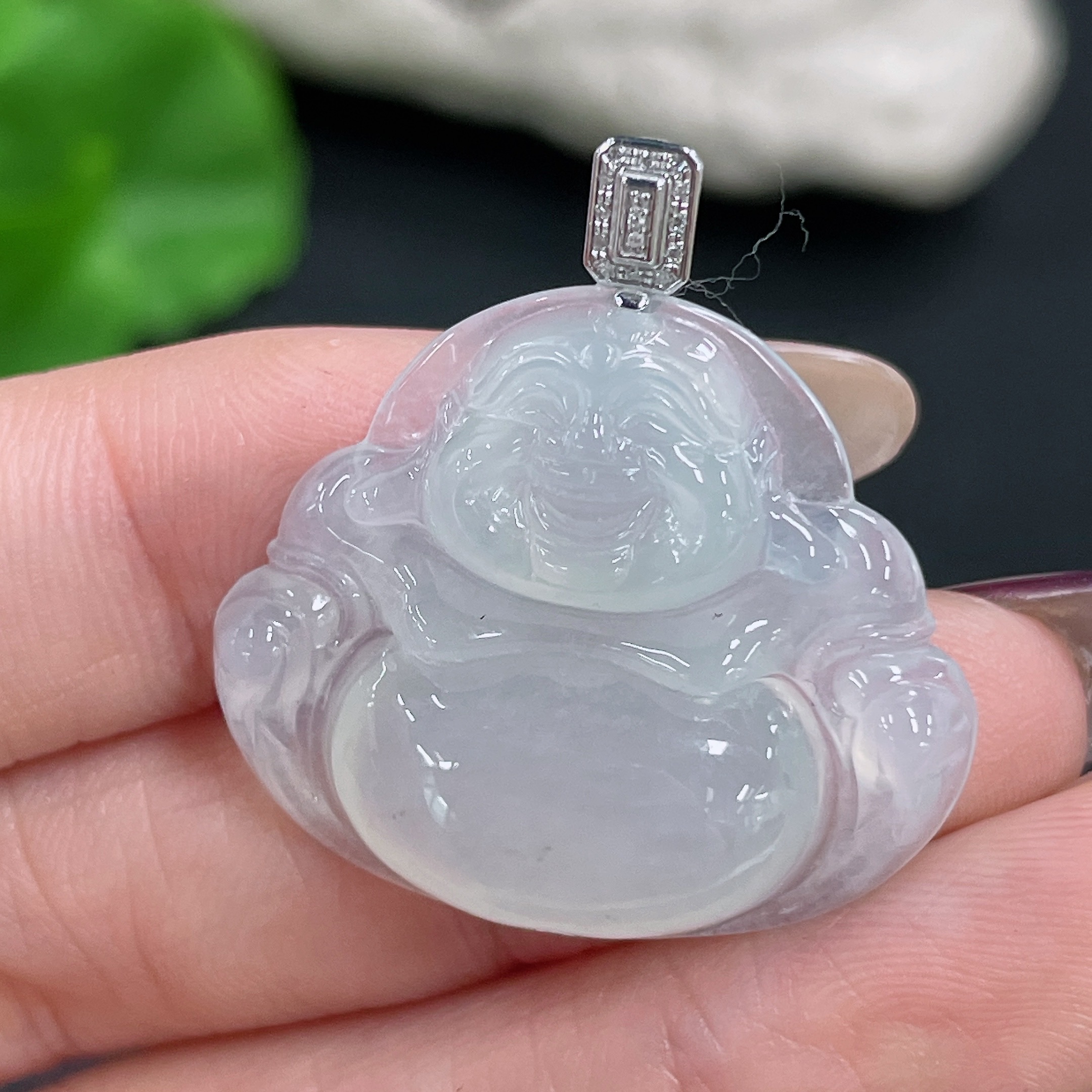 Jadeite Buddha Pendant with 18K Gold and Diamond Accents, Total Weight Approx. 5.86g