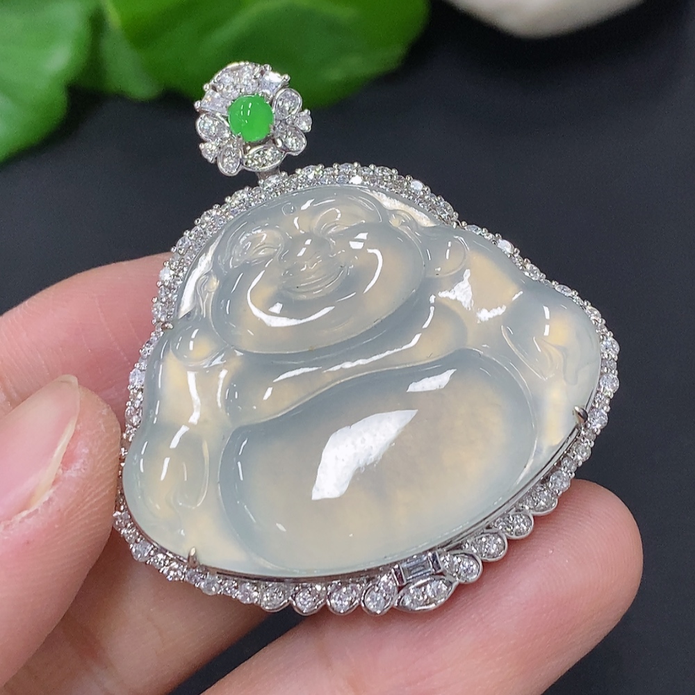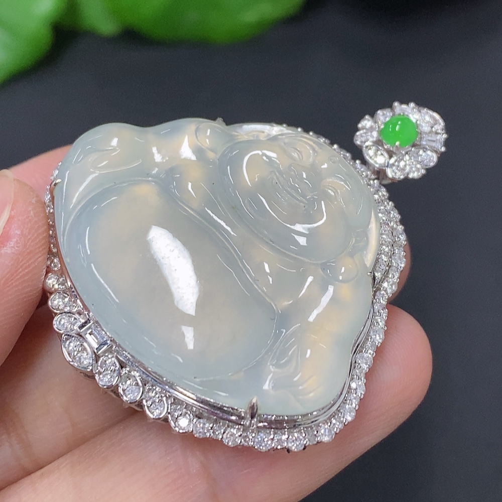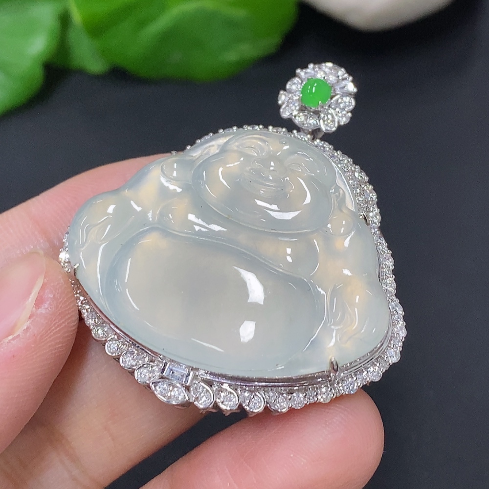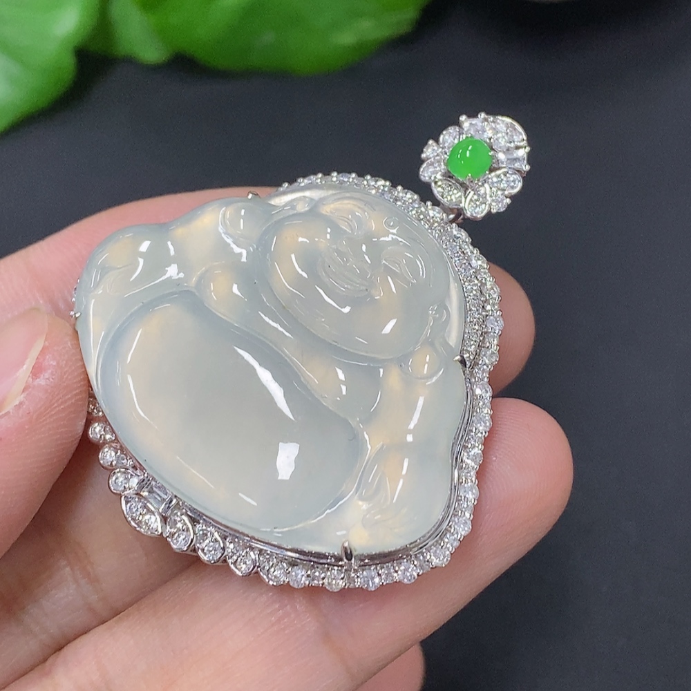 Jadeite Buddha Pendant Set in 18K Gold, Total Weight Approx. 18.2g (with Diamond Accents)