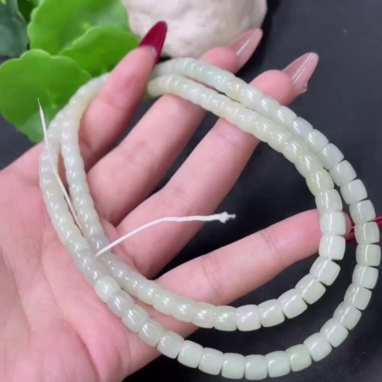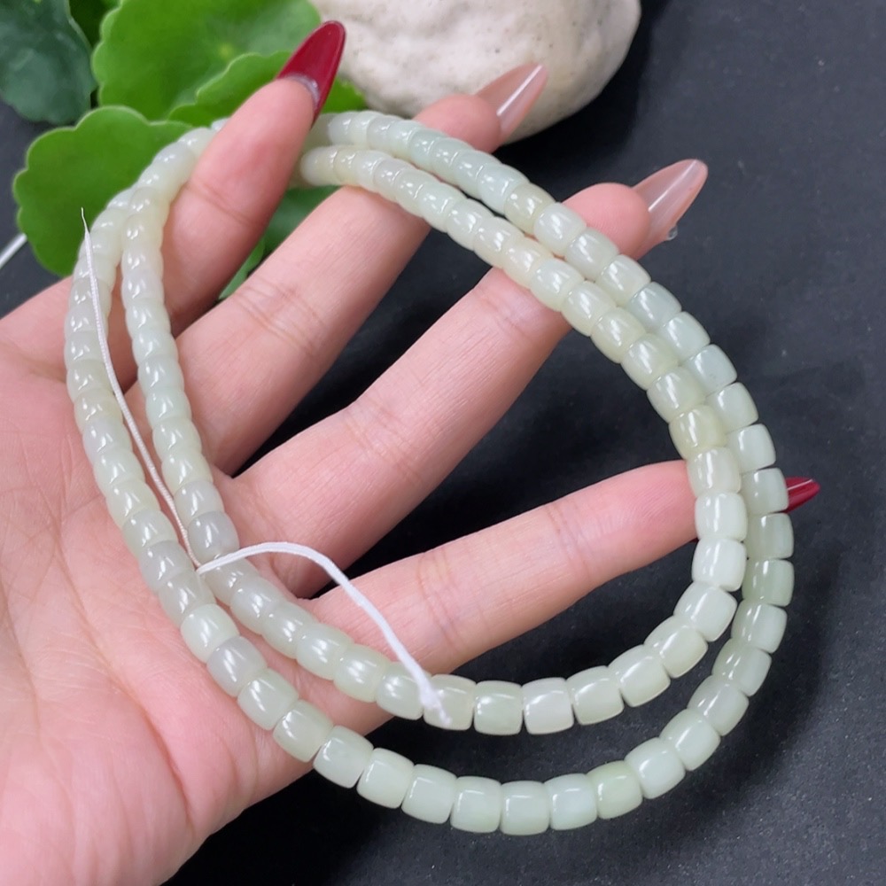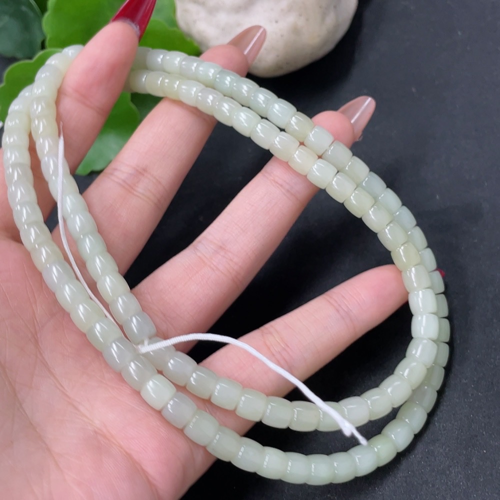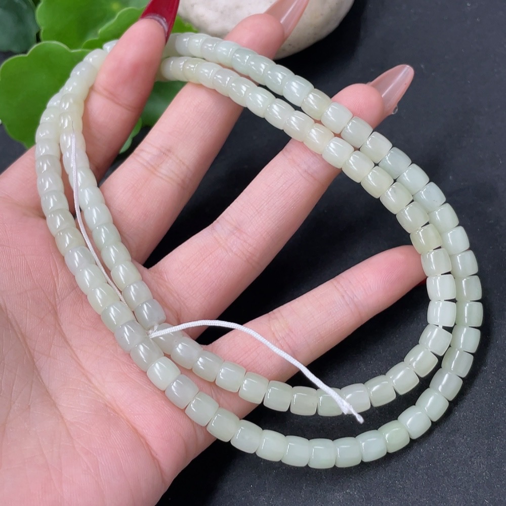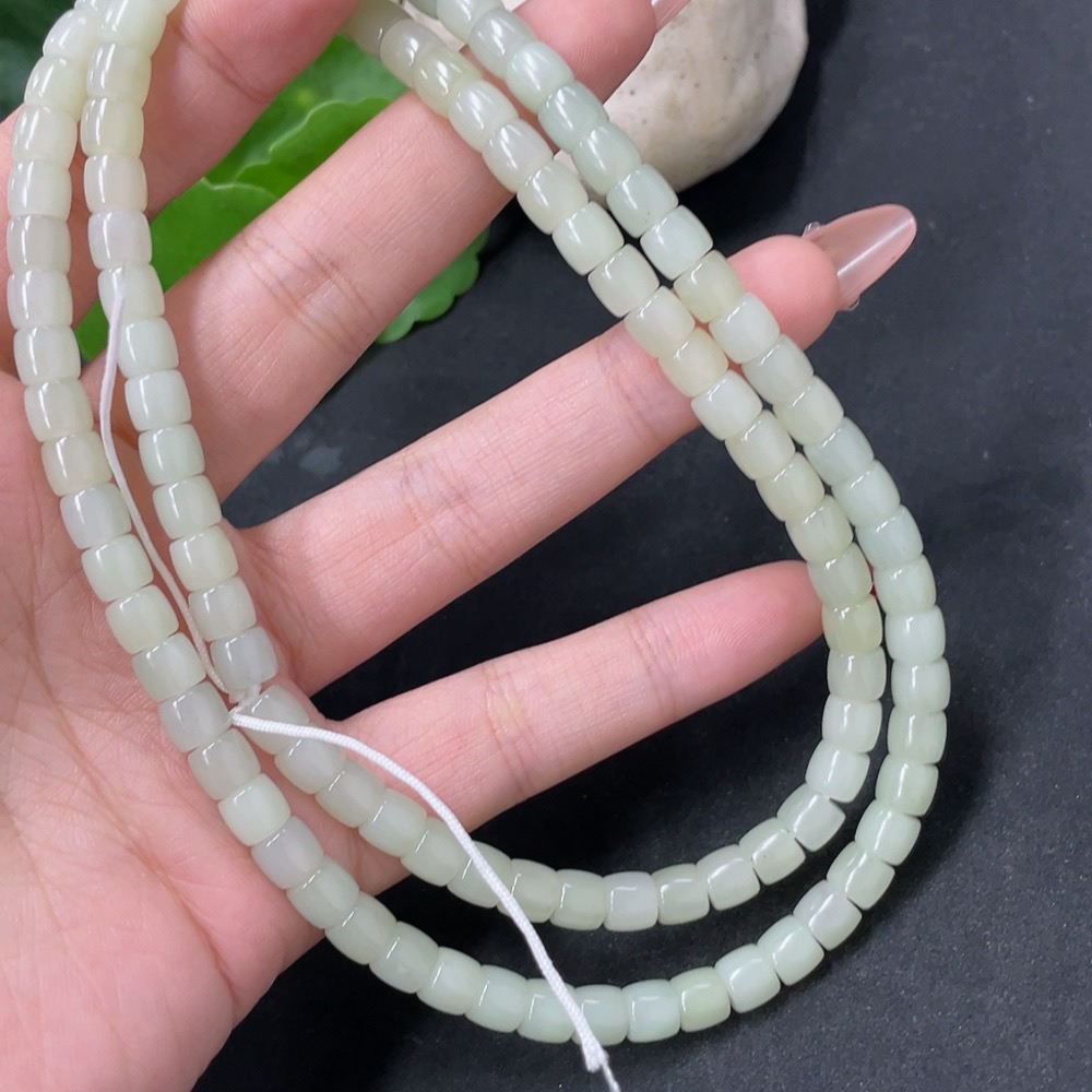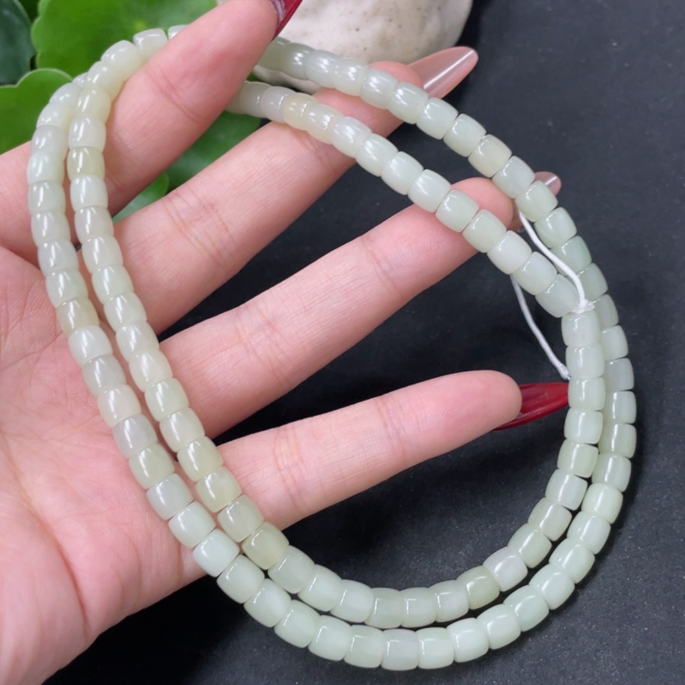 Hetian Jade Bead Necklace, Approx. 5.9mm, Total Weight Approx. 43g