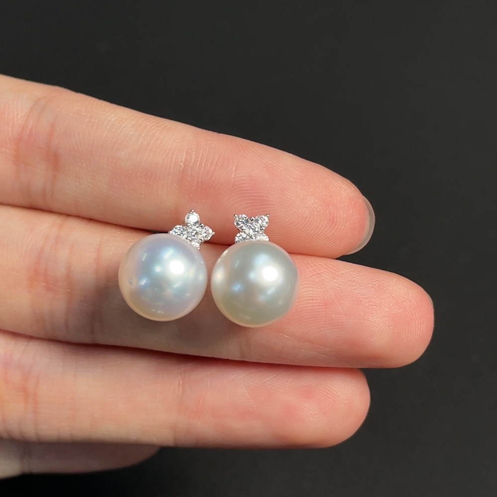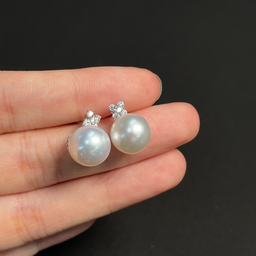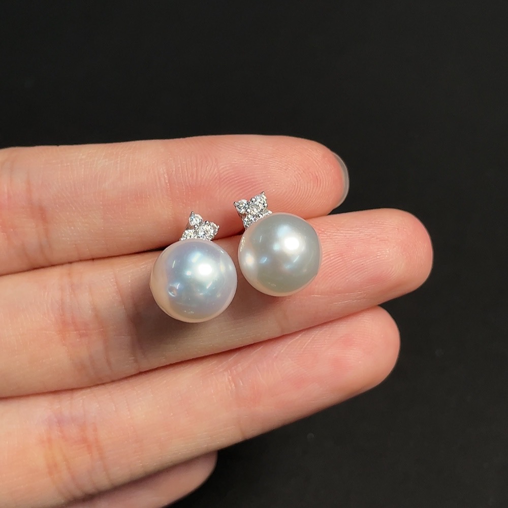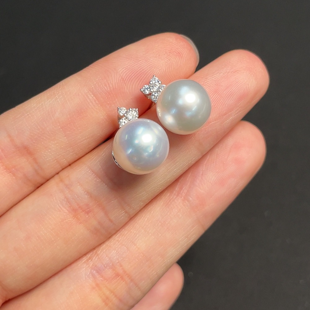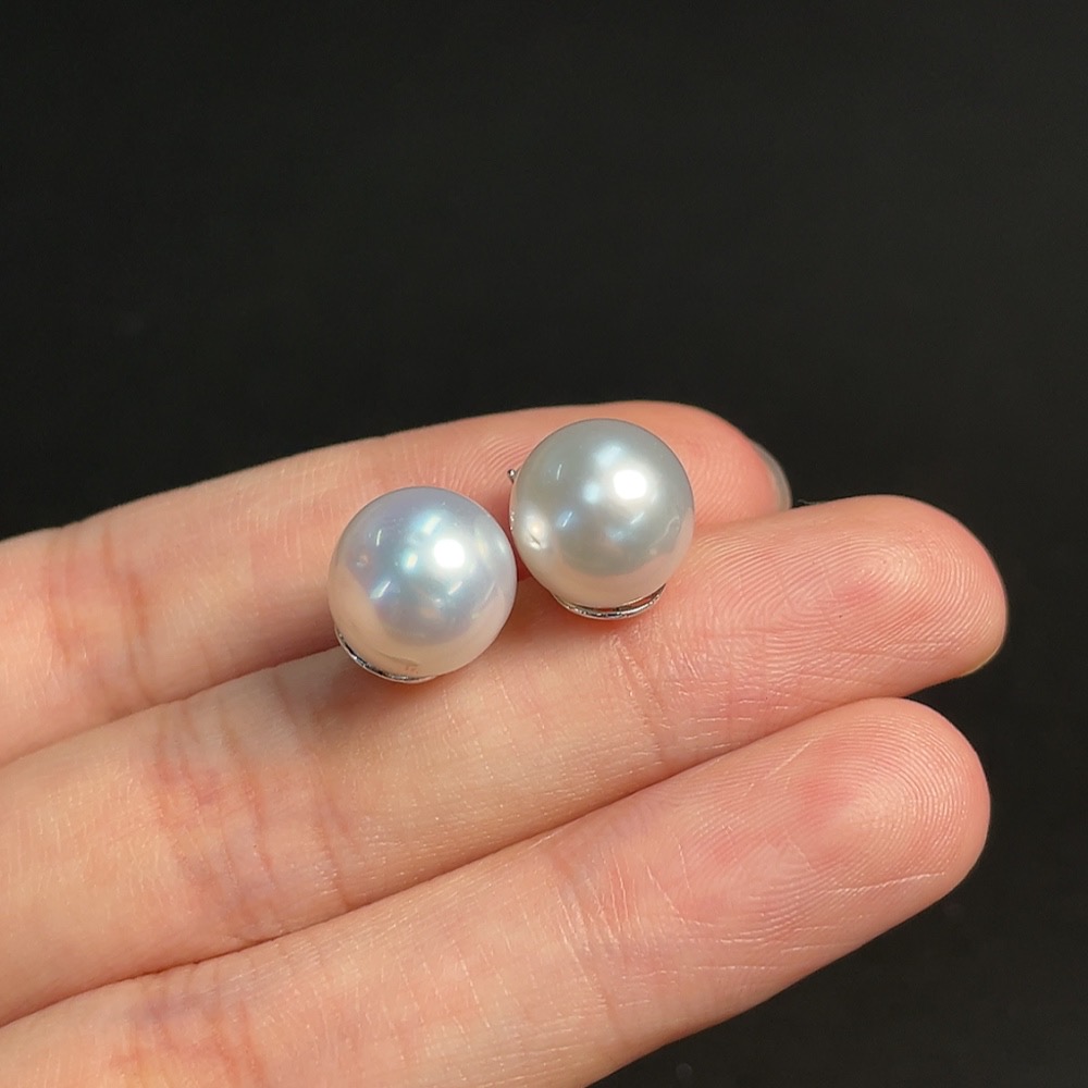 Seawater pearl stud earrings, non-gold setting, approximately 10.4mm, total weight about 4.34g