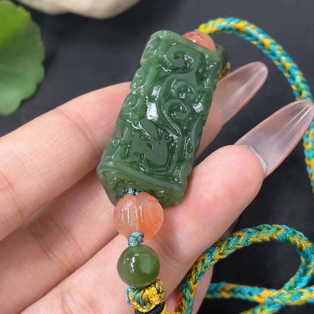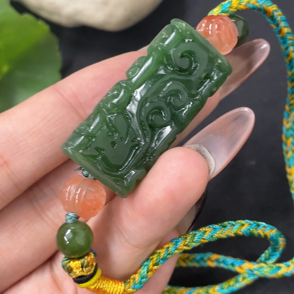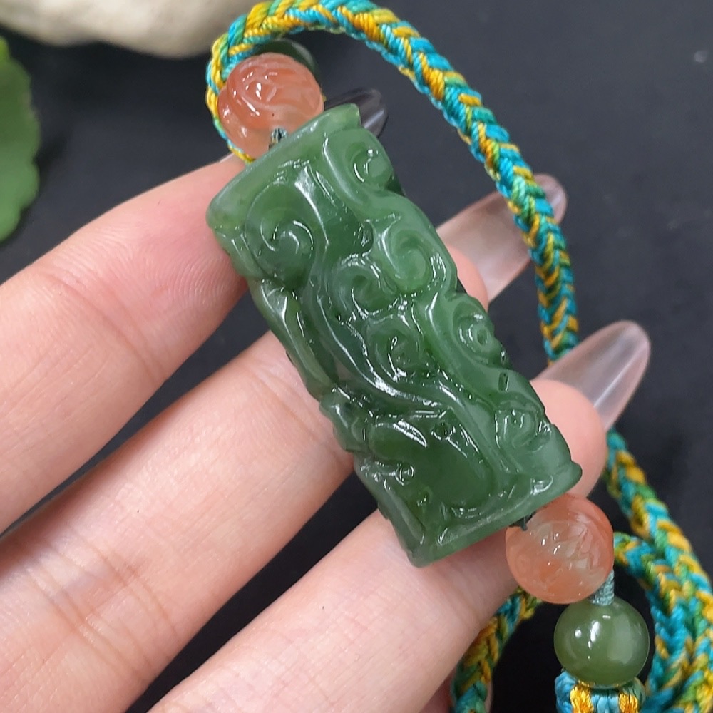 Hetian Jade Jasper Pendant Antique Style Total Weight Approx. (Including Rope) 23.6g