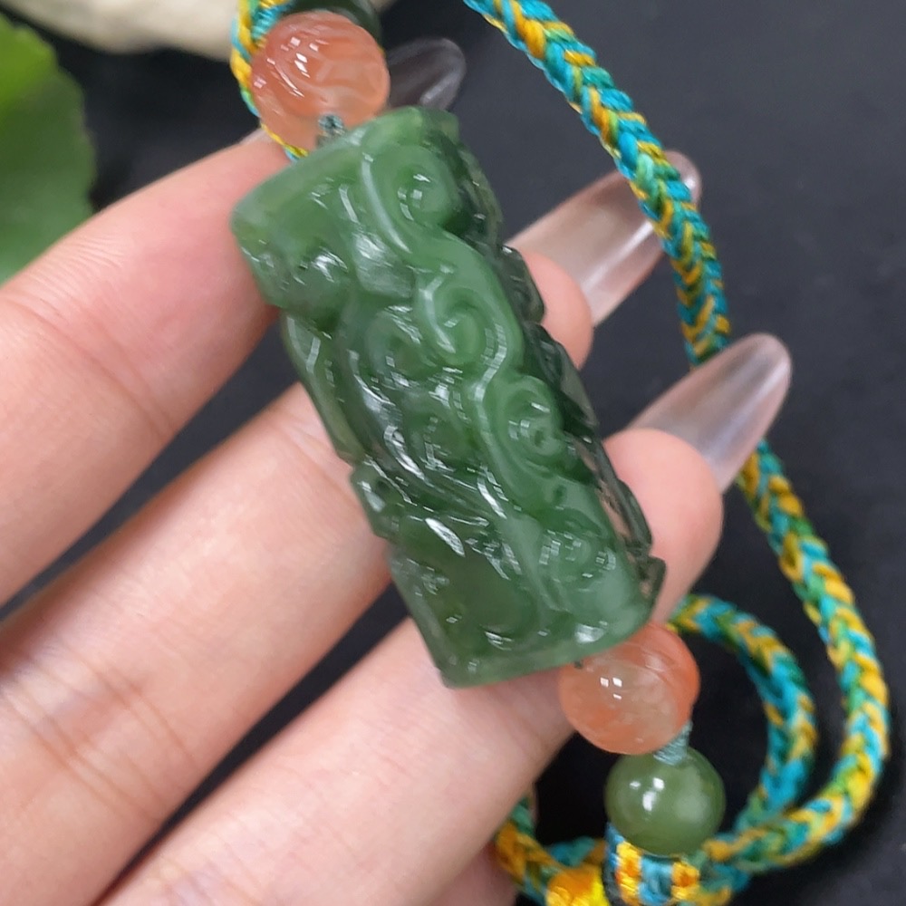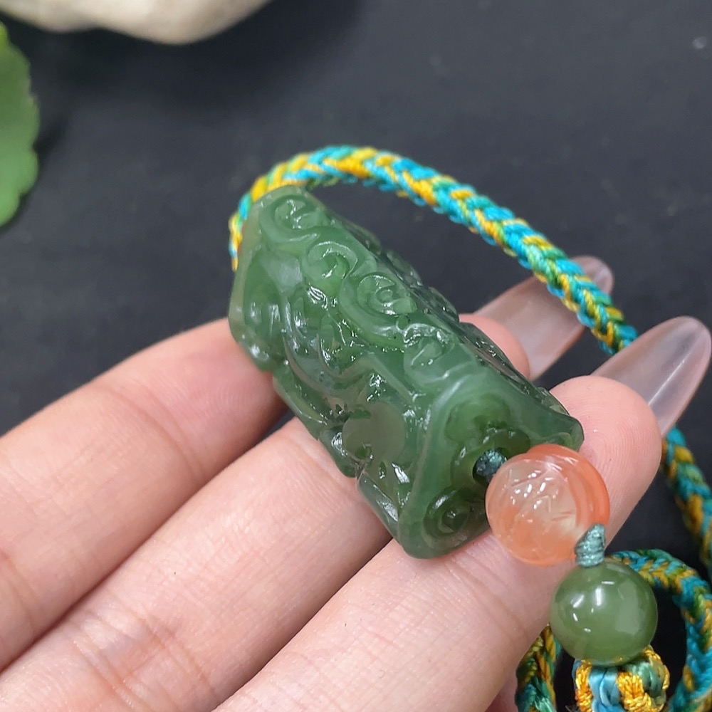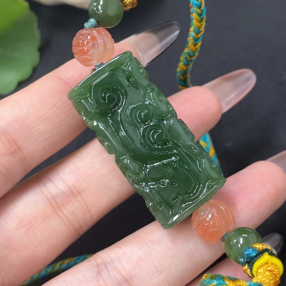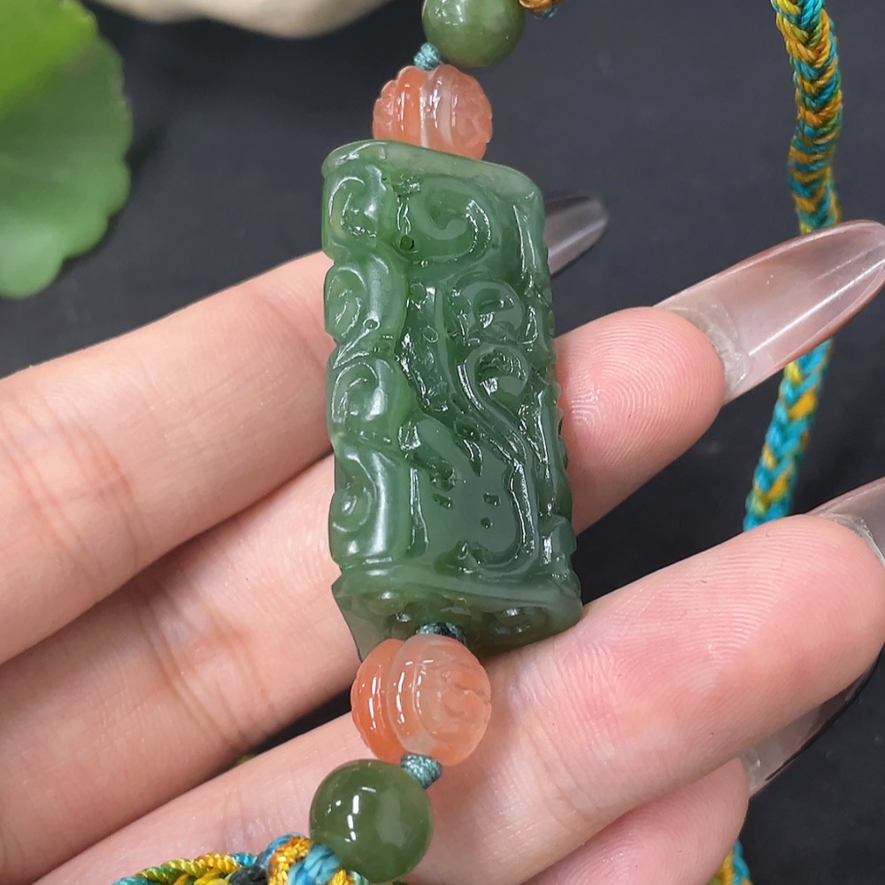 Hetian Jade Jasper Pendant Antique Style Total Weight Approx. (Including Rope) 23.6g