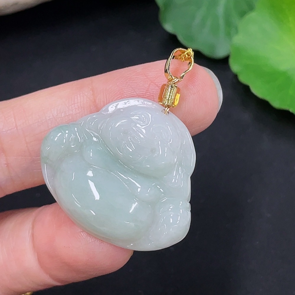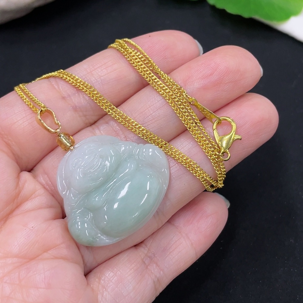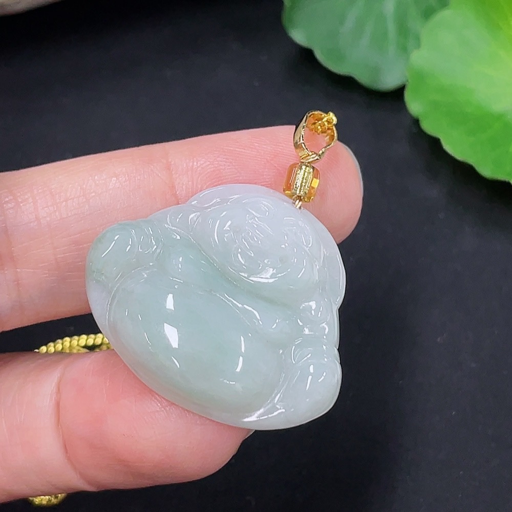 Jadeite Buddha Pendant Total Weight Approx. 9g (Beads Not Grade A) (Non-Gold Inlaid)