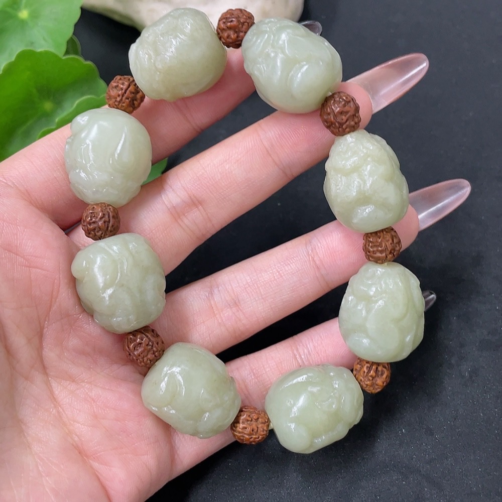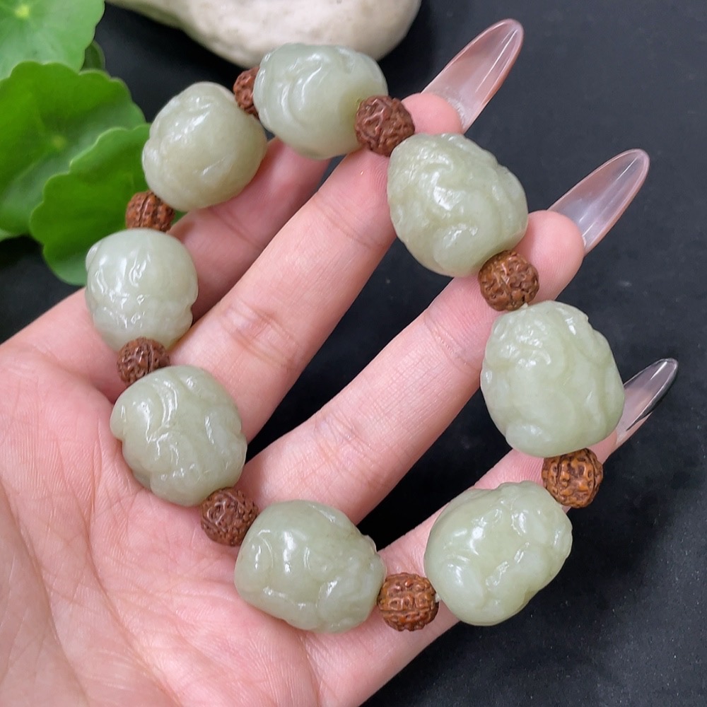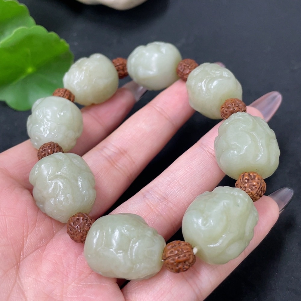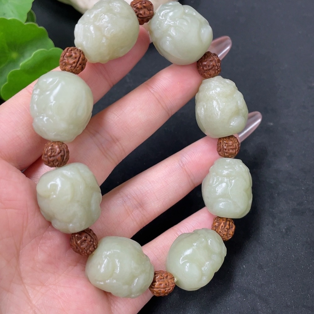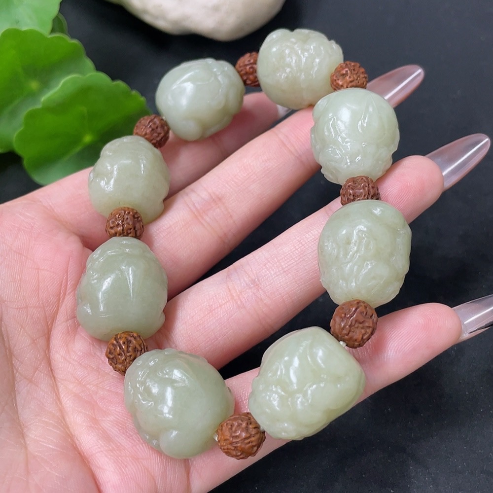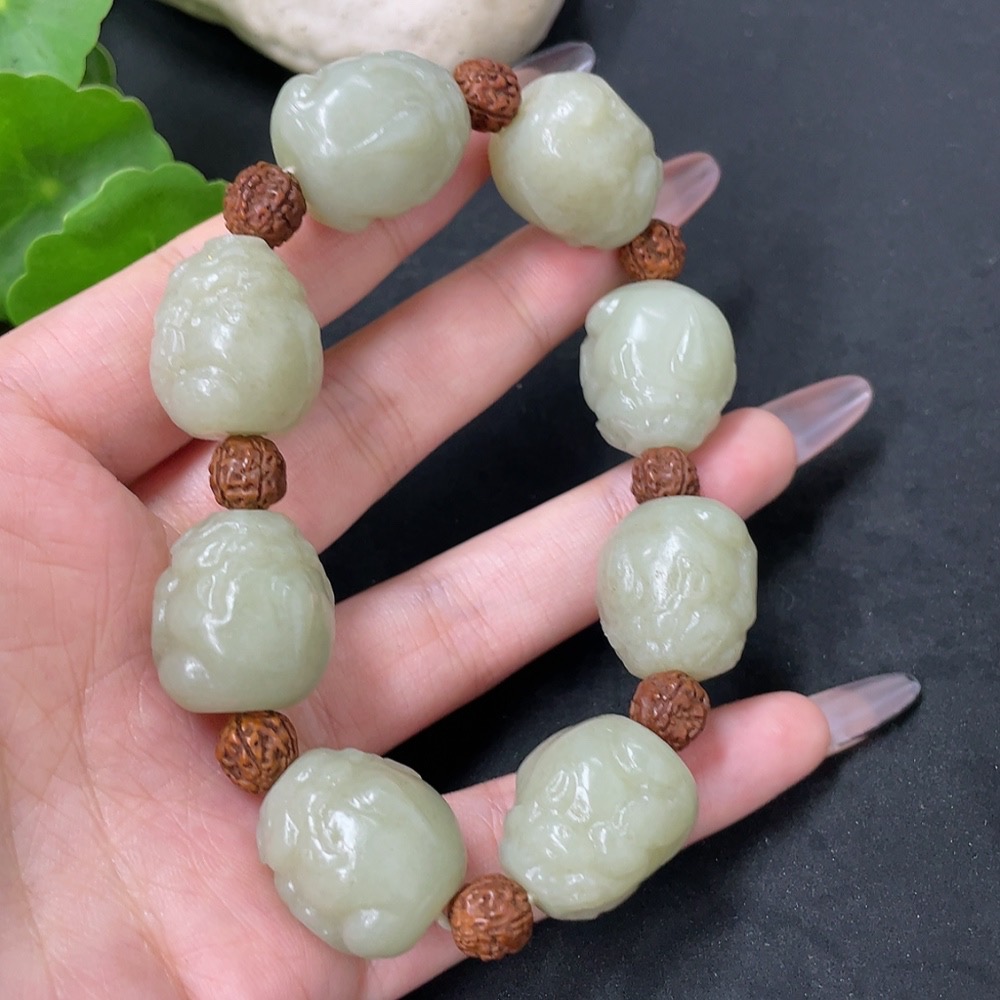 Hetian Jade Bracelet with Non-Hetian Jade Beads, Total Weight Approx. 84.9g