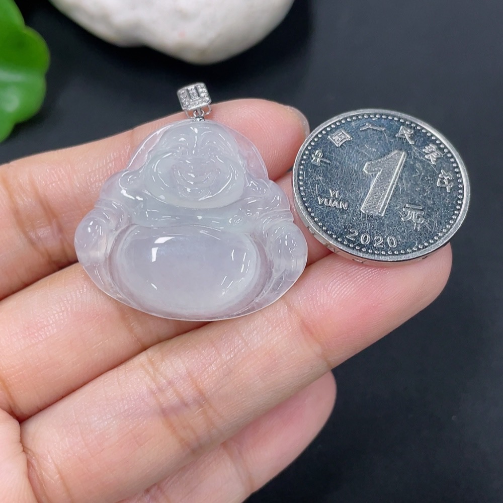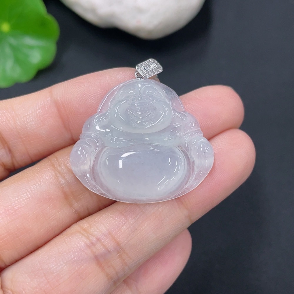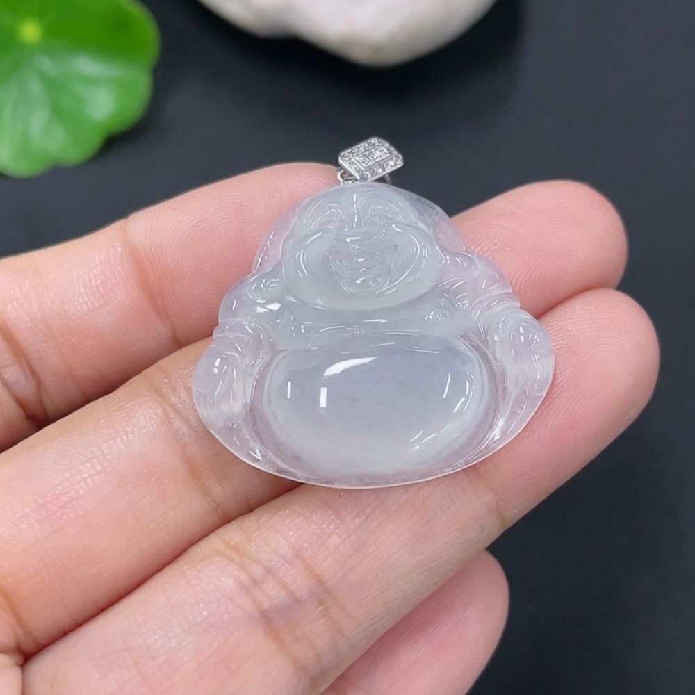 Jadeite Pendant Buddha with 18k Gold and Diamond Accents, Total Weight Approximately 5.64g