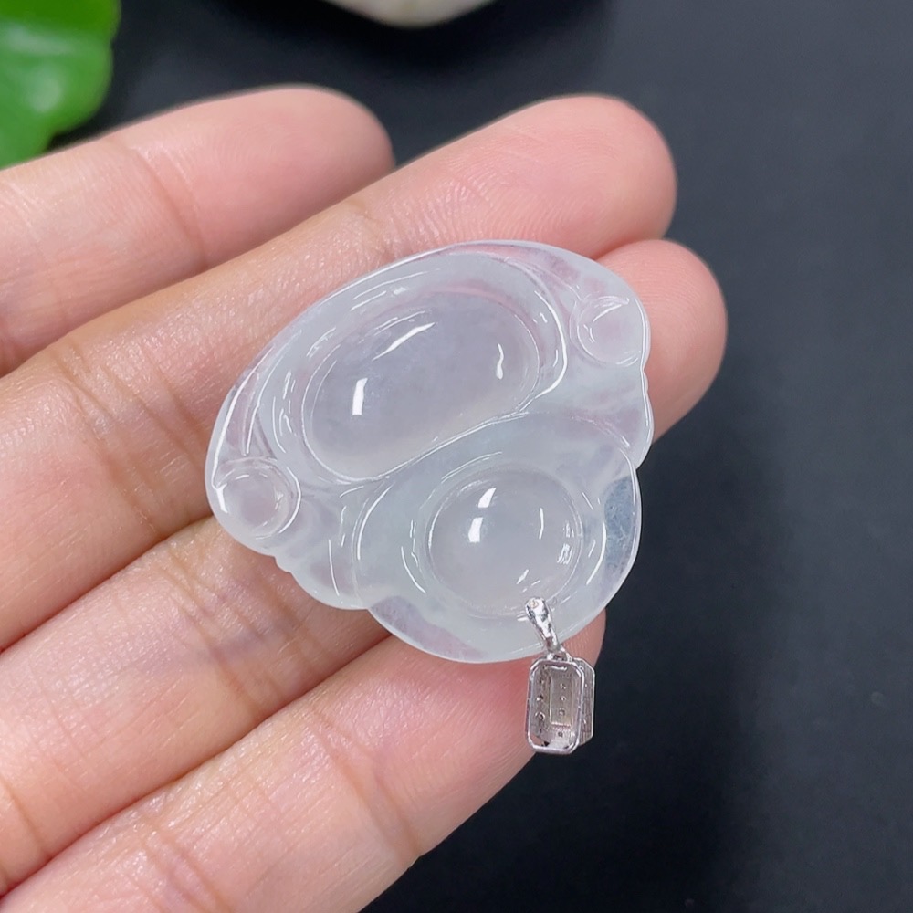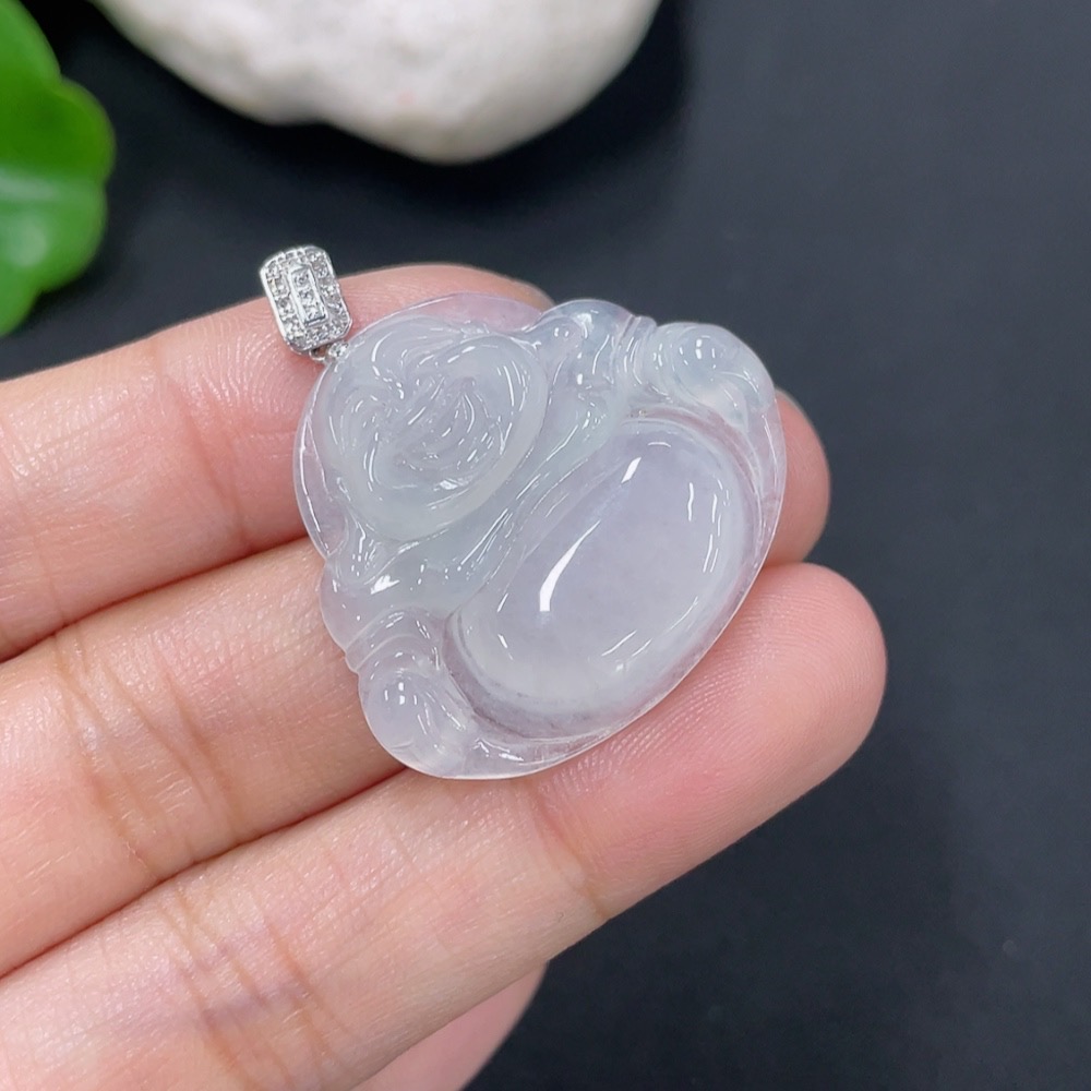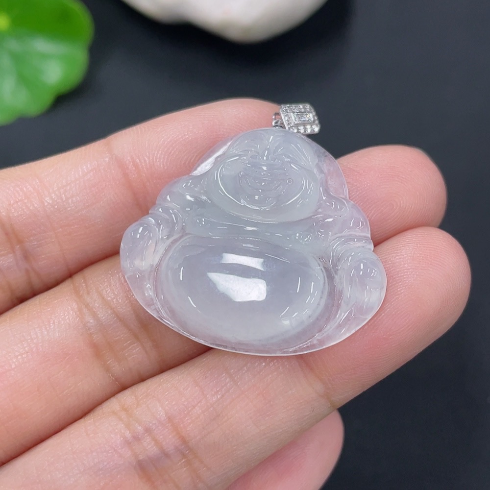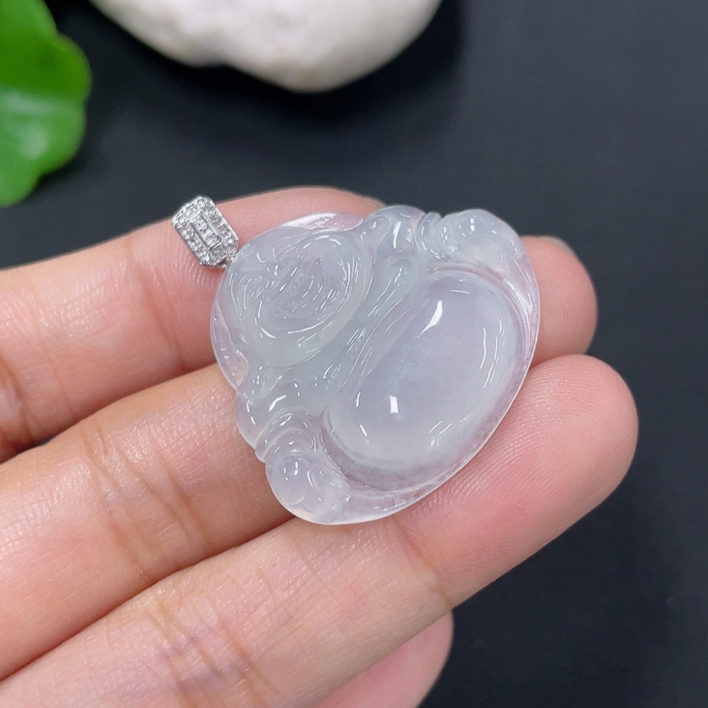 Jadeite Pendant Buddha with 18k Gold and Diamond Accents, Total Weight Approximately 5.64g