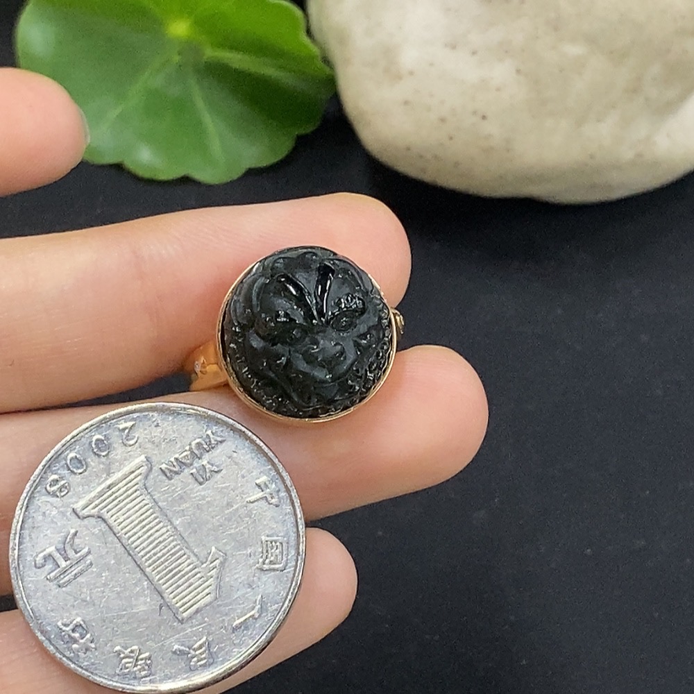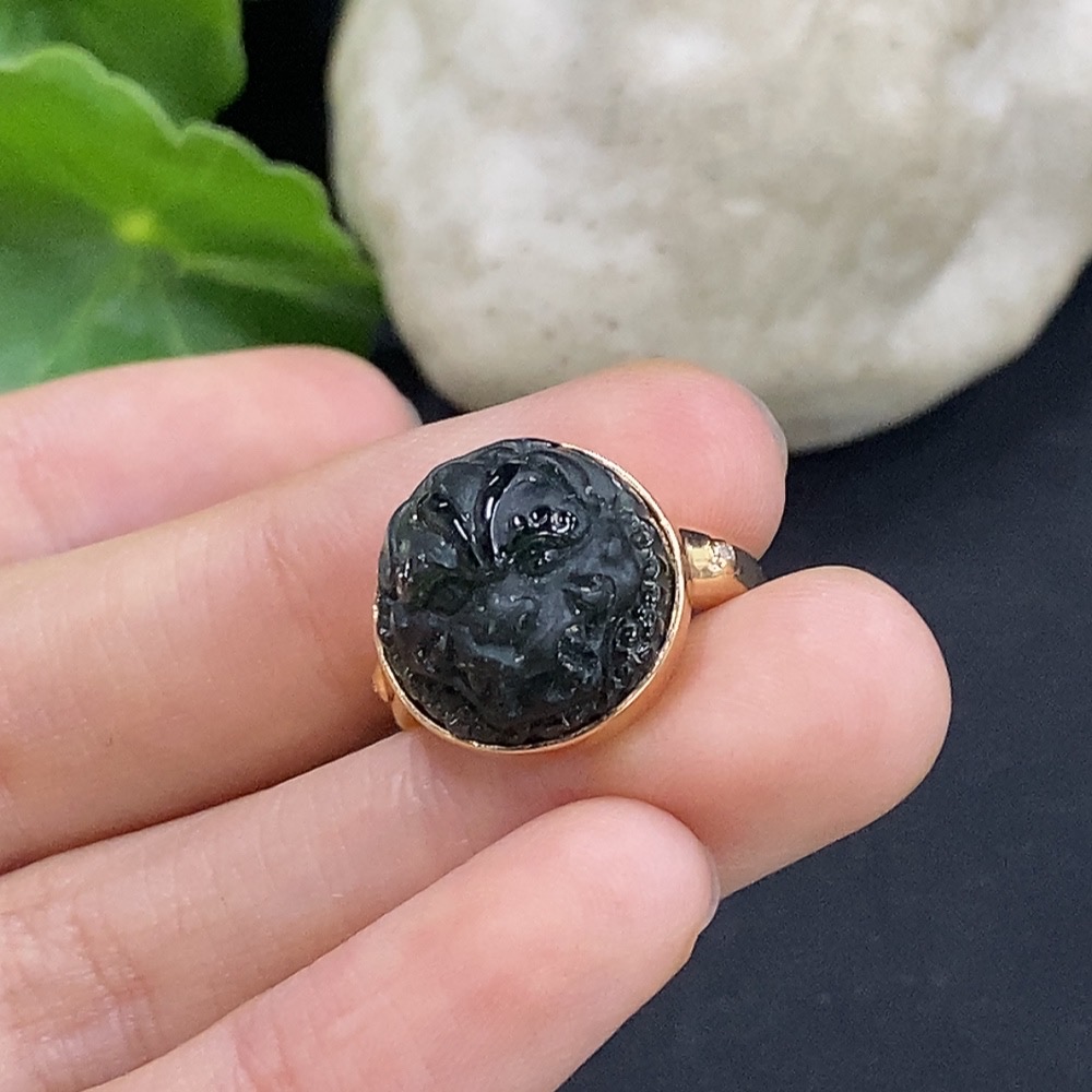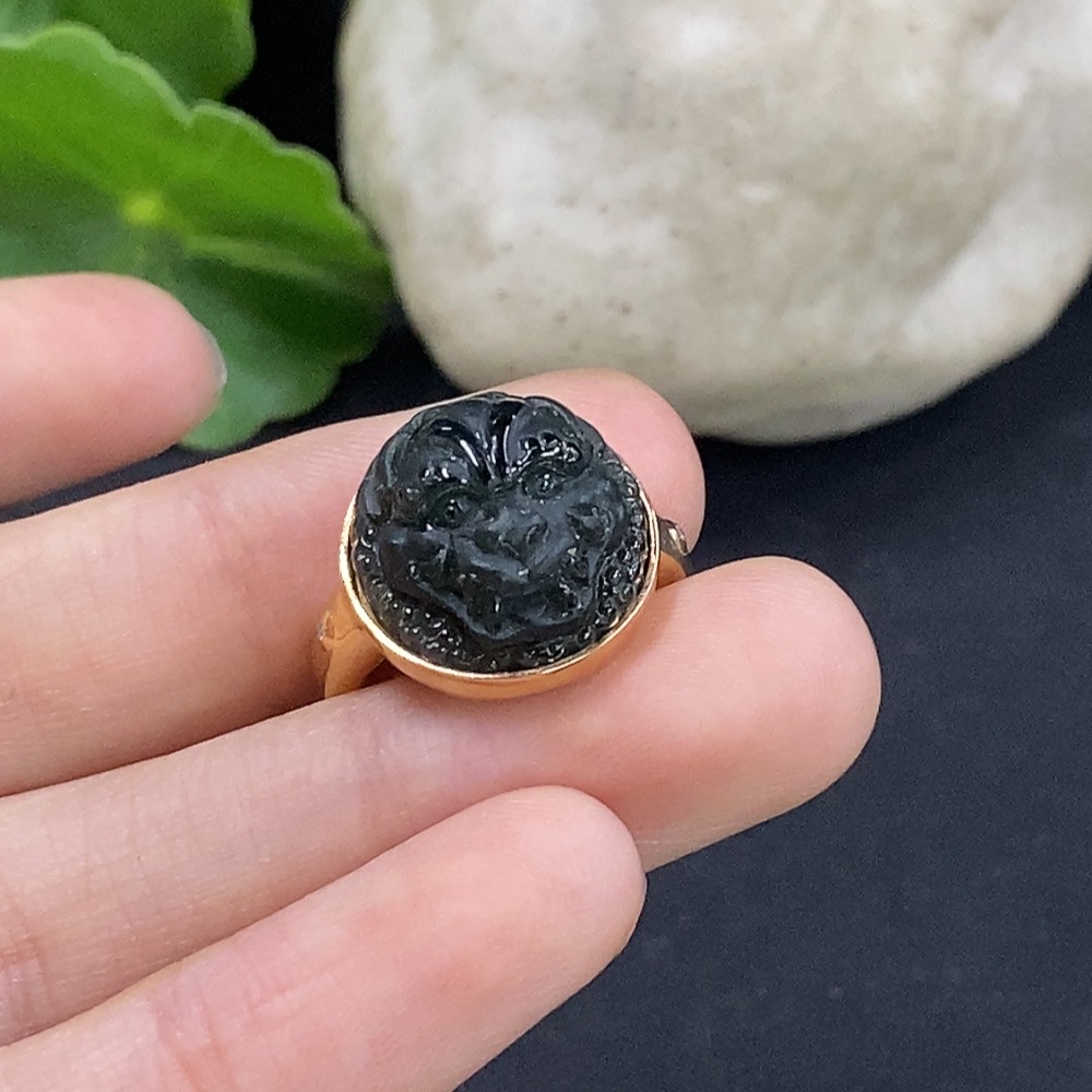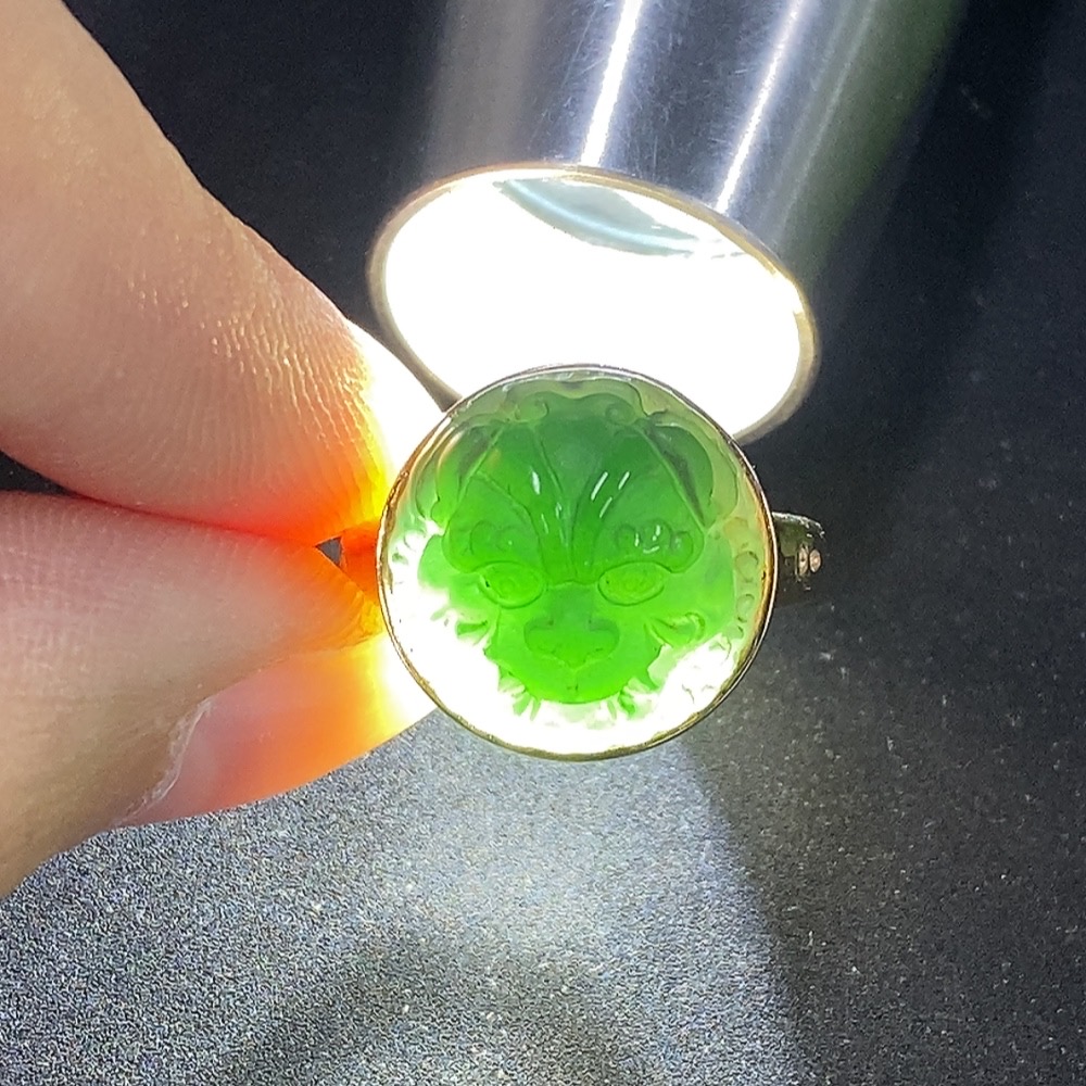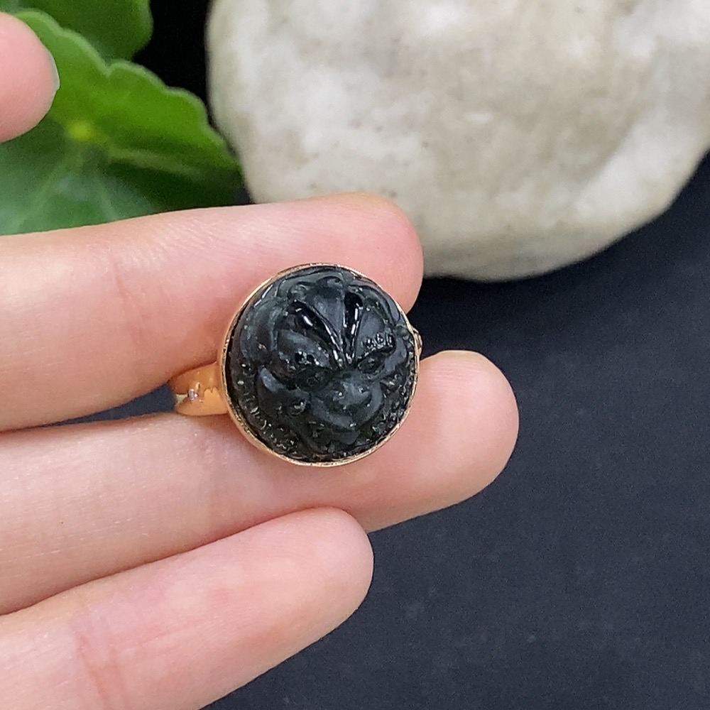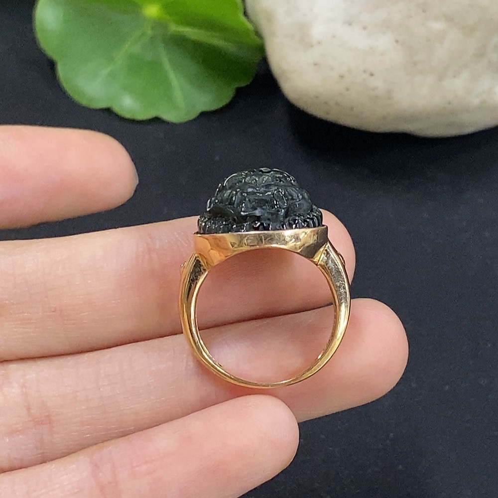 Jadeite inlaid ring 18K gold size 11 non-diamond (too small to determine natural origin) total weight approx. 5.07g