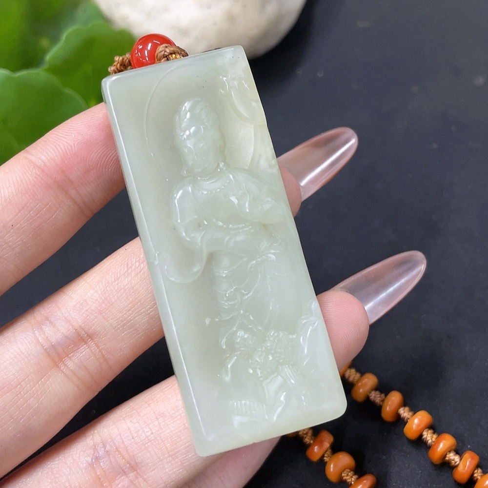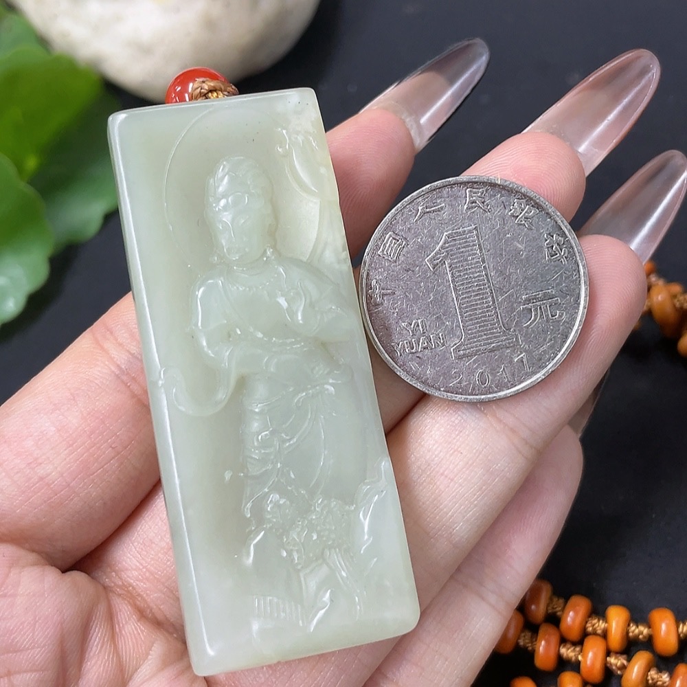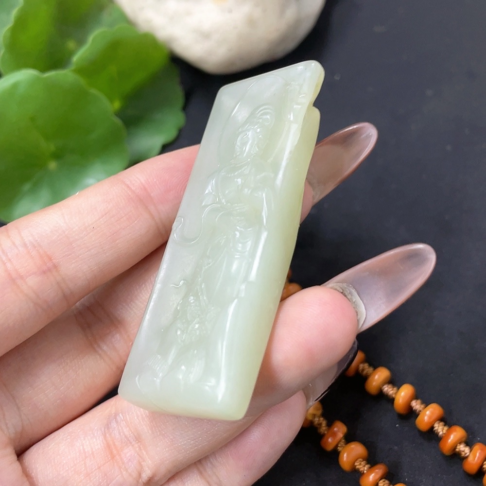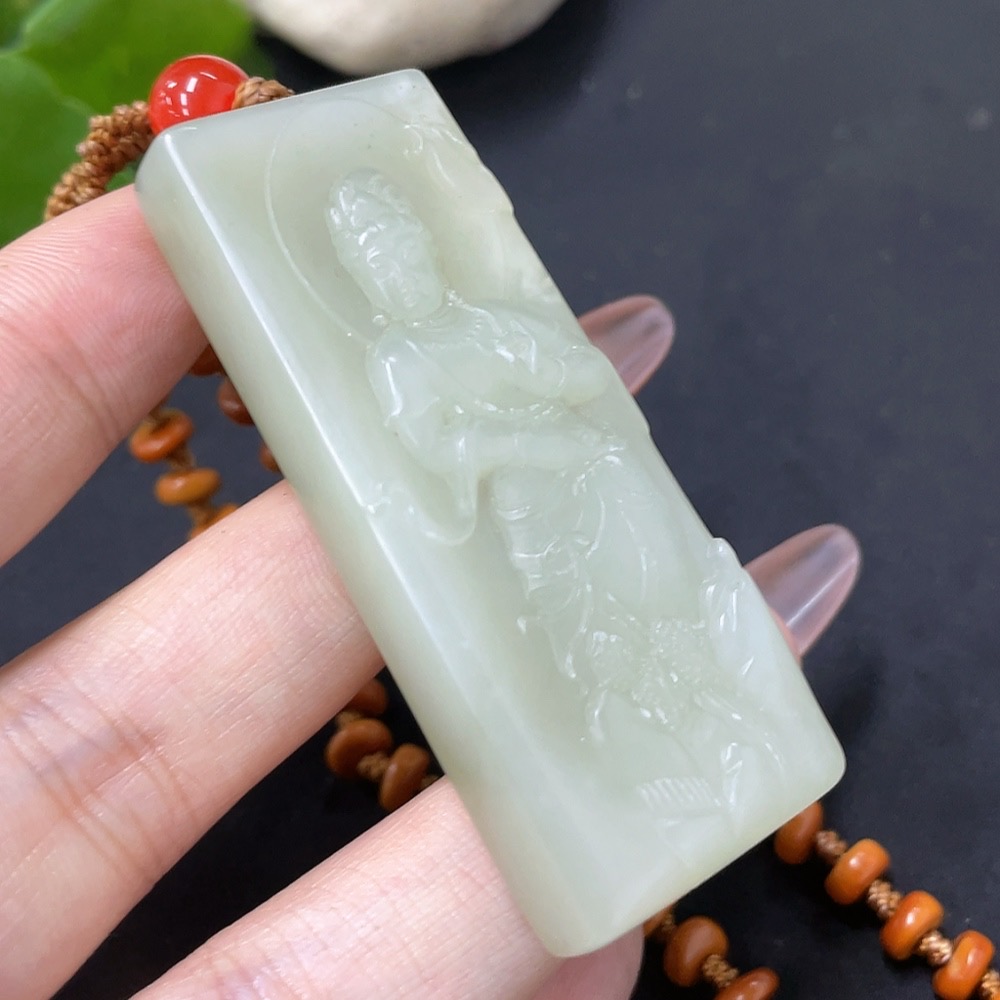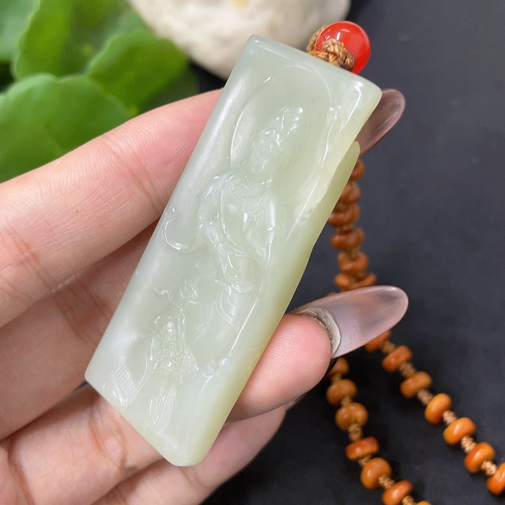 Hetian Jade Pendant Guanyin with Non-Hetian Jade Chain