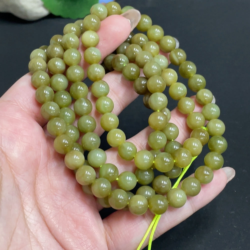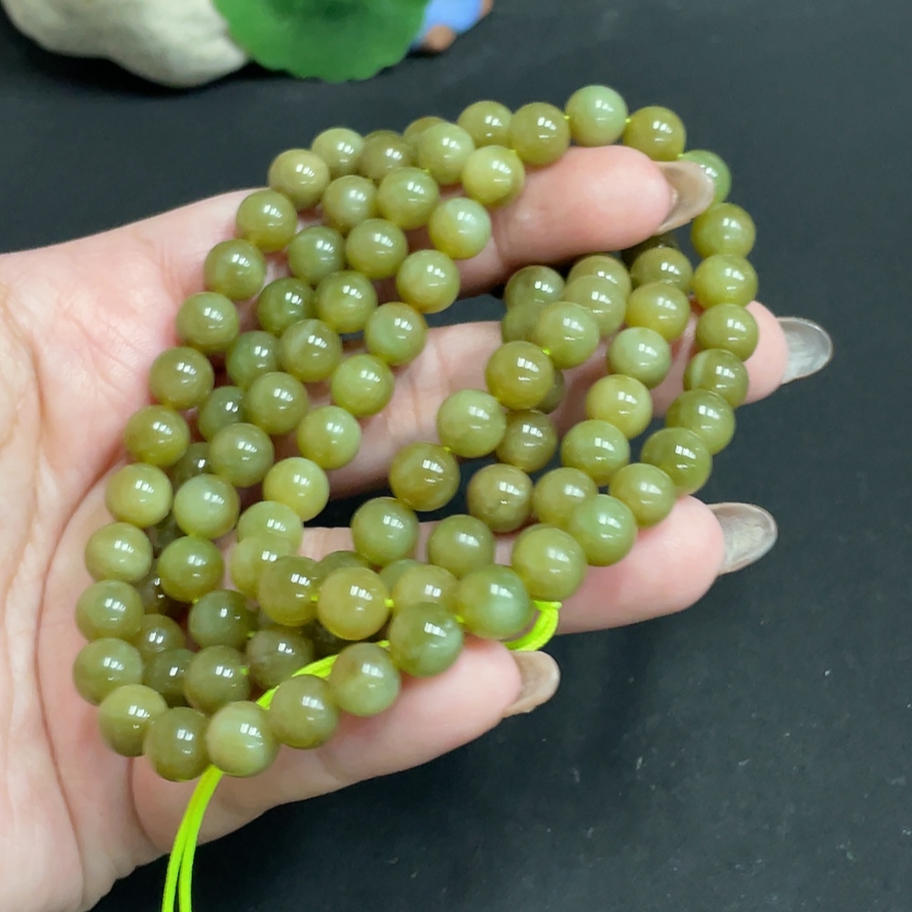 Hetian Jade Bead Necklace, approx. 7.6mm, total weight approx. 82g