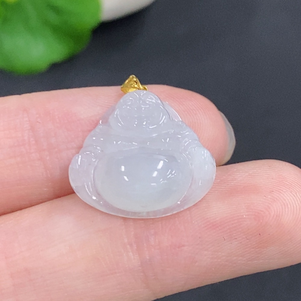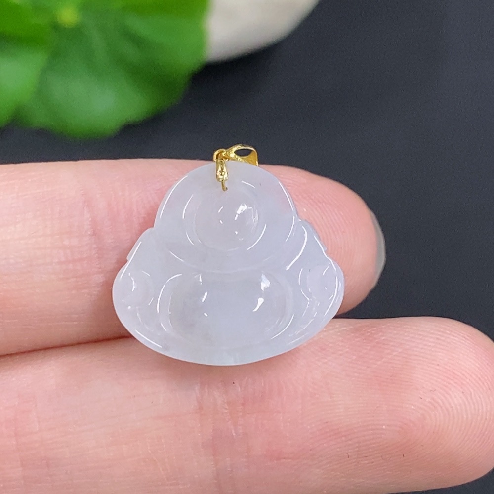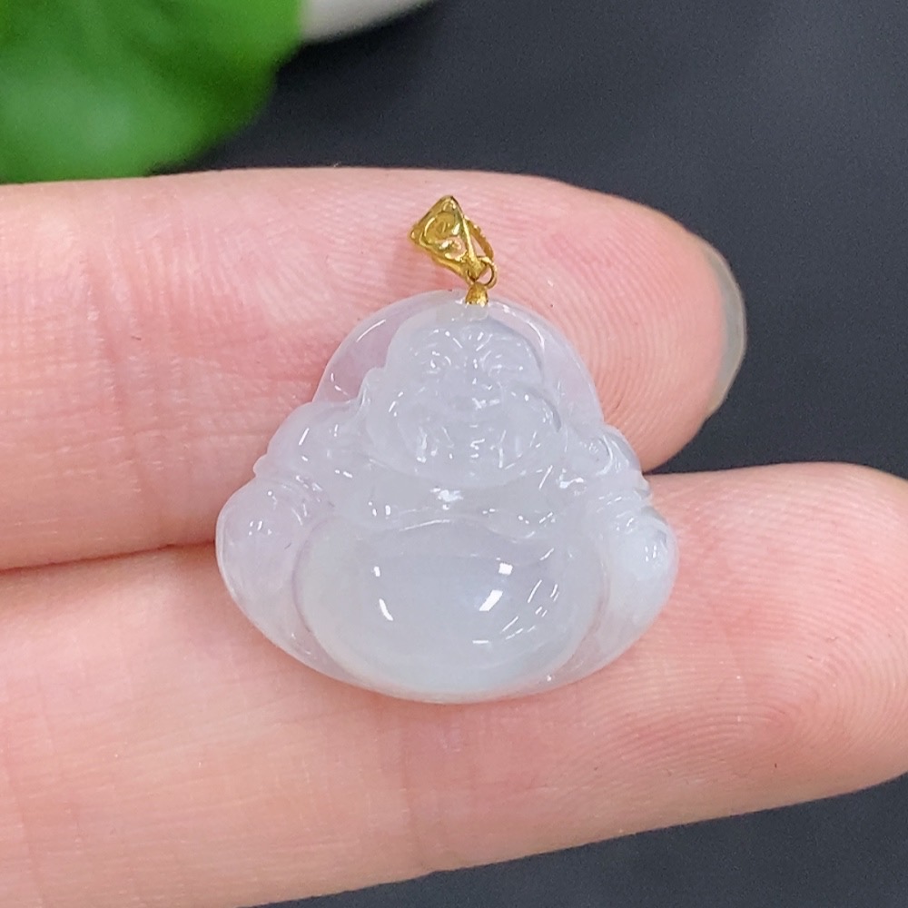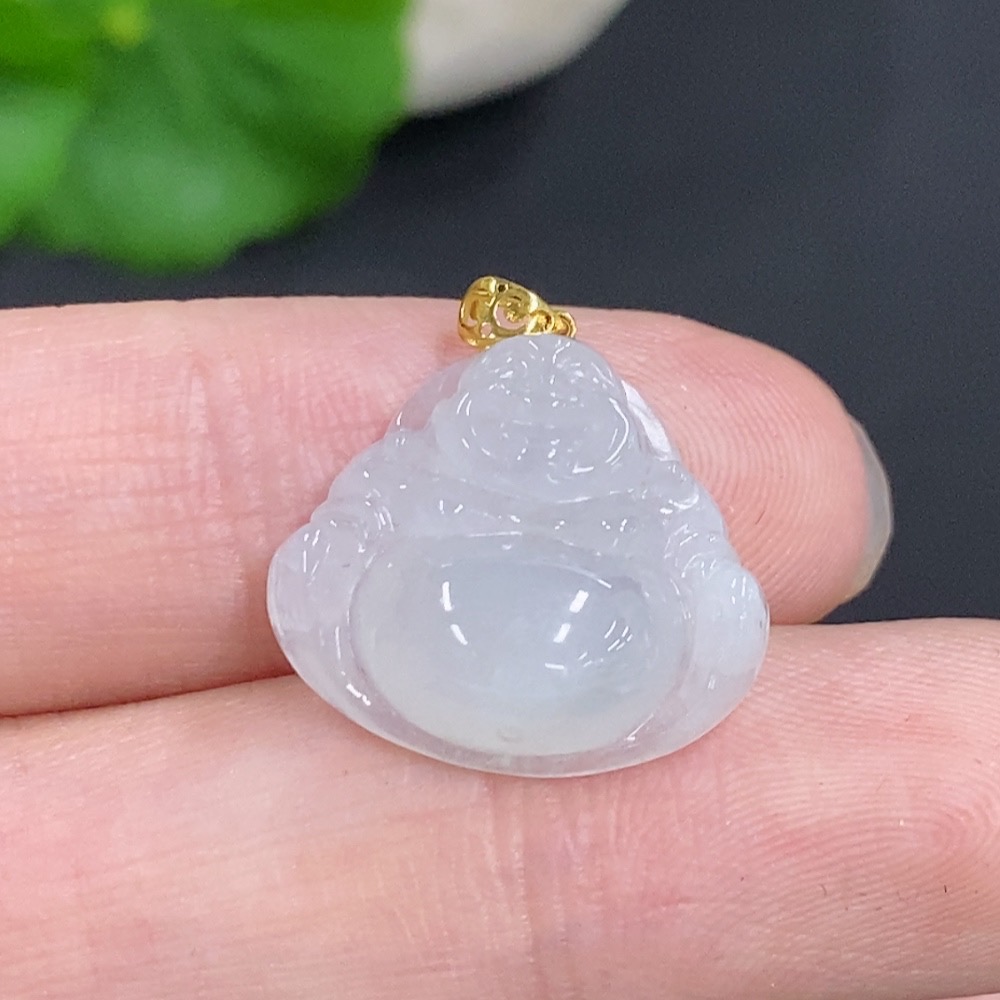 Jadeite Buddha Pendant with 18k Gold Clasp, Total Weight Approximately 2.80g