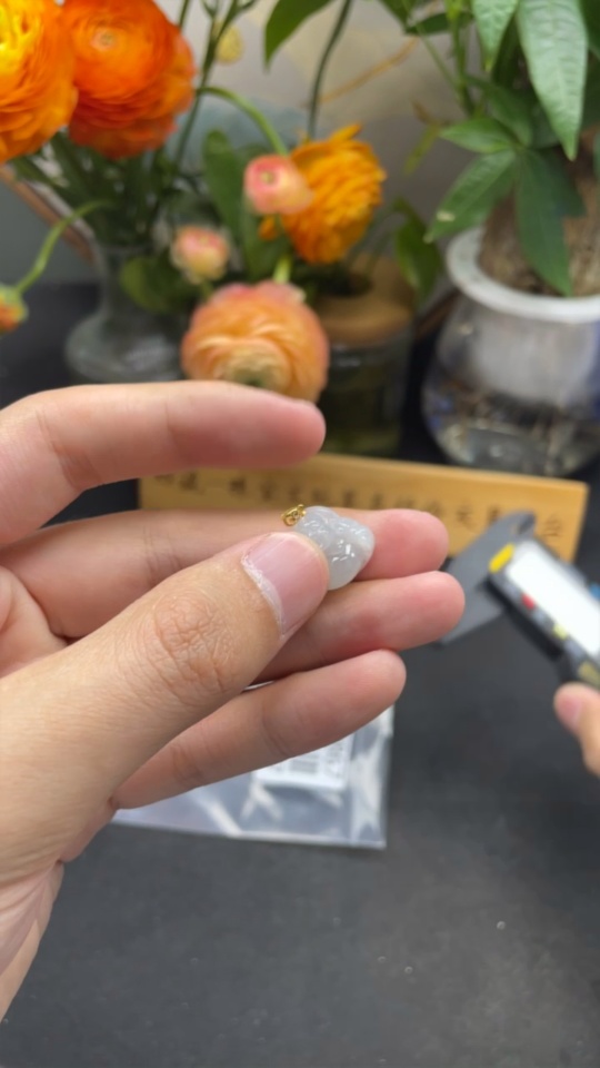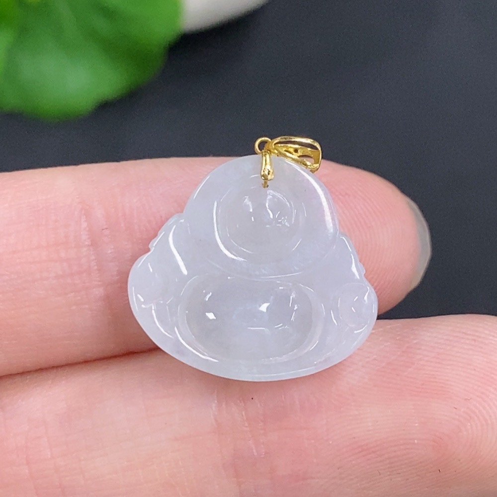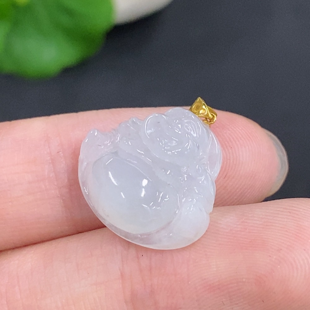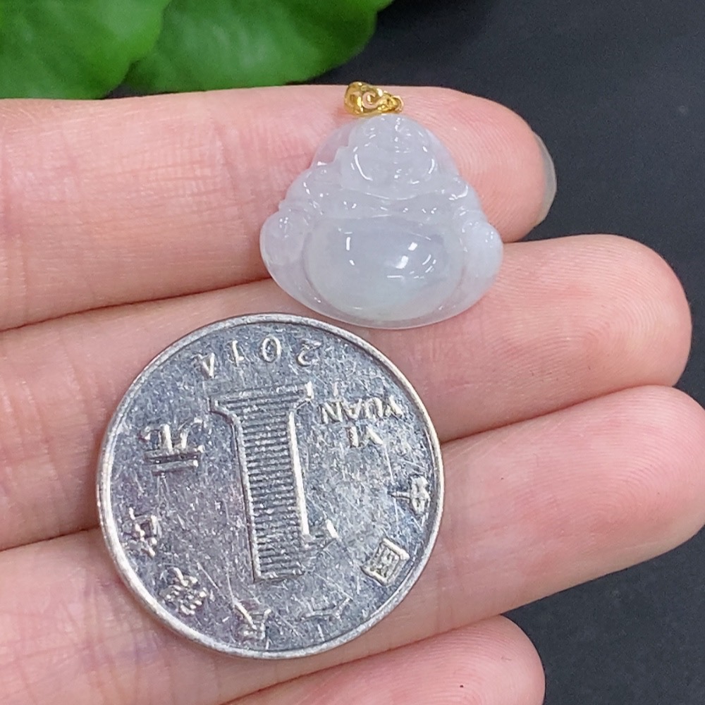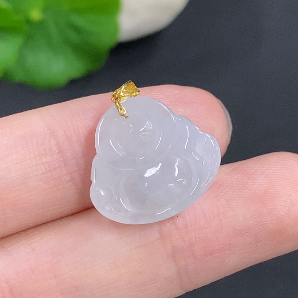 Jadeite Buddha Pendant with 18k Gold Clasp, Total Weight Approximately 2.80g