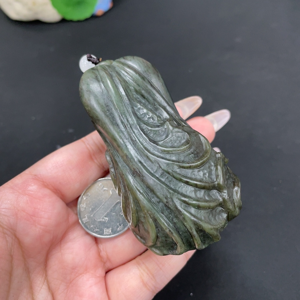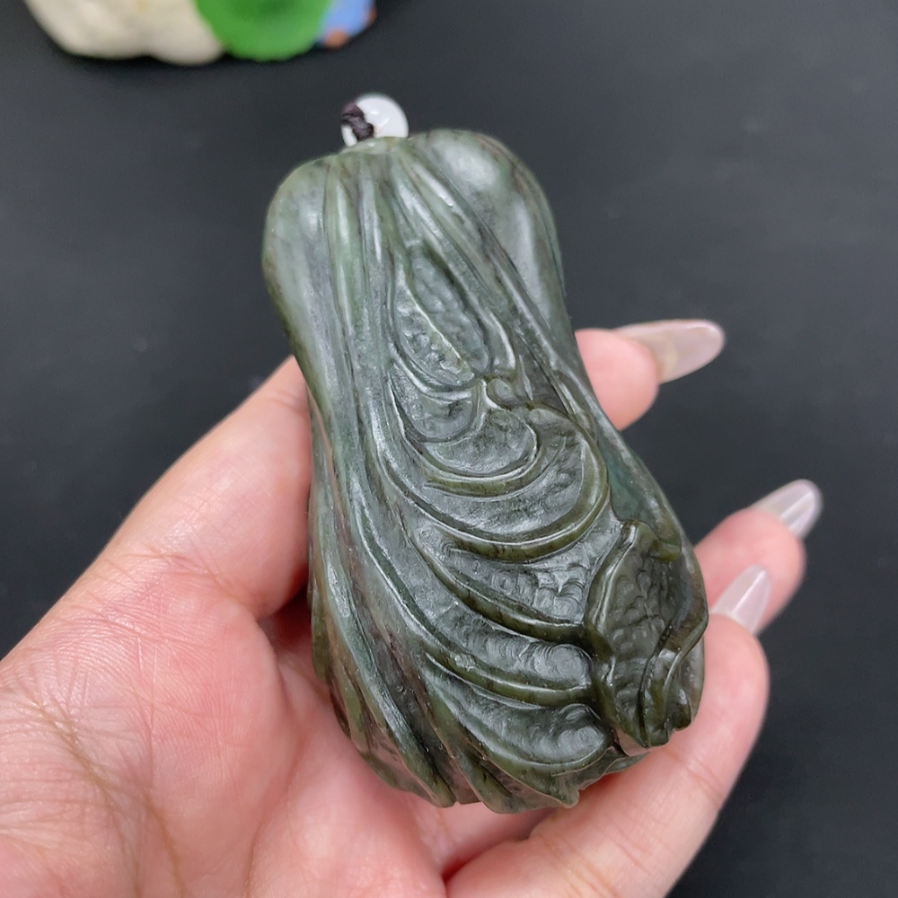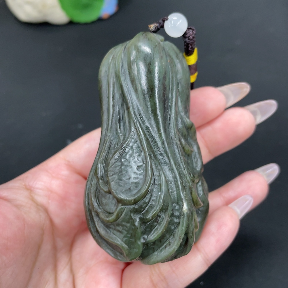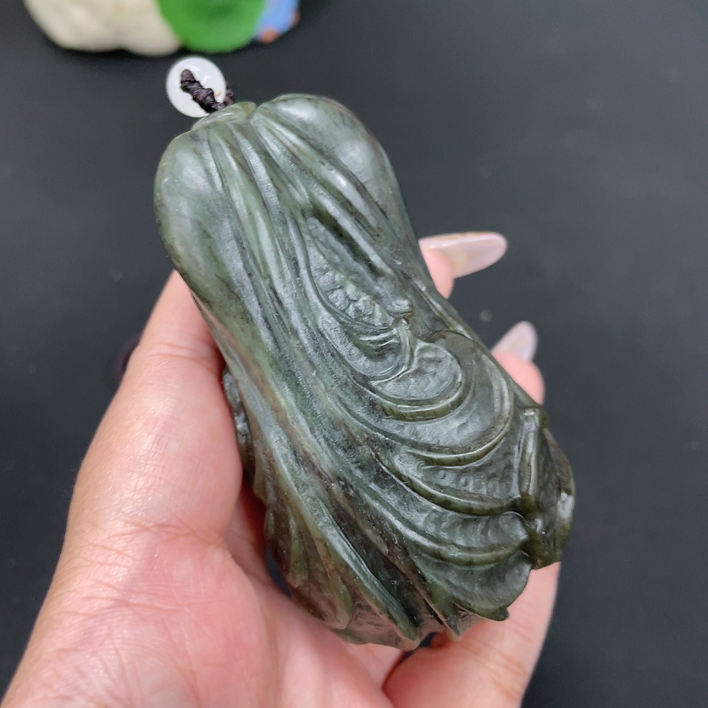 Hetian Jade Handheld Carving Cabbage Total Weight Approx. [with rope] 203.6g Beads Not Hetian Jade