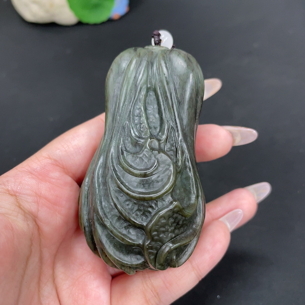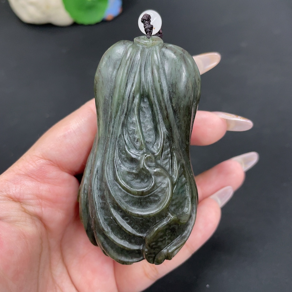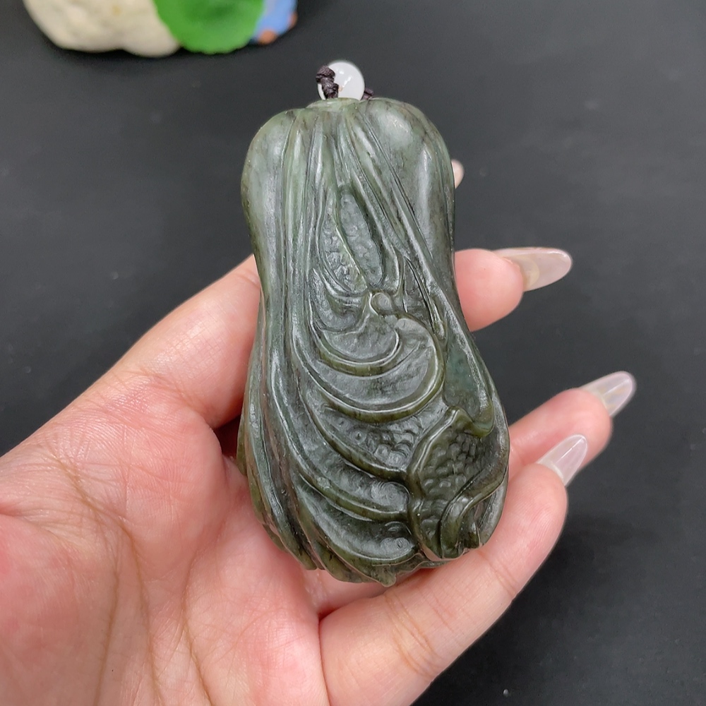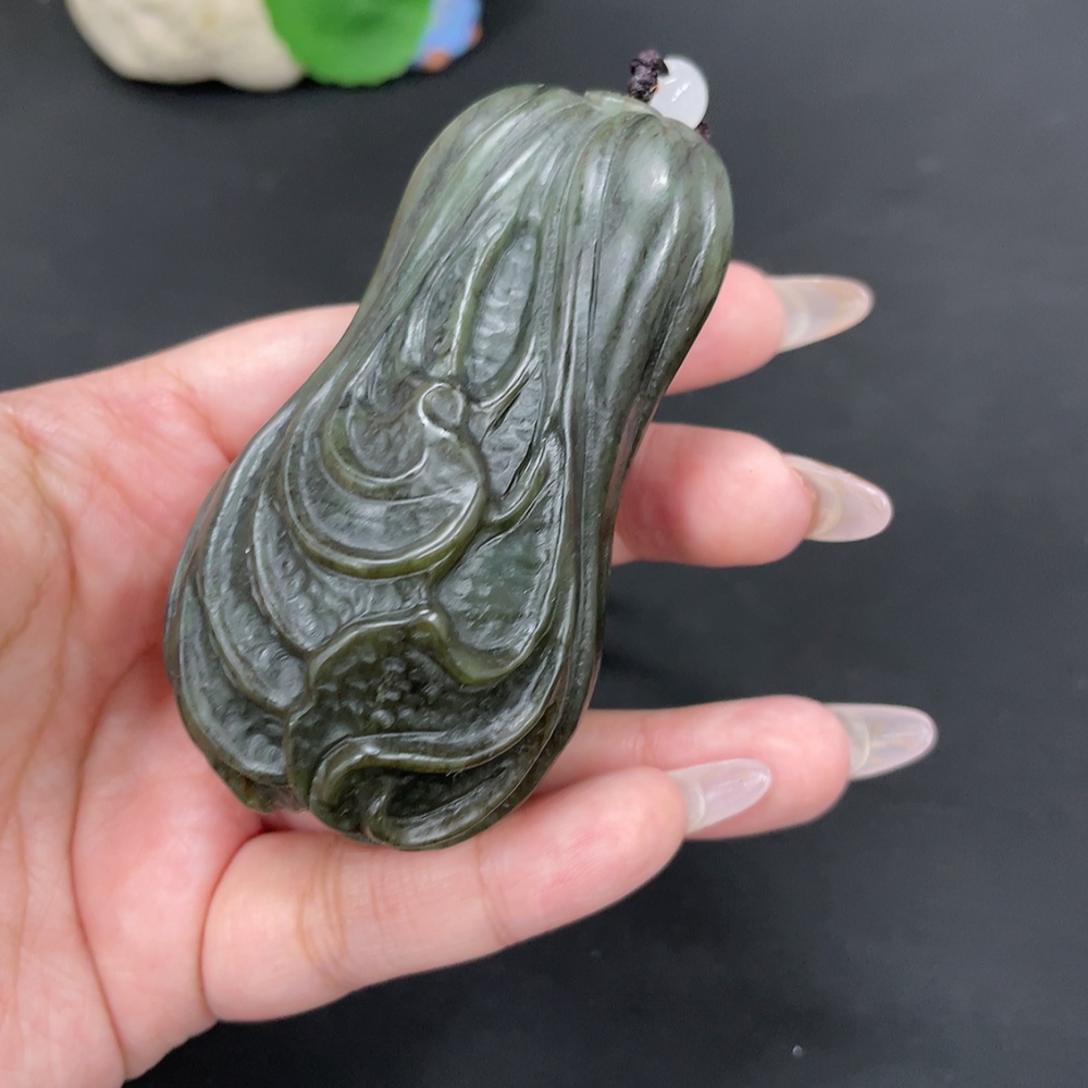 Hetian Jade Handheld Carving Cabbage Total Weight Approx. [with rope] 203.6g Beads Not Hetian Jade