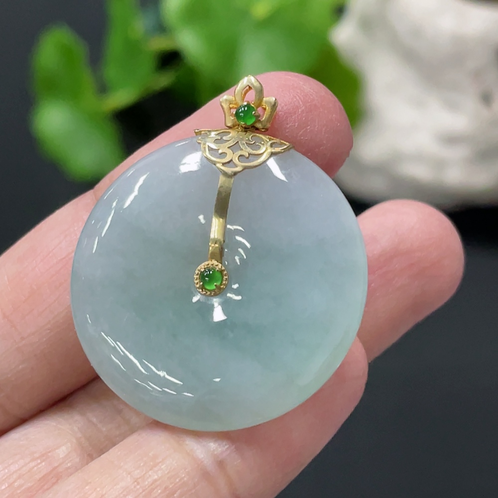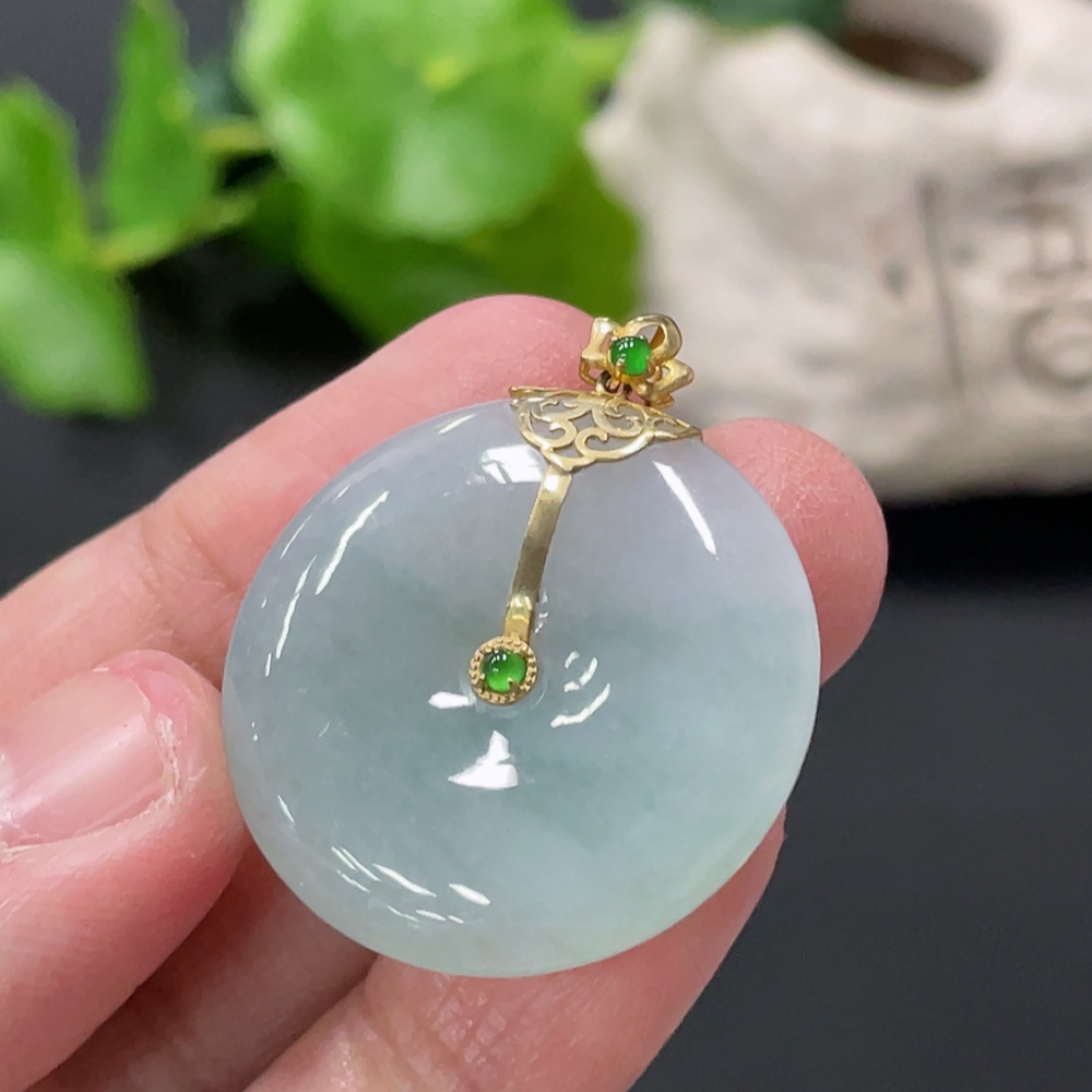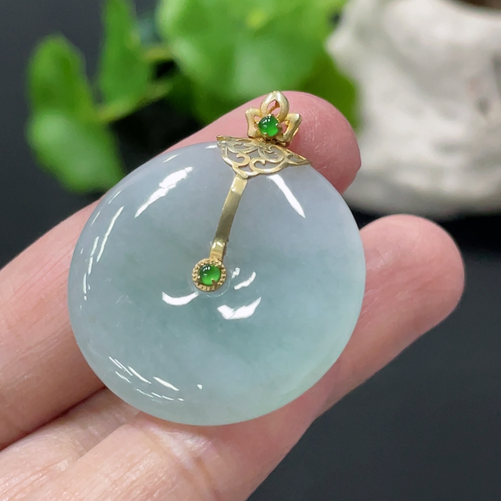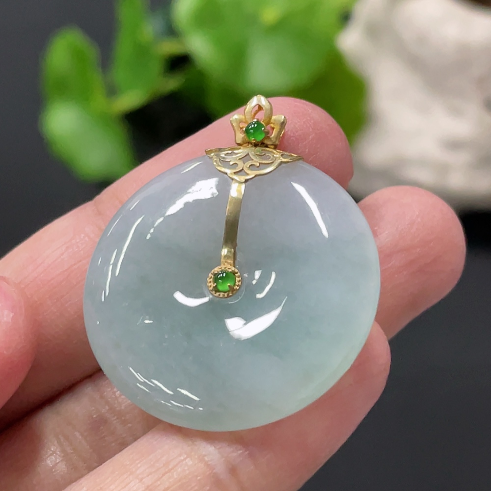 Jadeite Peace Knot Pendant with 18K Gold Clasp, Total Weight Approx. 8.35g