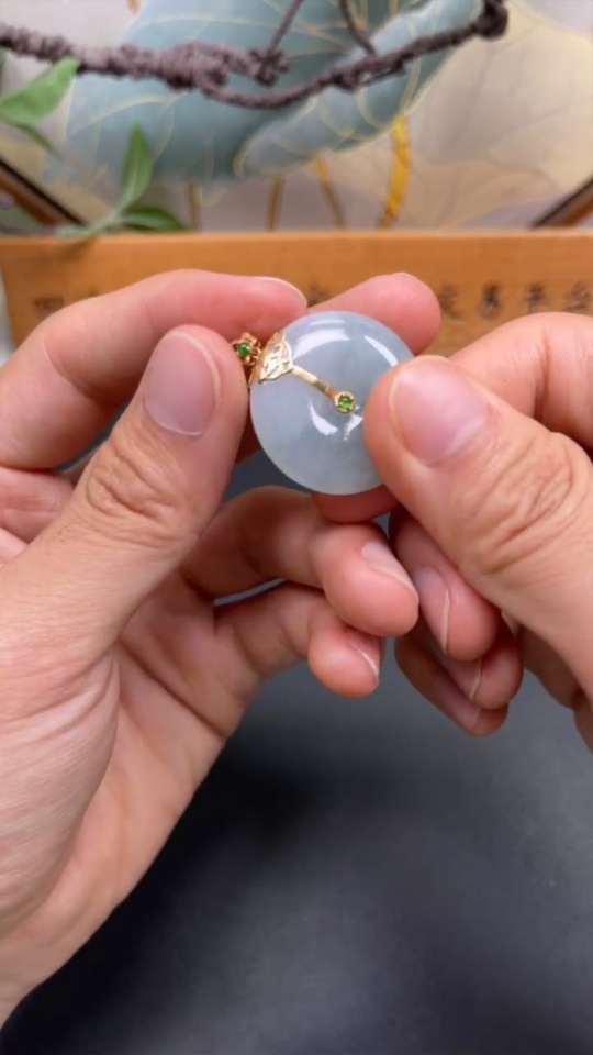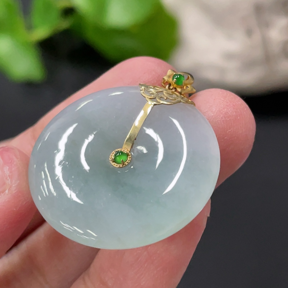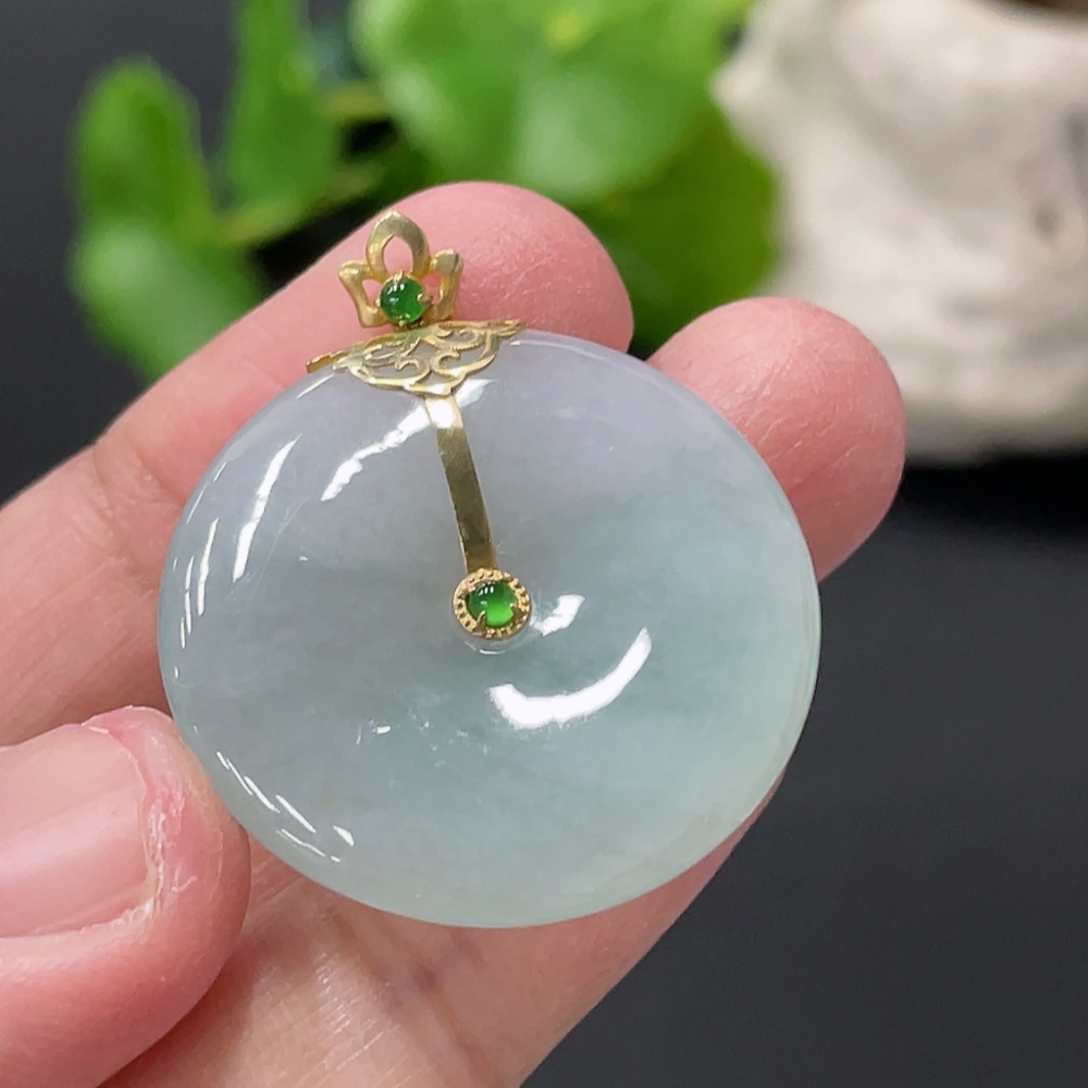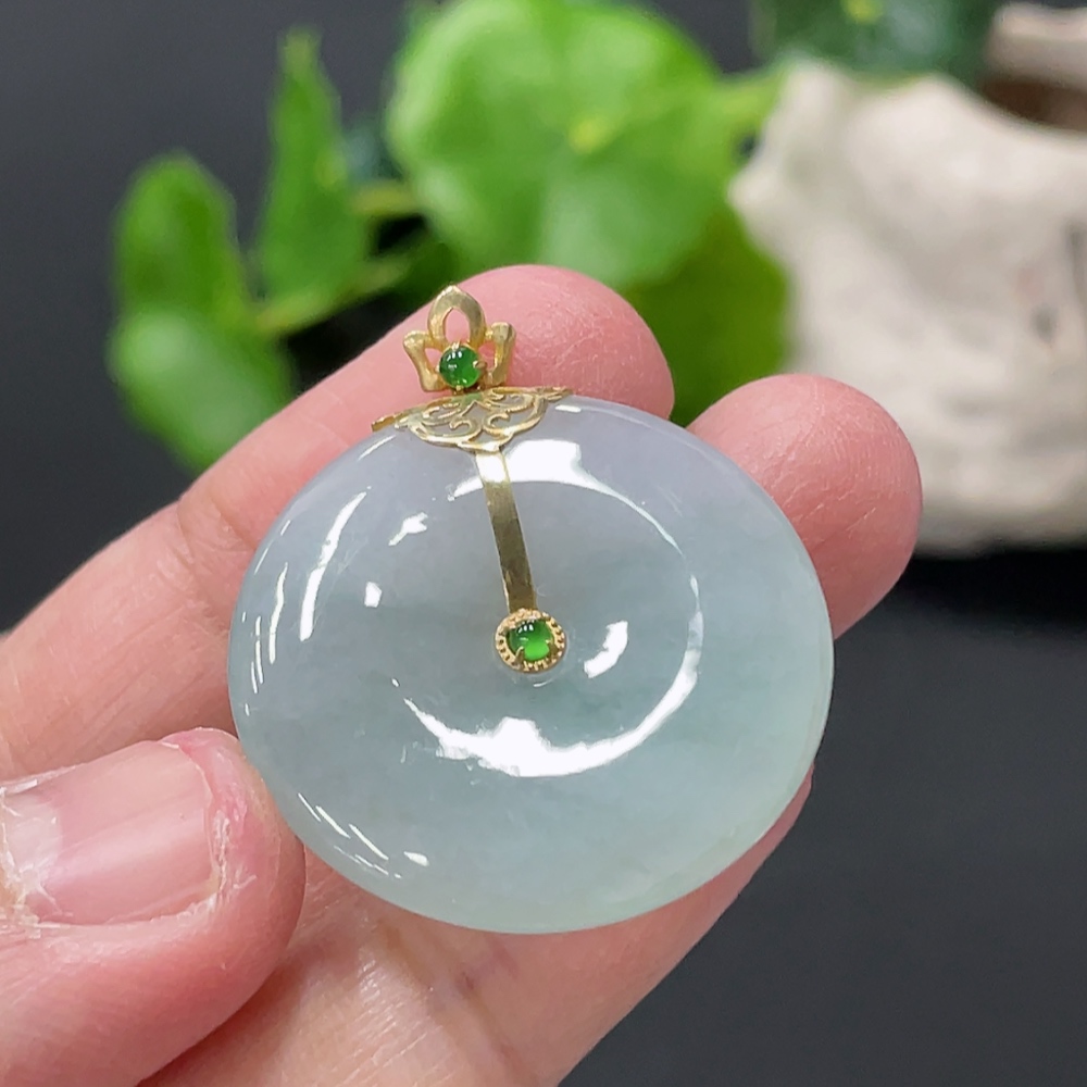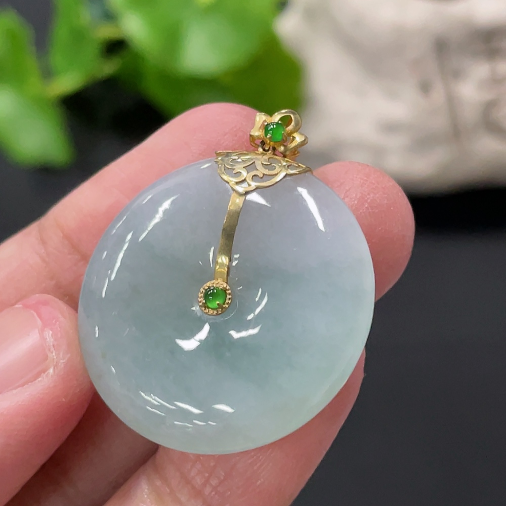 Jadeite Peace Knot Pendant with 18K Gold Clasp, Total Weight Approx. 8.35g