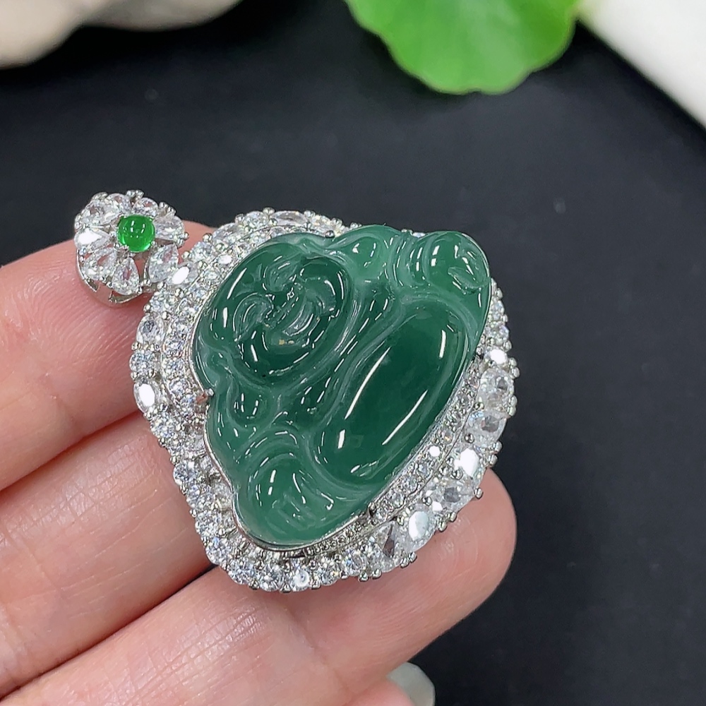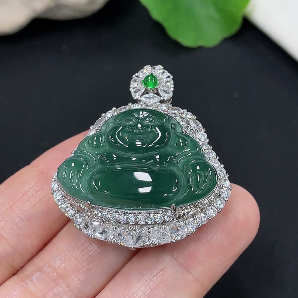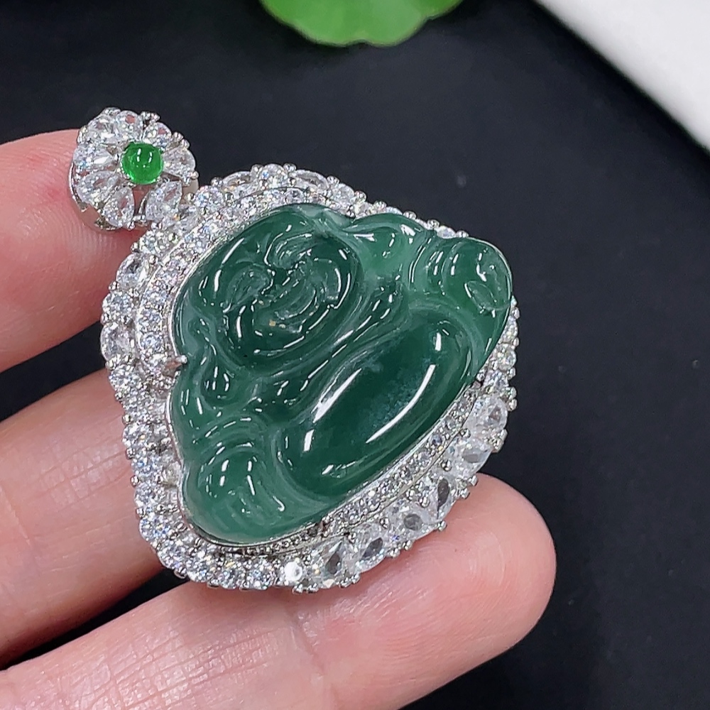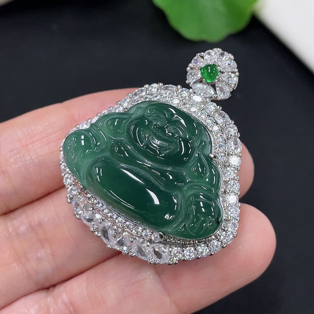 Jadeite Buddha Pendant Total Weight Approx. 15.3g (Matching Beads Non-A) (Non-Gold Inlaid)
