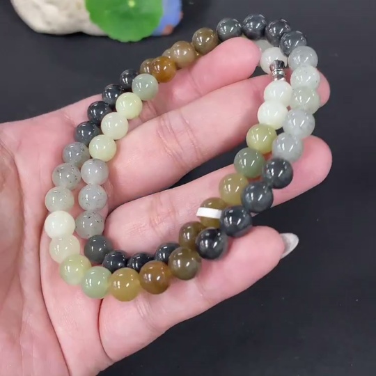 Hetian Jade Bead Necklace, Approx. 7.8mm, Total Weight Approx. 43.9g