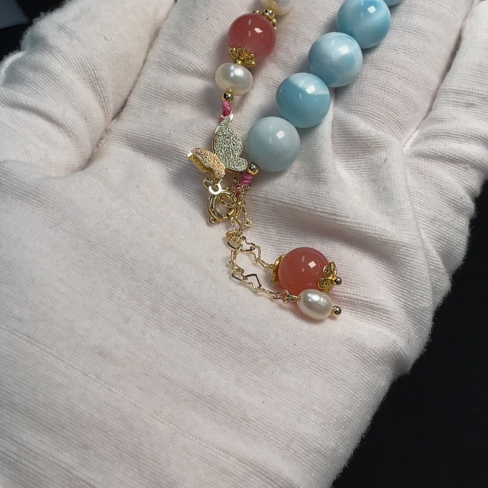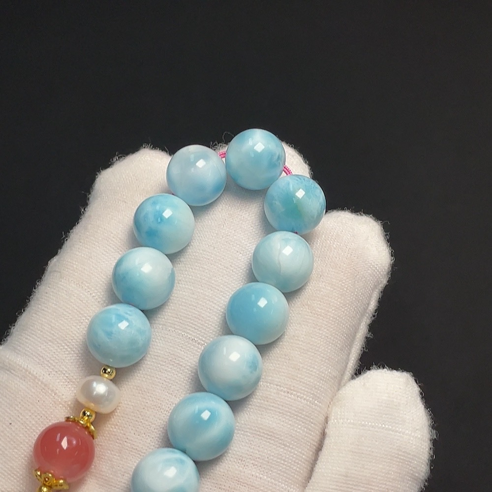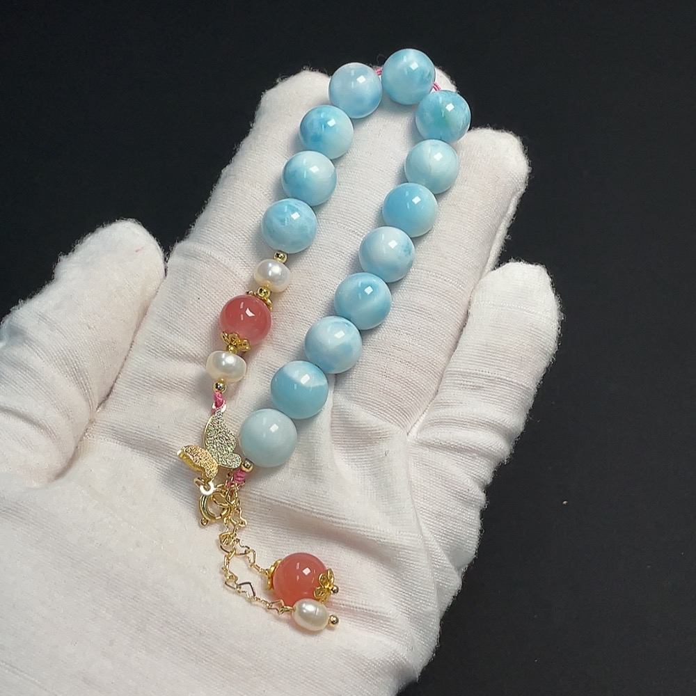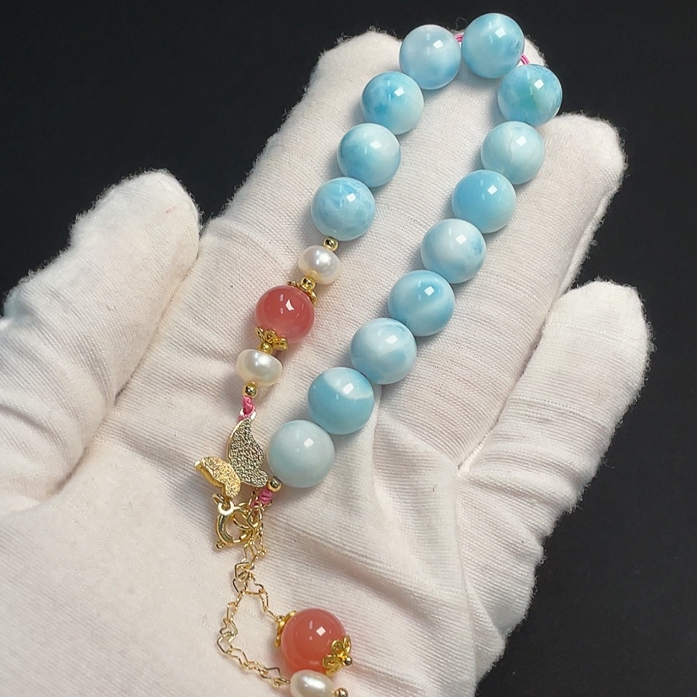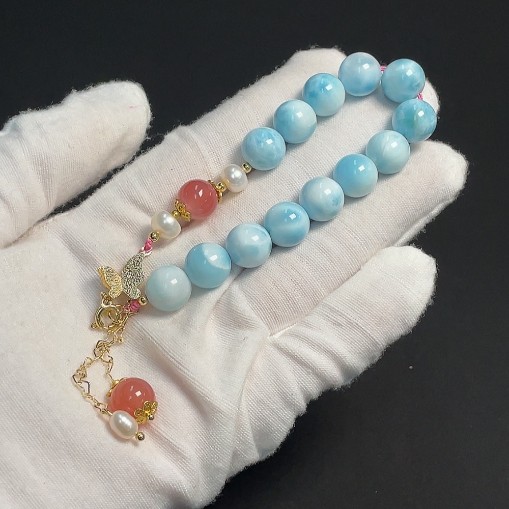 Larimar Bracelet Non-Gold Setting Approx. 10.4mm Total Weight Approx. 27.55g Visible Organic Matter With Salt and Pearl