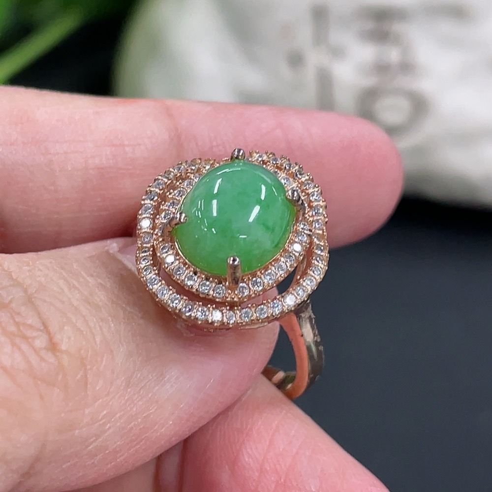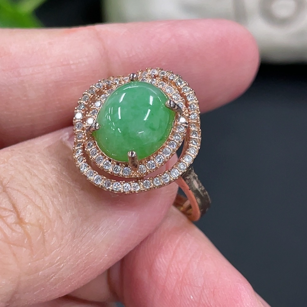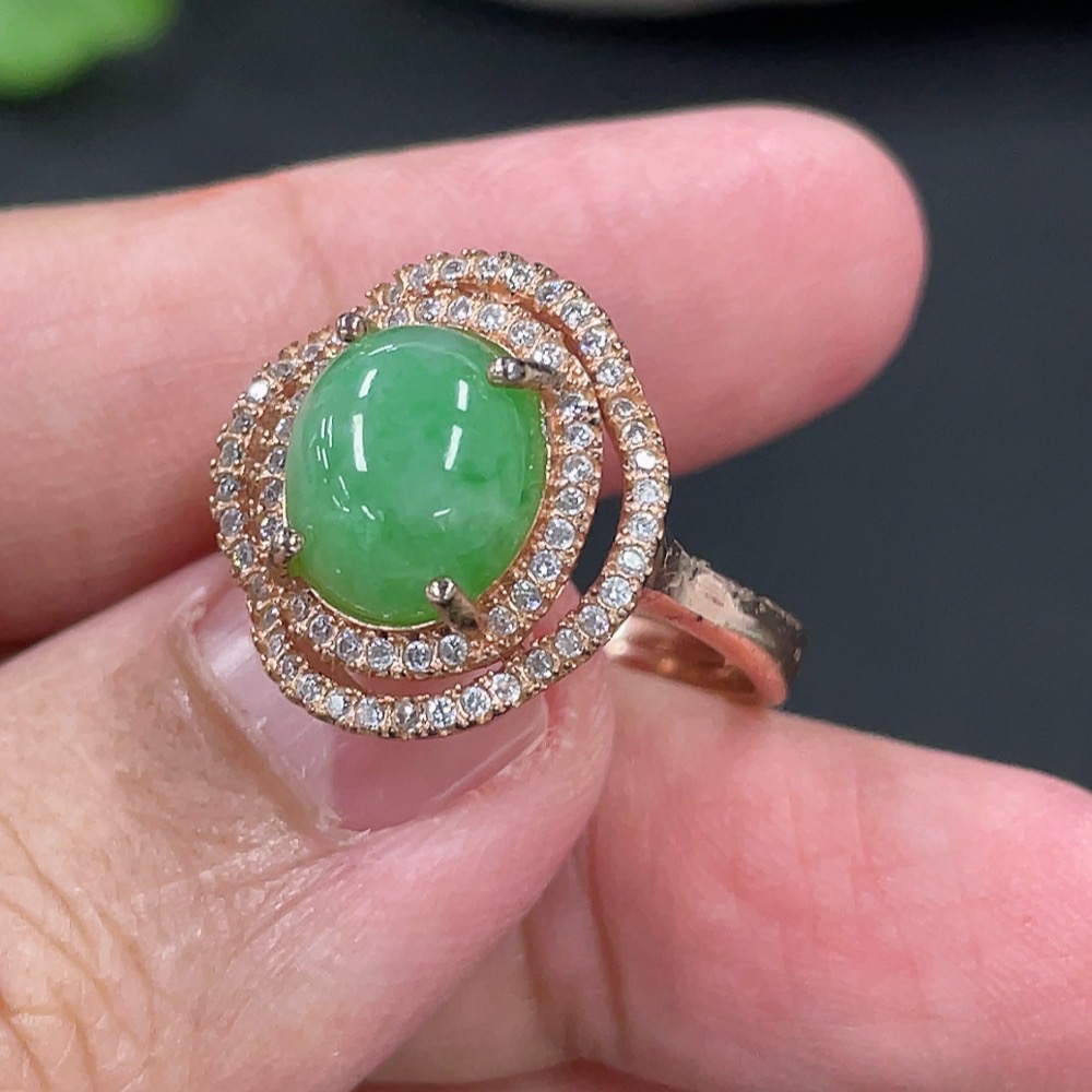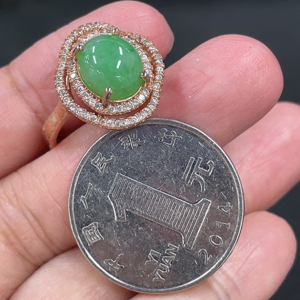 Jadeite Cabochon Inlaid Ring Non-Gold Inlaid Adjustable Size Total Weight Approx. 4.5g
