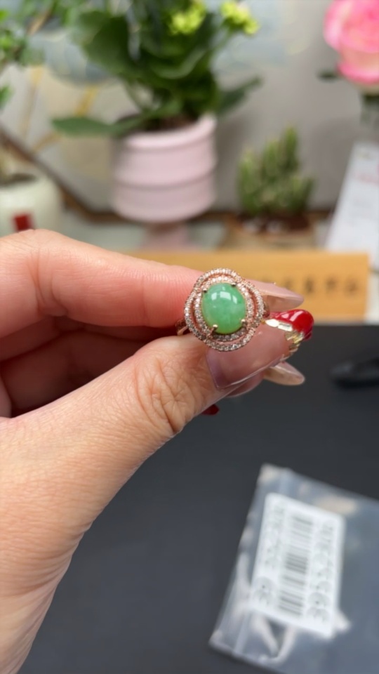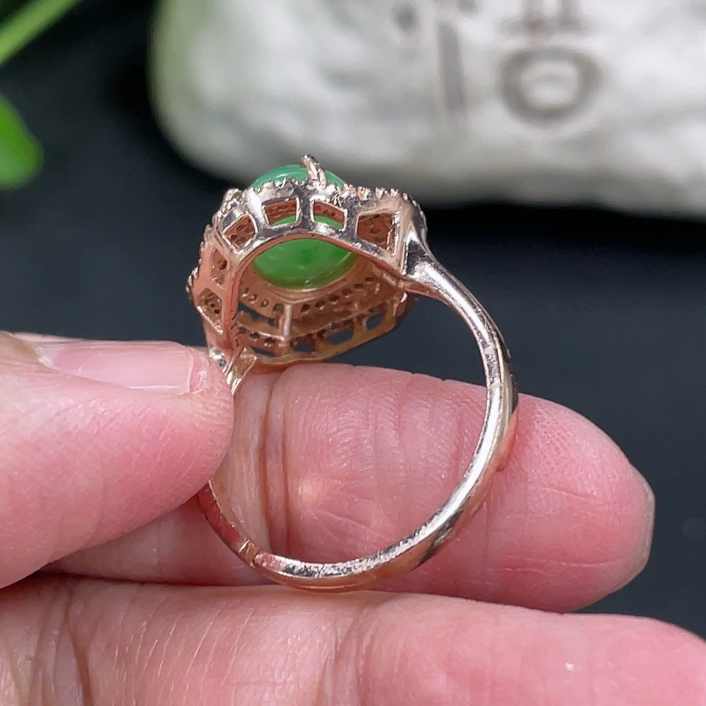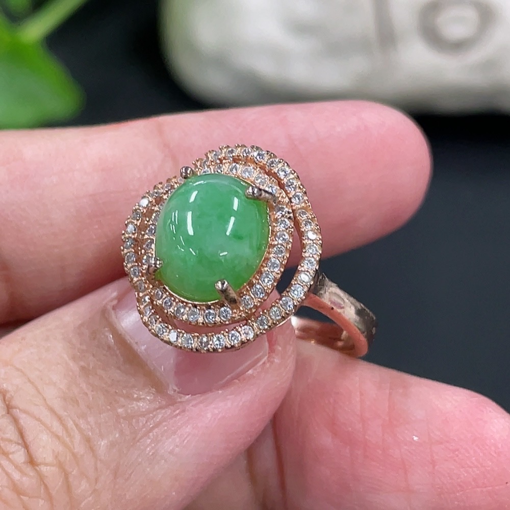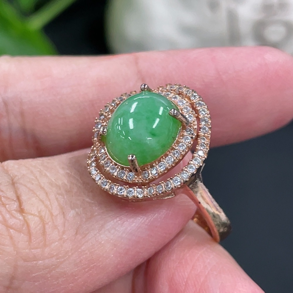 Jadeite Cabochon Inlaid Ring Non-Gold Inlaid Adjustable Size Total Weight Approx. 4.5g